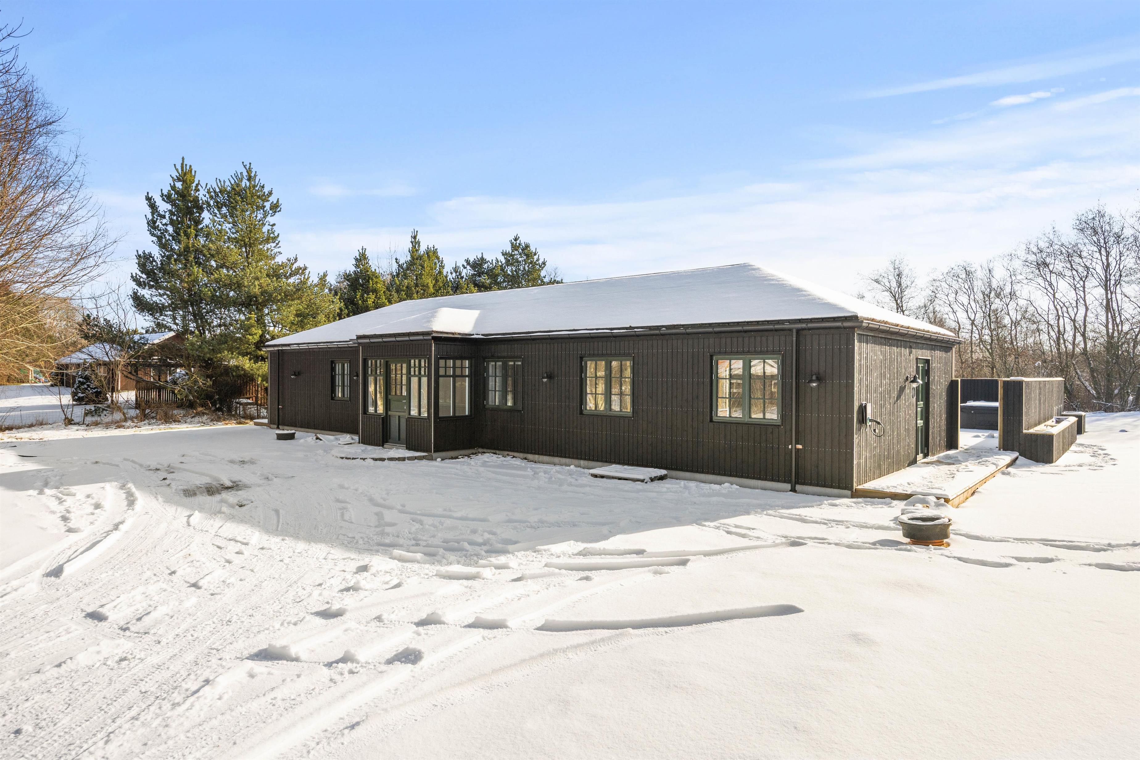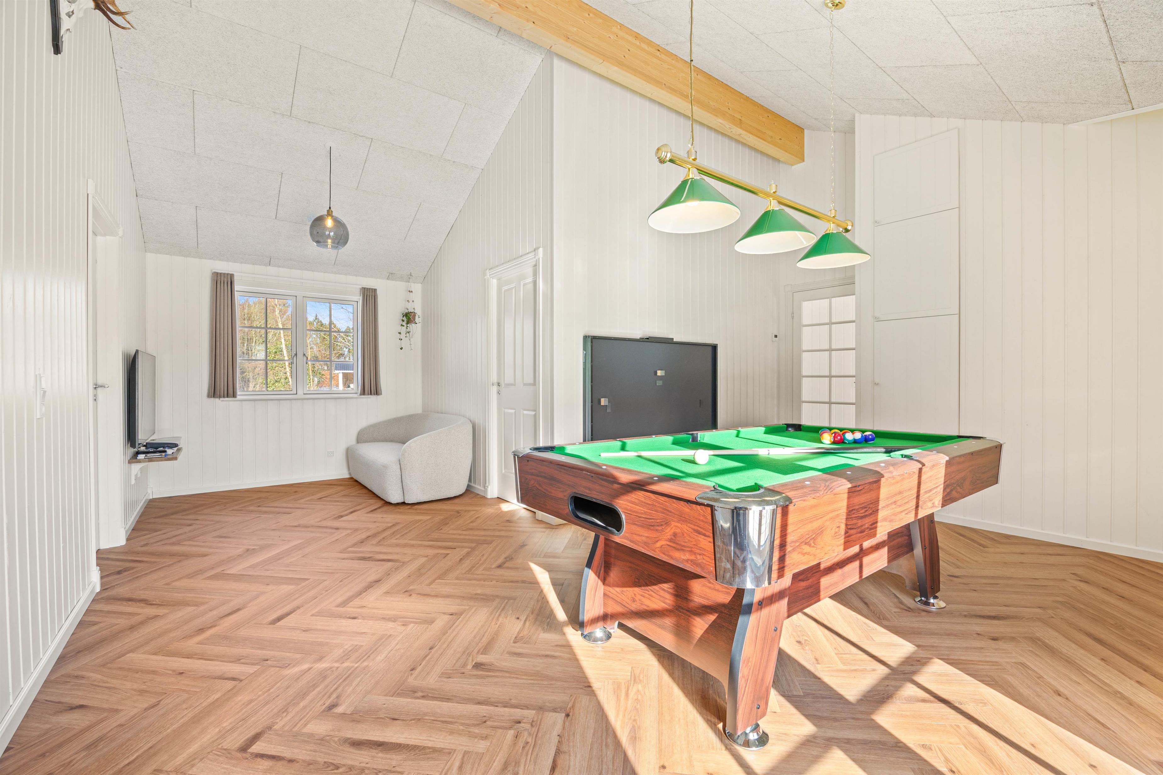 This luxurious activity house at Blomstervangen 9 in Jegum, built in 2026, offers 159 m² of luxury and comfort, perfect for up to 8 people – and 1 four-legged friend. It’s ideal for gathering family and friends for a game of table tennis, pool, or other fun activities, and it’s no wonder it has 5 stars, as the outdoor area delivers pure wellness. Outside, you’ll find a large outdoor spa, accommodating up to 7 people in warm water, followed by the soothing heat of the inviting outdoor sauna. Whether you’re seeking relaxation, play, or adventure, this summer house is the perfect base for an unforgettable holiday.