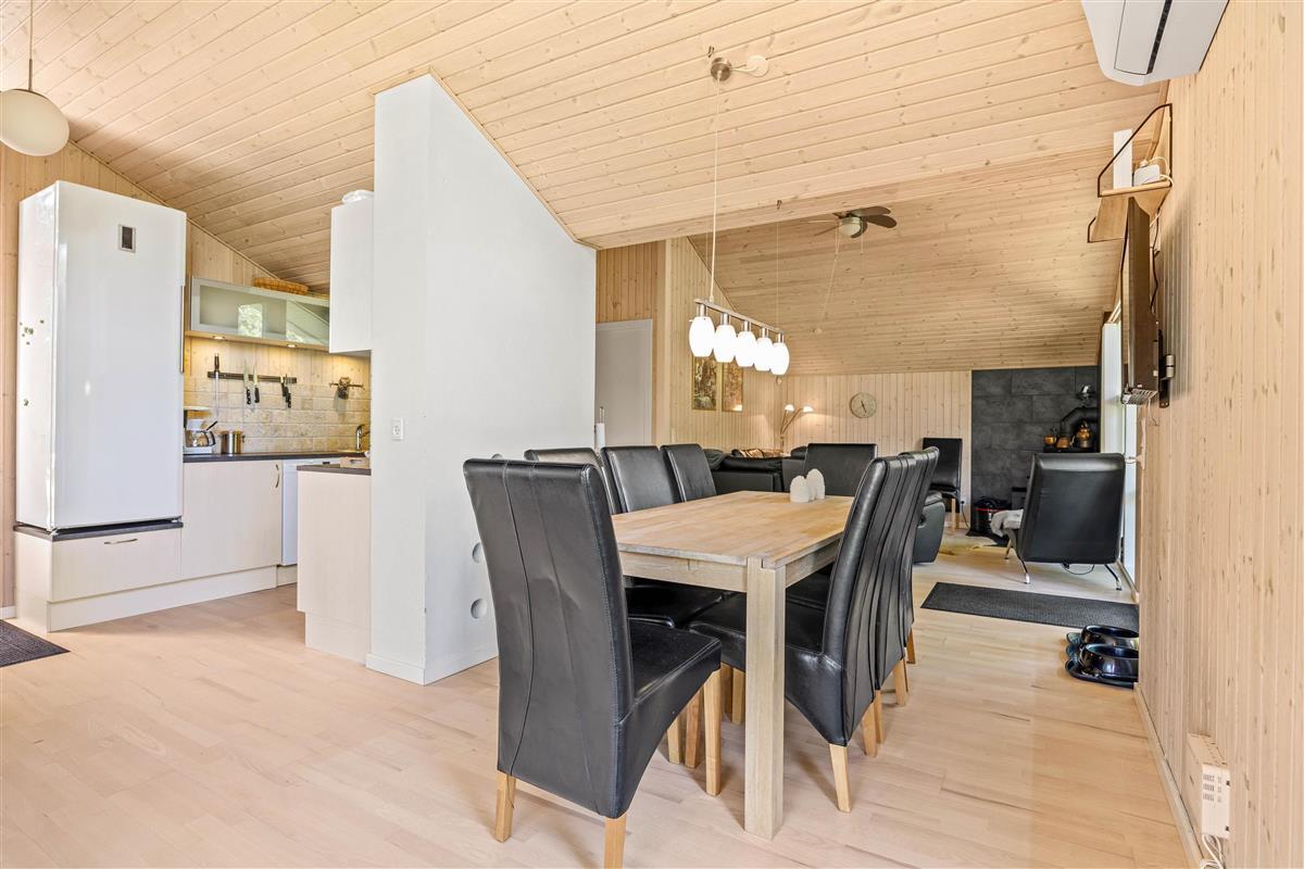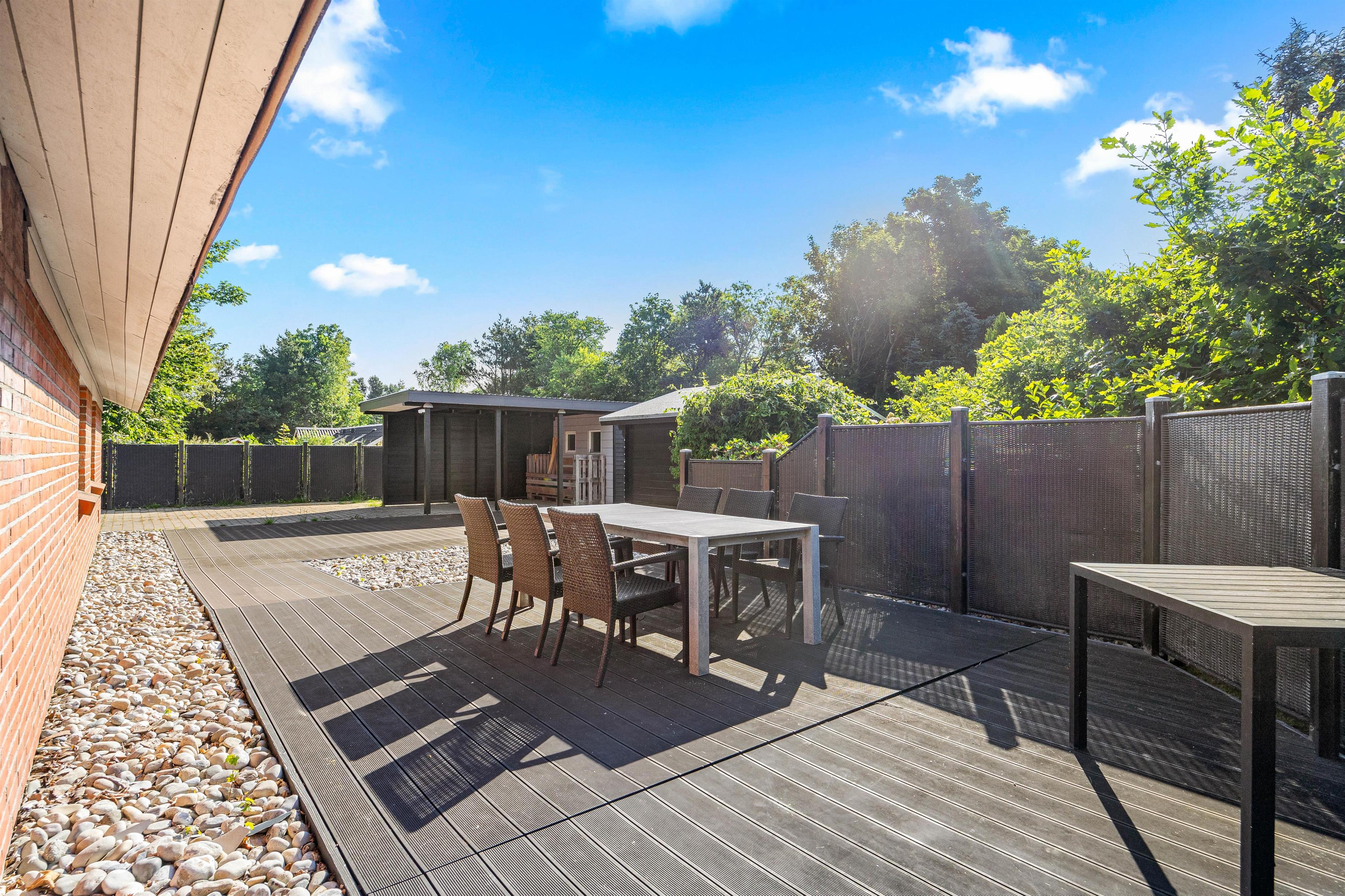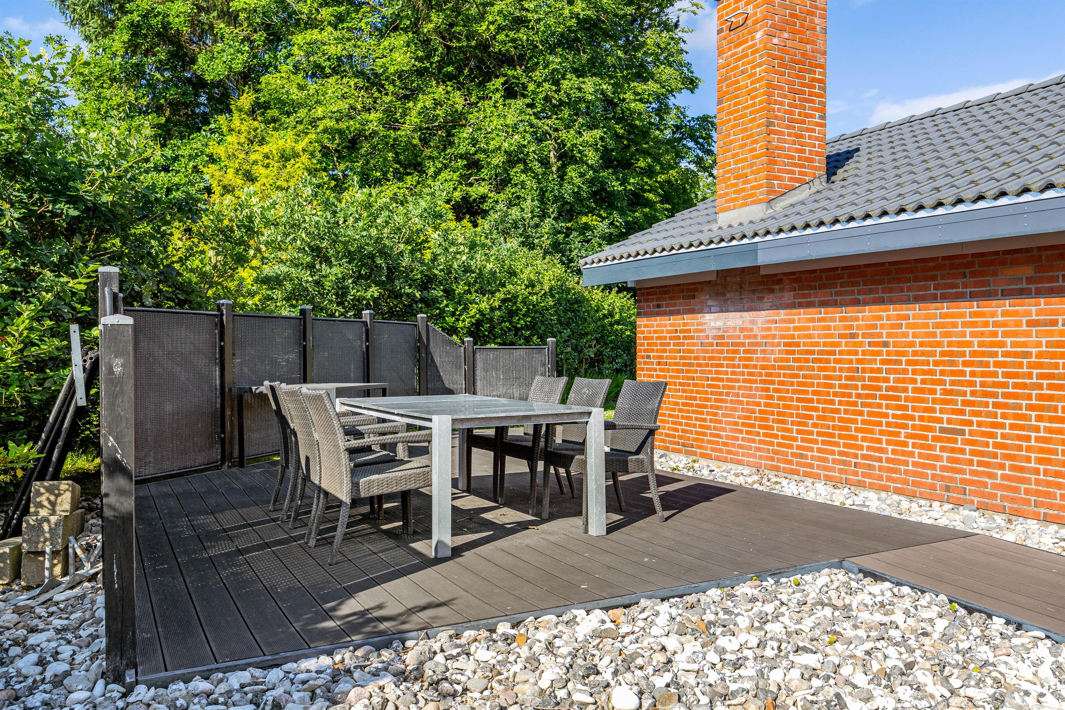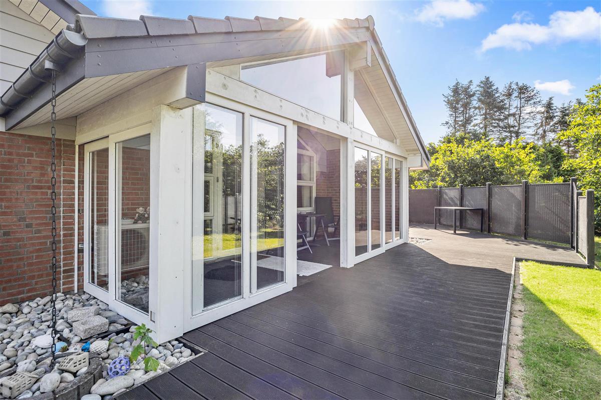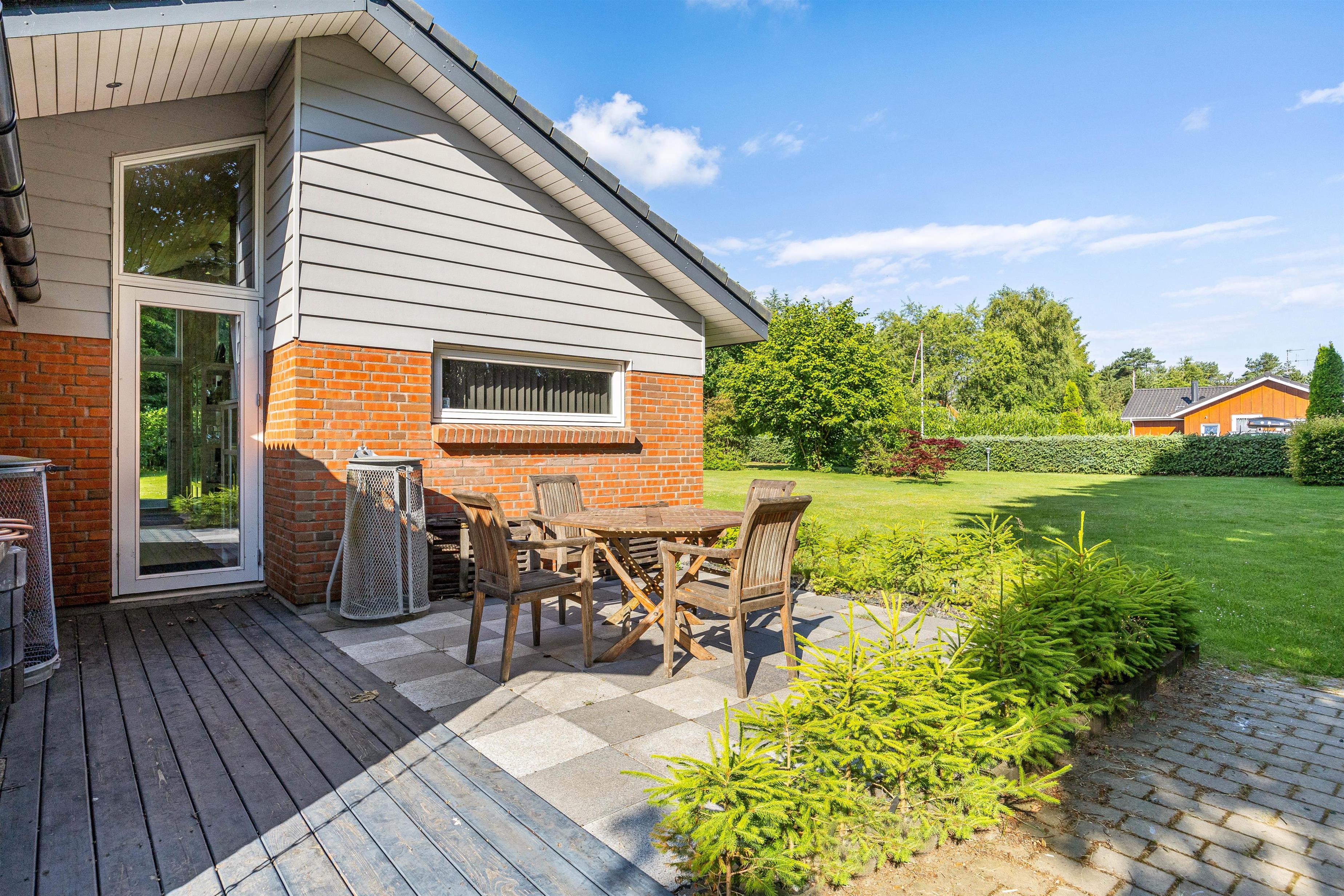 The outdoor area of this holiday home in Jegum Ferieland is perfect for nature lovers and those who enjoy spending time outside. The generous fenced lawn provides plenty of space for various activities. Multiple terraces are available for perfect summer days. The open terrace is excellent for sociable barbecue evenings or relaxing outdoors, while the screened terrace offers additional shelter and privacy.