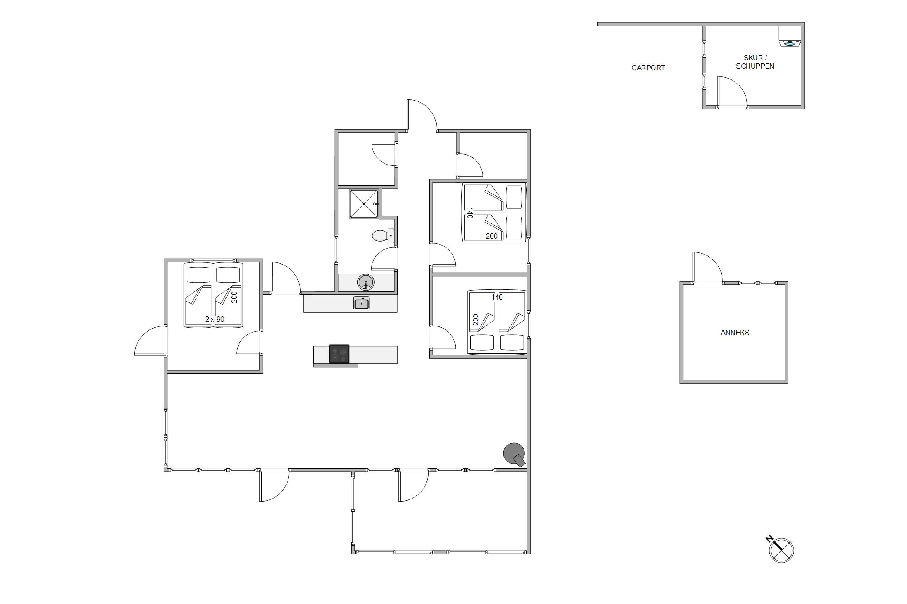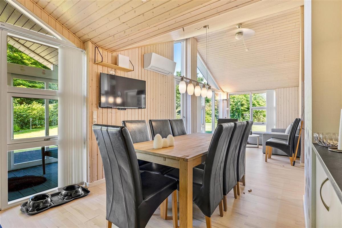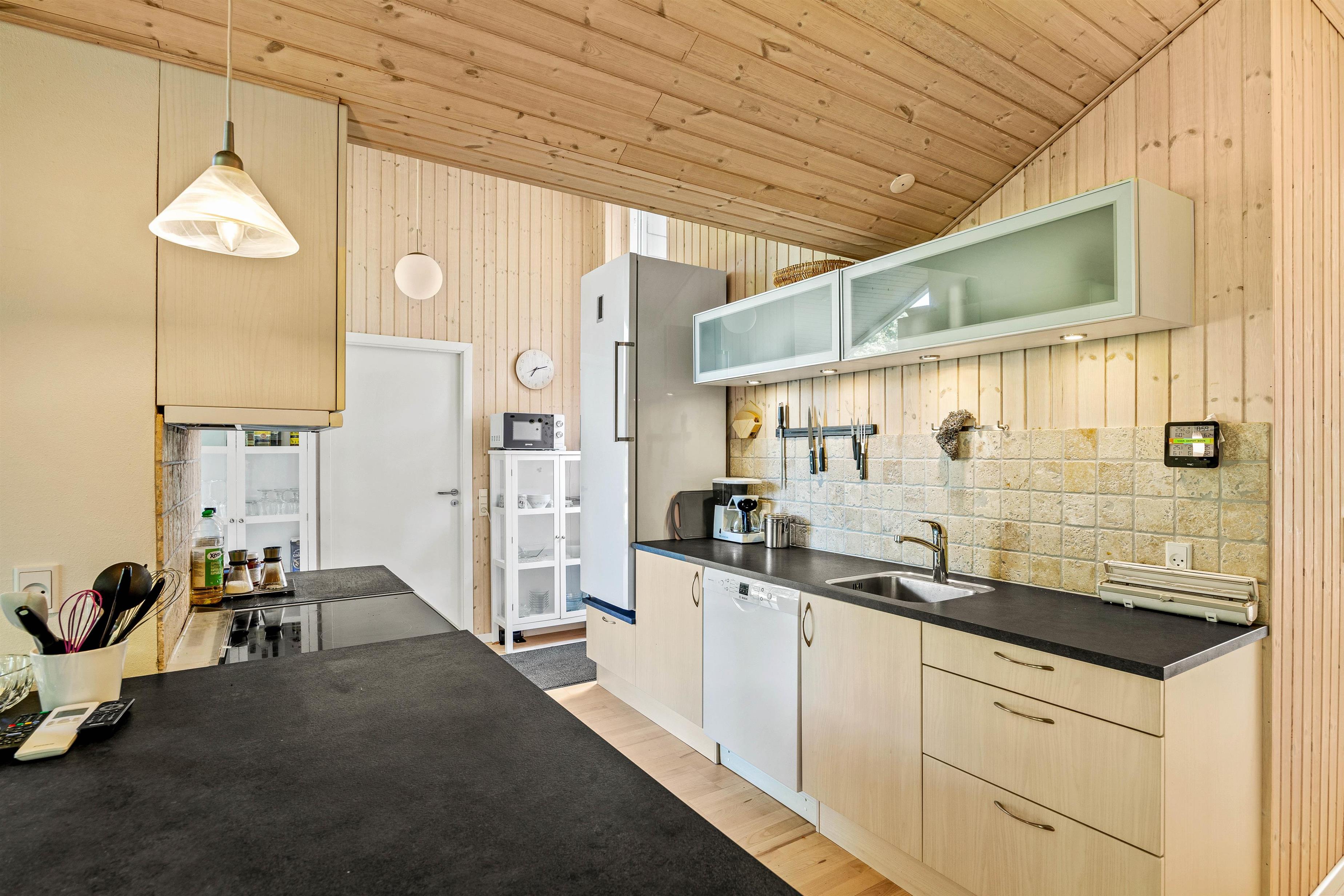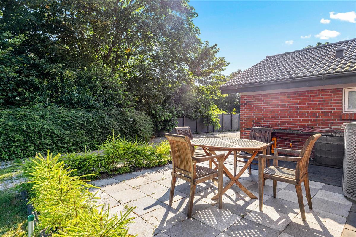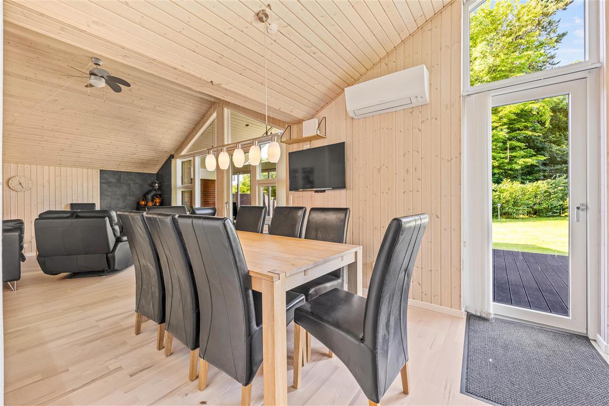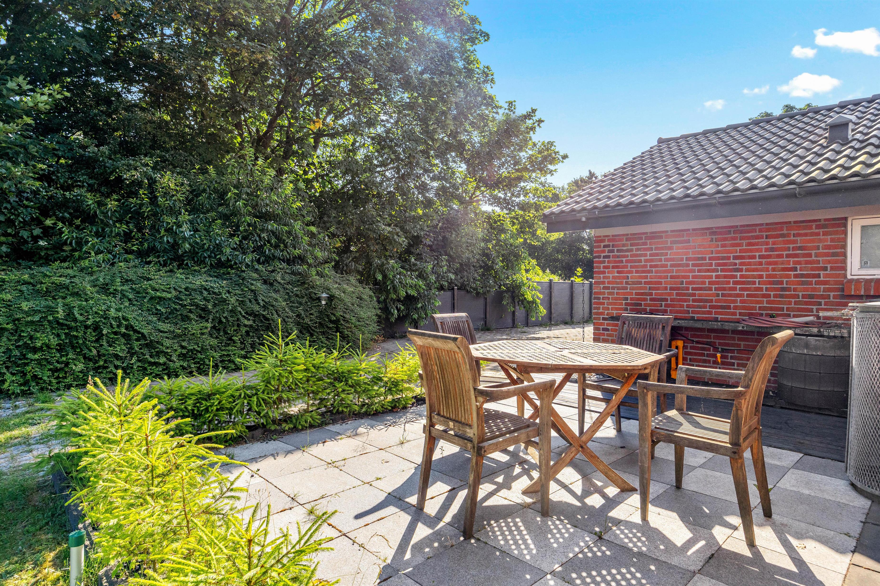 The outdoor area of this holiday home in Jegum Ferieland is perfect for nature lovers and those who enjoy spending time outside. The generous fenced lawn provides plenty of space for various activities. Multiple terraces are available for perfect summer days. The open terrace is excellent for sociable barbecue evenings or relaxing outdoors, while the screened terrace offers additional shelter and privacy.