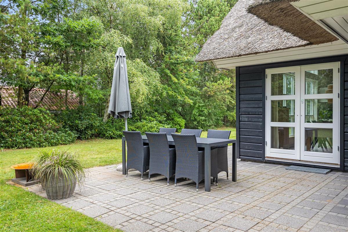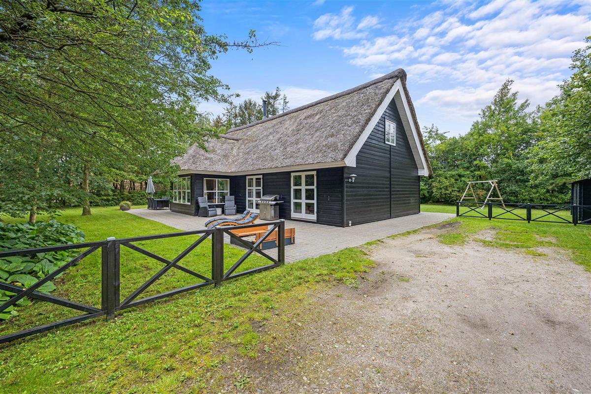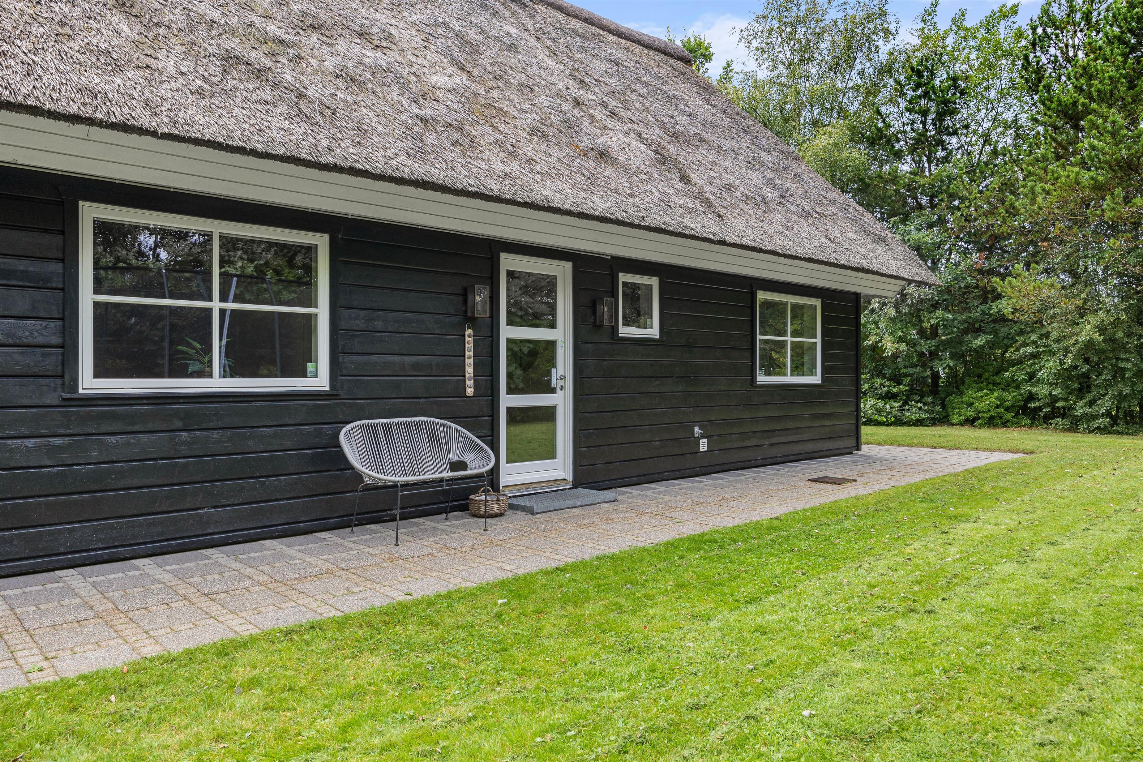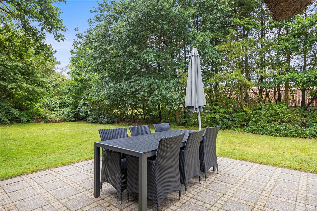 Surrounded by a large lawn, the outdoor area of the holiday home at Nordskrænten 19 offers plenty of space for various outdoor activities and relaxed hours in the open air. The holiday home features two terraces – one open and one sheltered. The open terrace is ideal for sunbathing, outdoor breakfasts or sociable barbecue evenings with family or friends. The sheltered terrace provides protection from wind and weather, allowing you to sit outside even on cooler evenings.