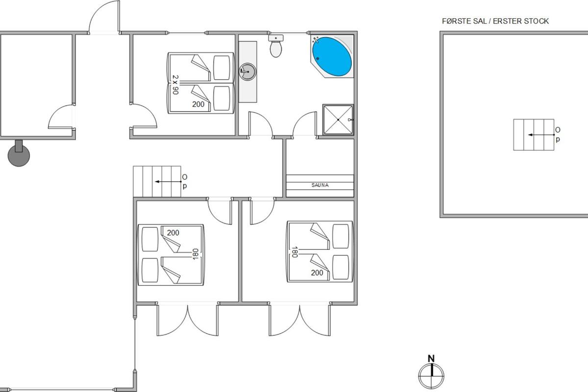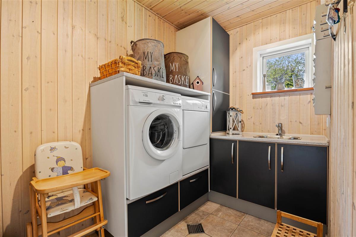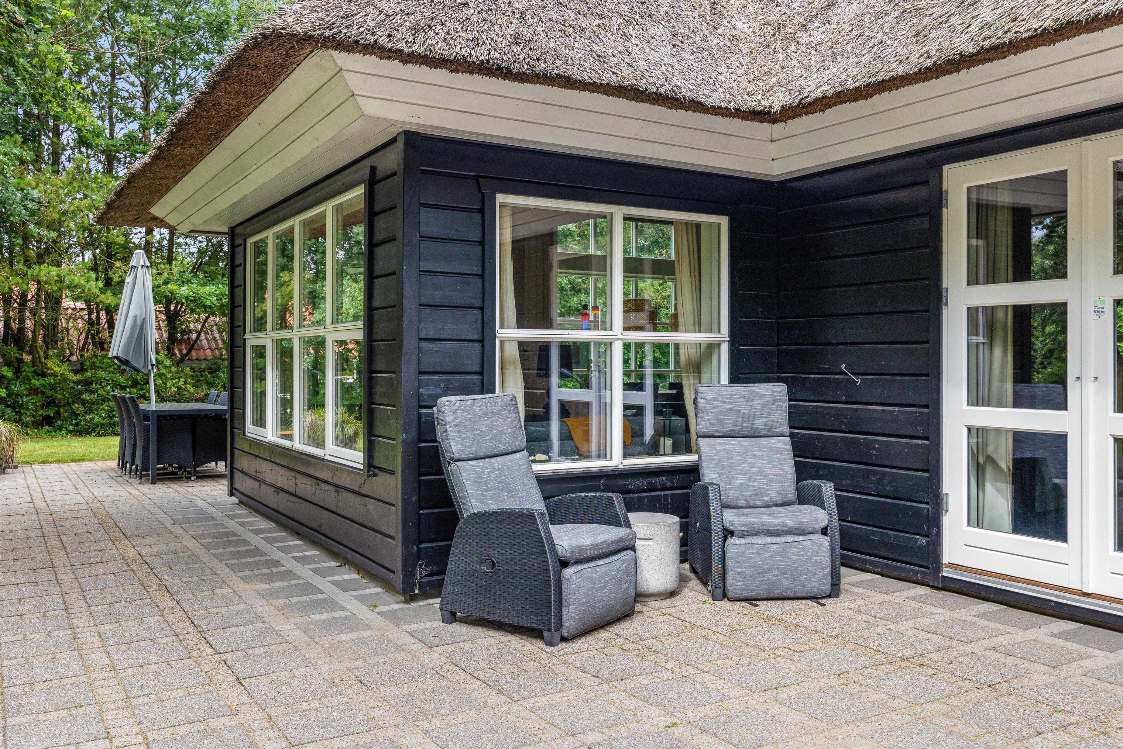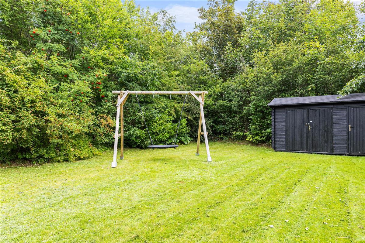 Surrounded by a large lawn, the outdoor area of the holiday home at Nordskrænten 19 offers plenty of space for various outdoor activities and relaxed hours in the open air. The holiday home features two terraces – one open and one sheltered. The open terrace is ideal for sunbathing, outdoor breakfasts or sociable barbecue evenings with family or friends. The sheltered terrace provides protection from wind and weather, allowing you to sit outside even on cooler evenings.
