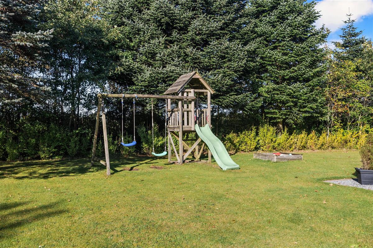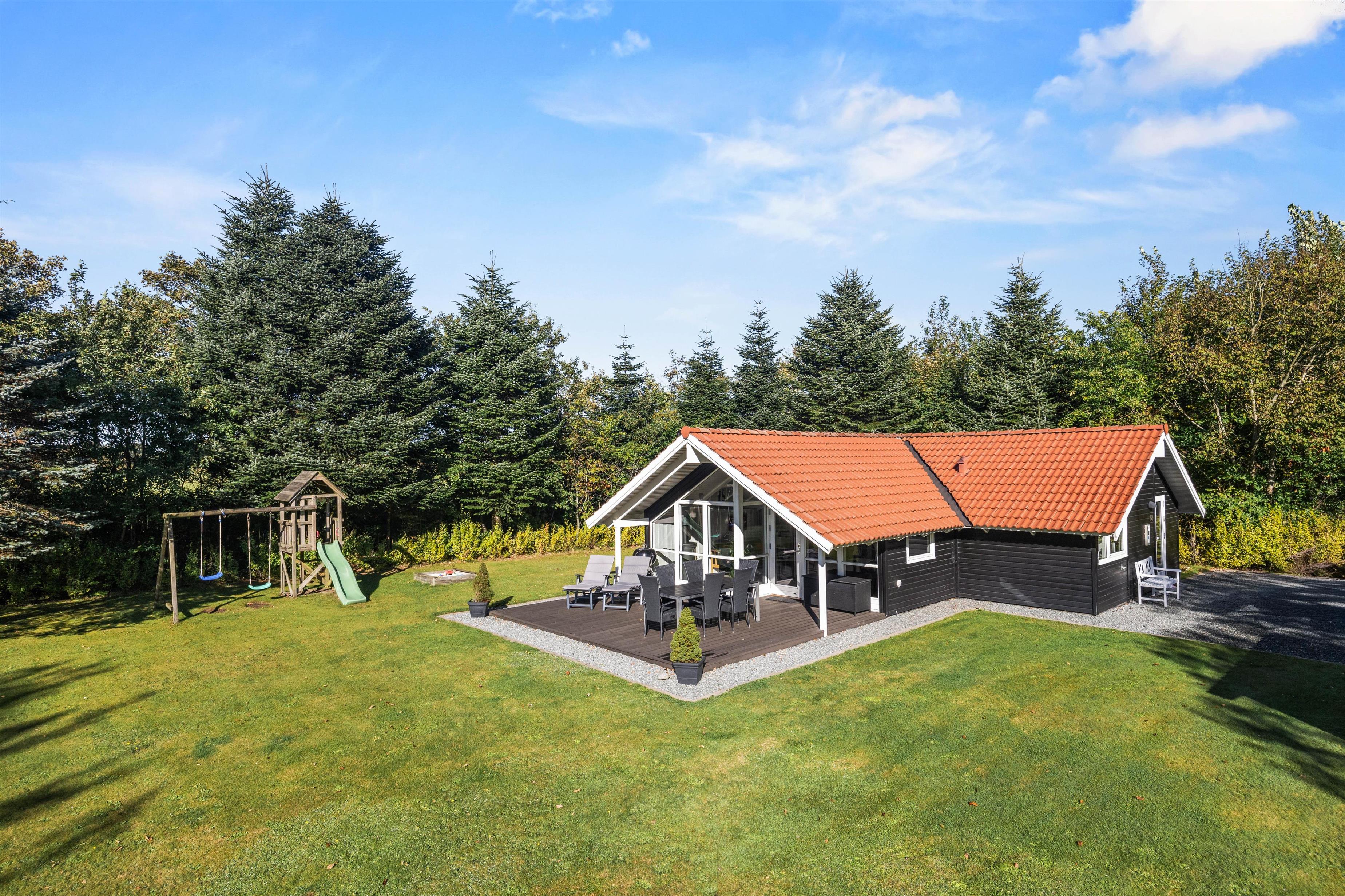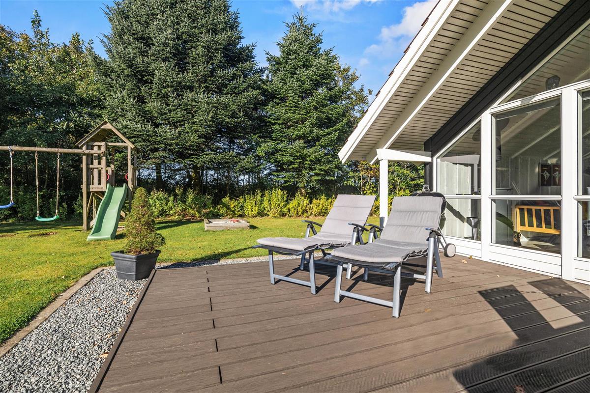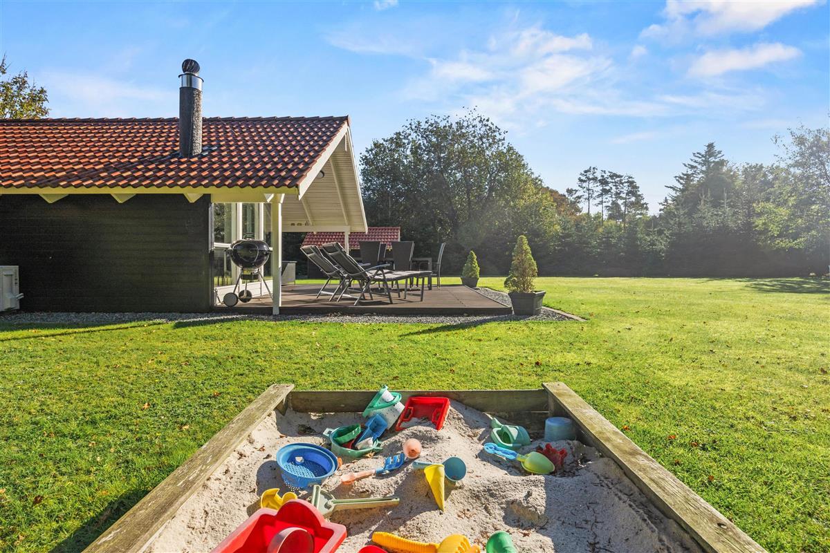 The outdoor area at Nordskrænten 68 offers an excellent mix of relaxation spaces and areas for open-air activities. A spacious open terrace invites you to spend relaxing hours in the sun or enjoy cosy evenings having a barbecue. The covered terrace provides additional shelter and comfort, allowing you to enjoy fresh air even in changeable weather. Younger guests will enjoy the swing and sandpit, promising hours of fun. The lawned grounds provide ample space for playing and are ideal for various outdoor activities.