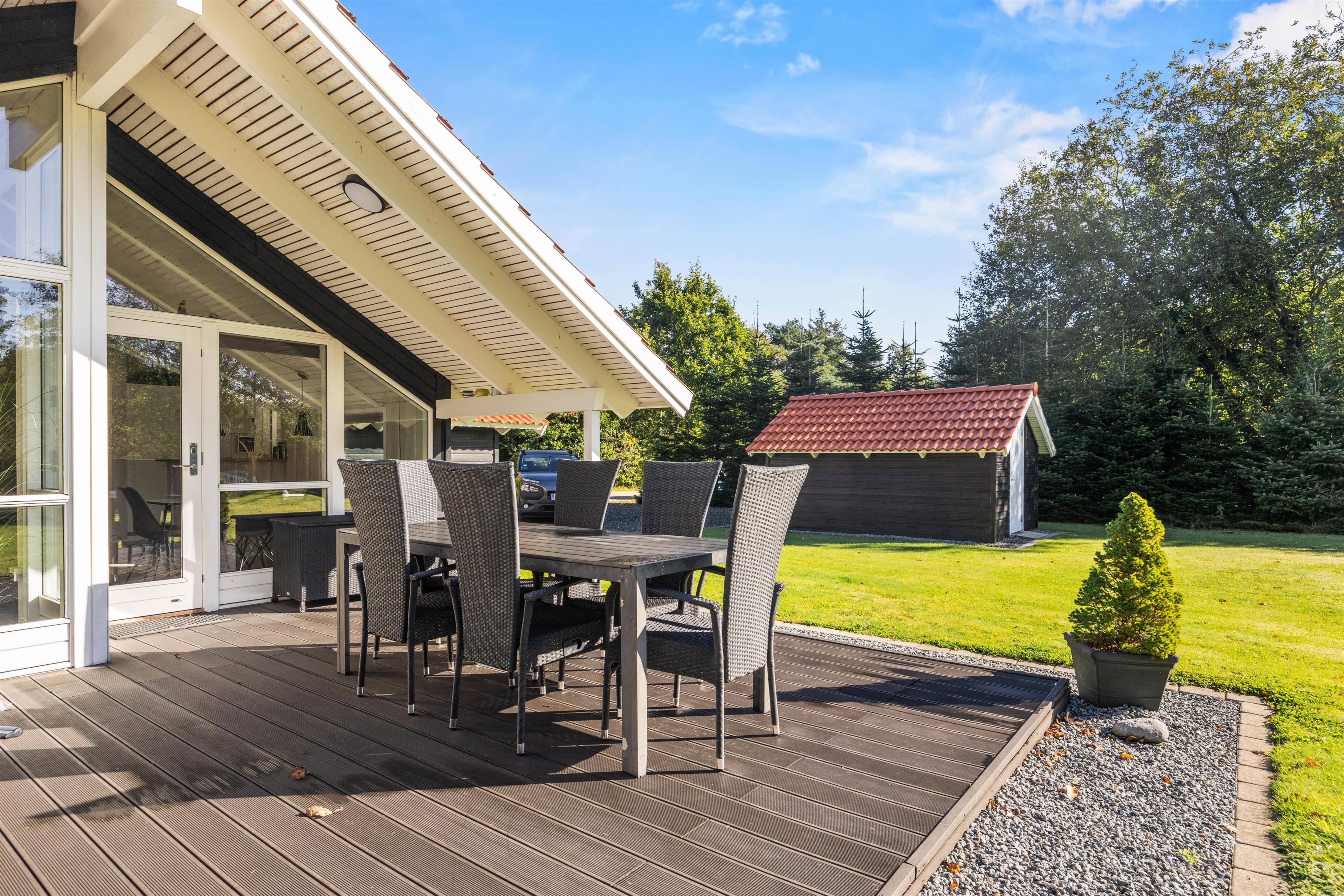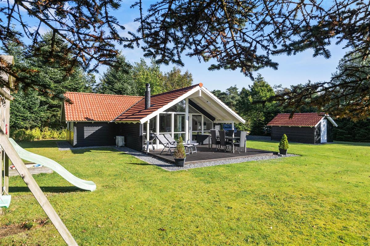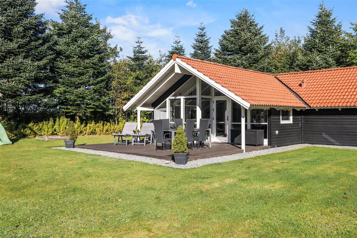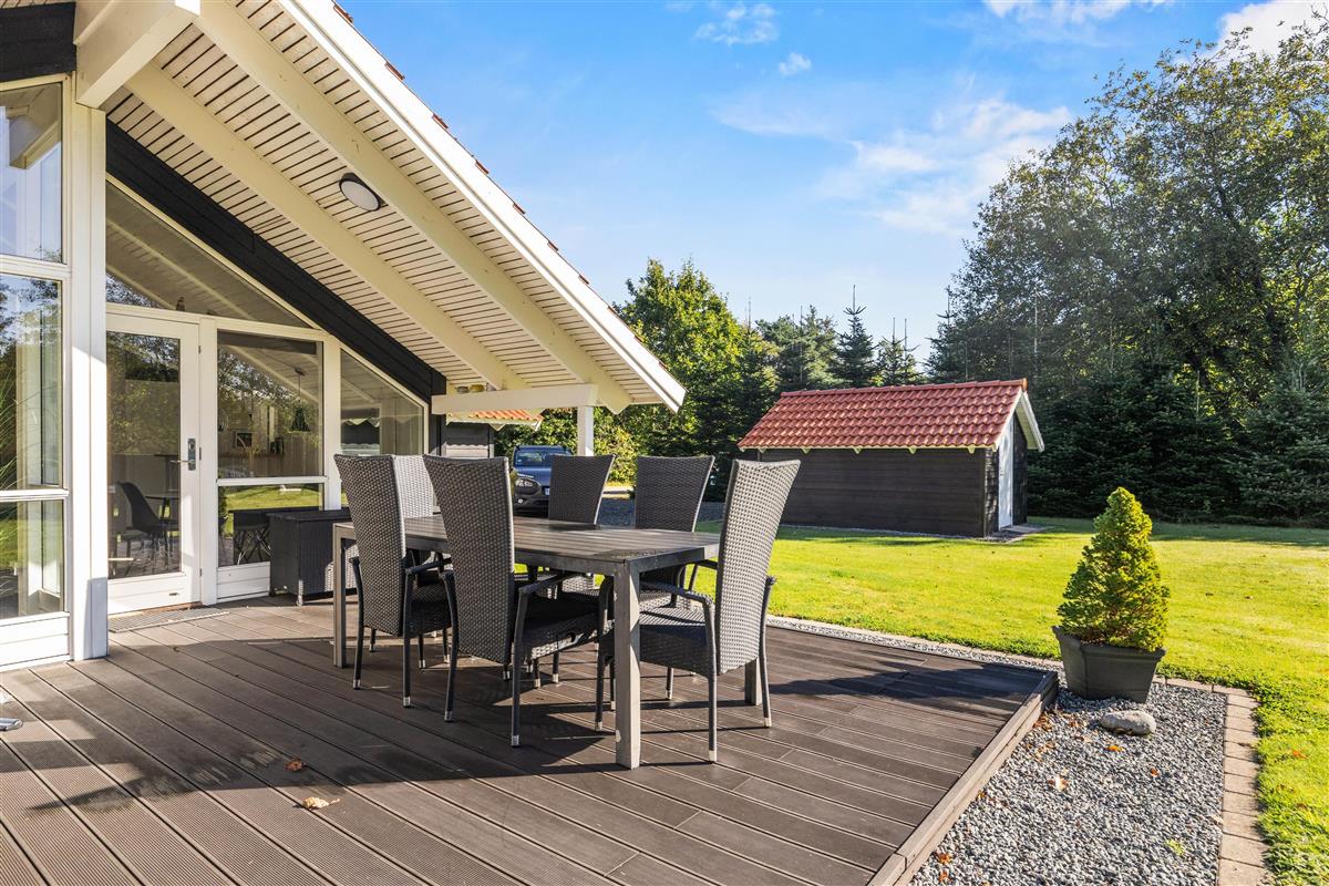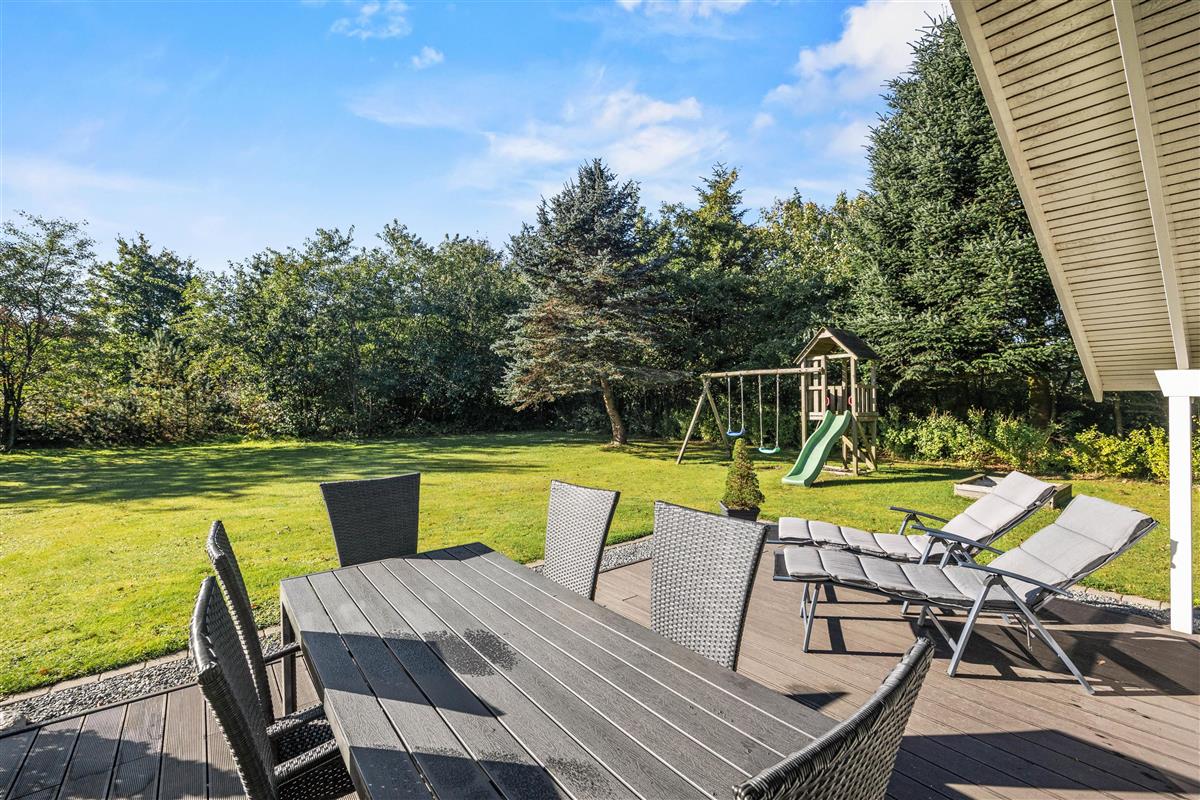 The outdoor area at Nordskrænten 68 offers an excellent mix of relaxation spaces and areas for open-air activities. A spacious open terrace invites you to spend relaxing hours in the sun or enjoy cosy evenings having a barbecue. The covered terrace provides additional shelter and comfort, allowing you to enjoy fresh air even in changeable weather. Younger guests will enjoy the swing and sandpit, promising hours of fun. The lawned grounds provide ample space for playing and are ideal for various outdoor activities.