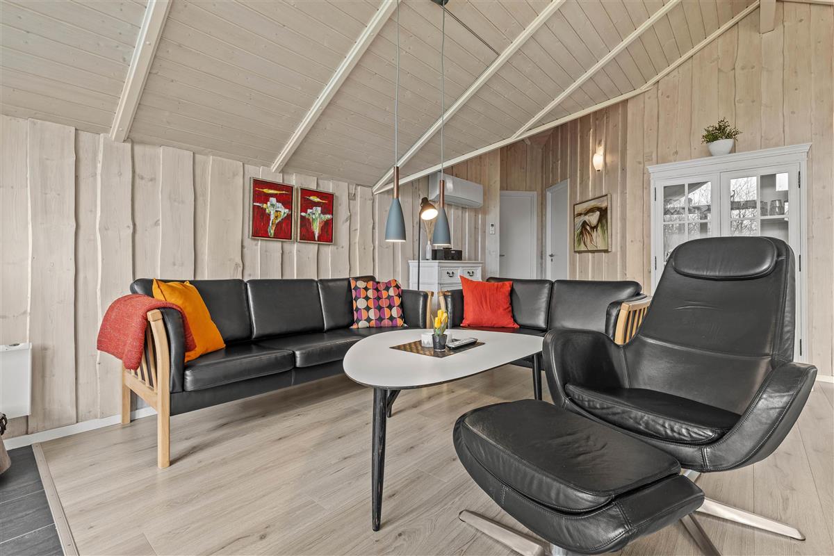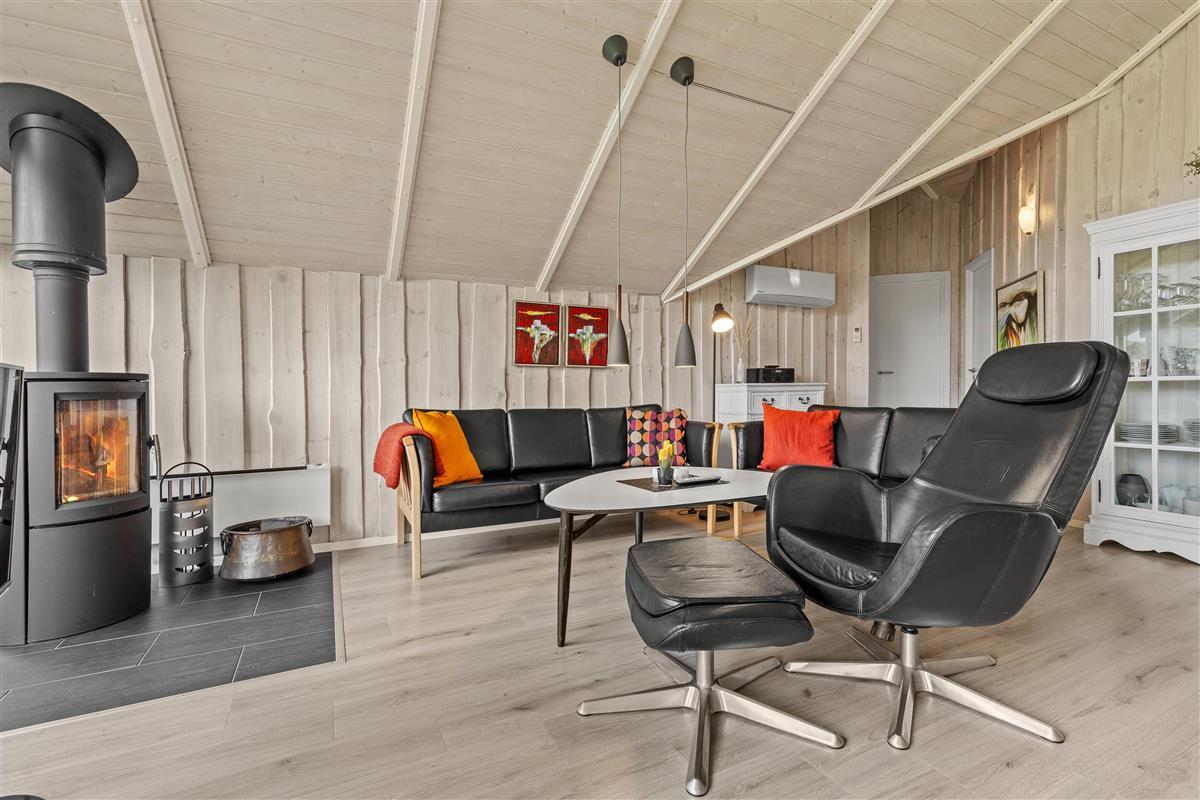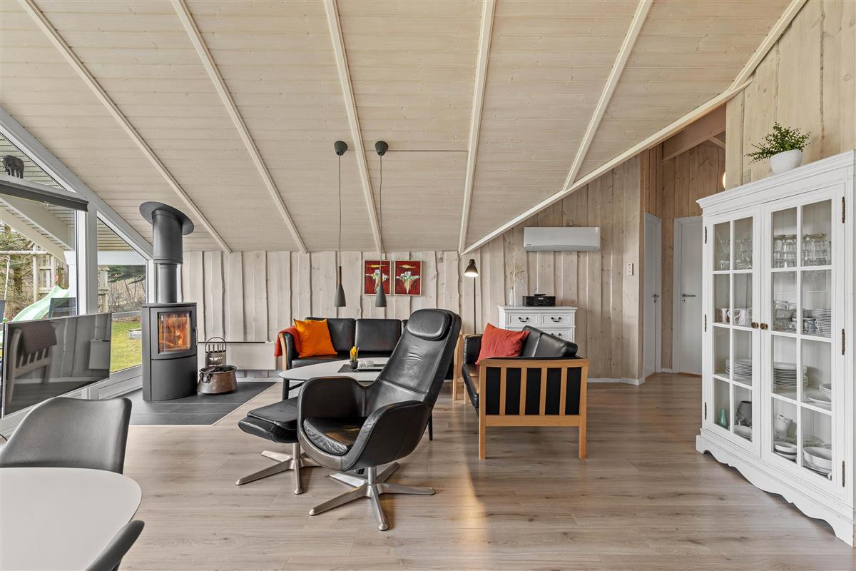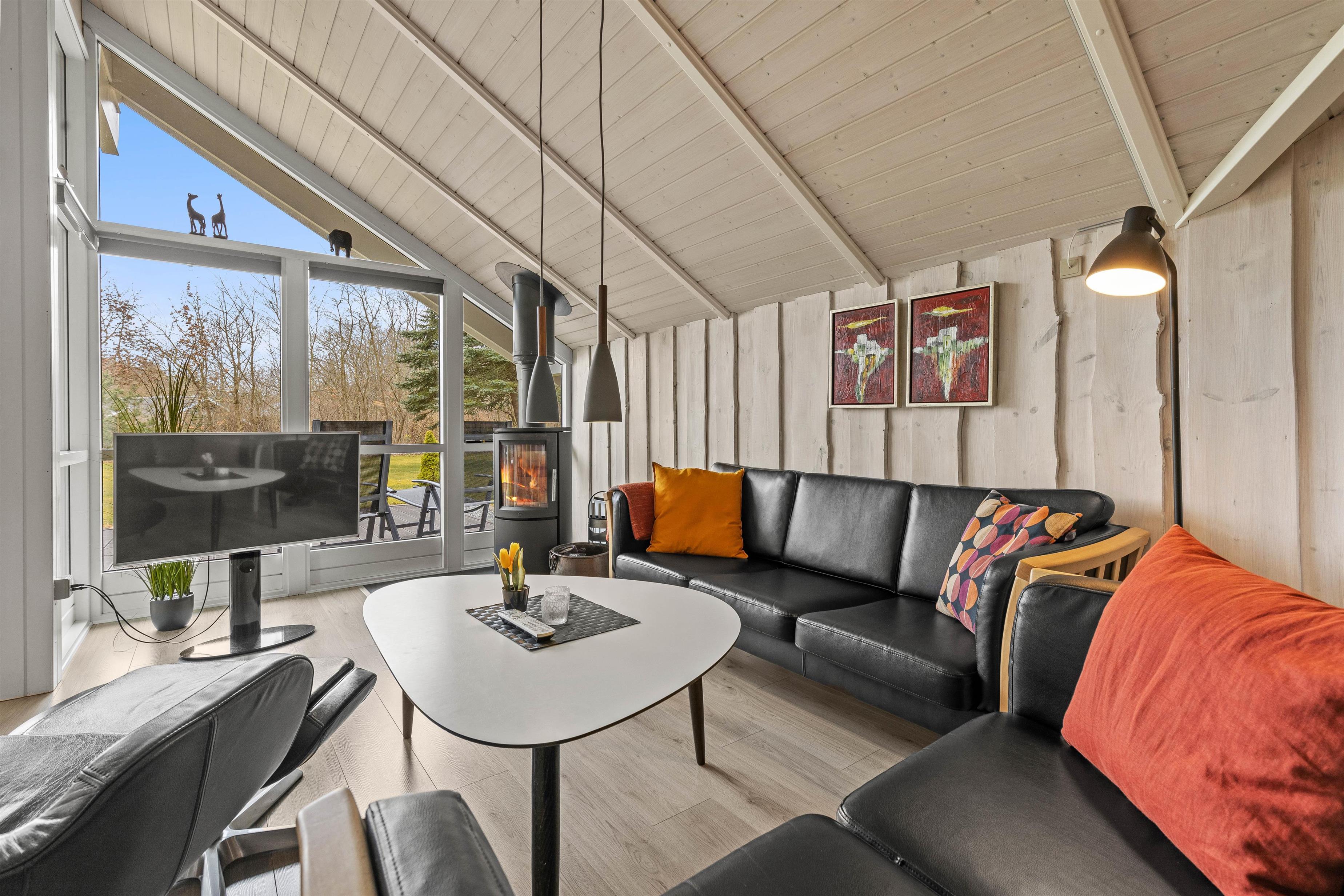 The outdoor area at Nordskrænten 68 offers an excellent mix of relaxation spaces and areas for open-air activities. A spacious open terrace invites you to spend relaxing hours in the sun or enjoy cosy evenings having a barbecue. The covered terrace provides additional shelter and comfort, allowing you to enjoy fresh air even in changeable weather. Younger guests will enjoy the swing and sandpit, promising hours of fun. The lawned grounds provide ample space for playing and are ideal for various outdoor activities.