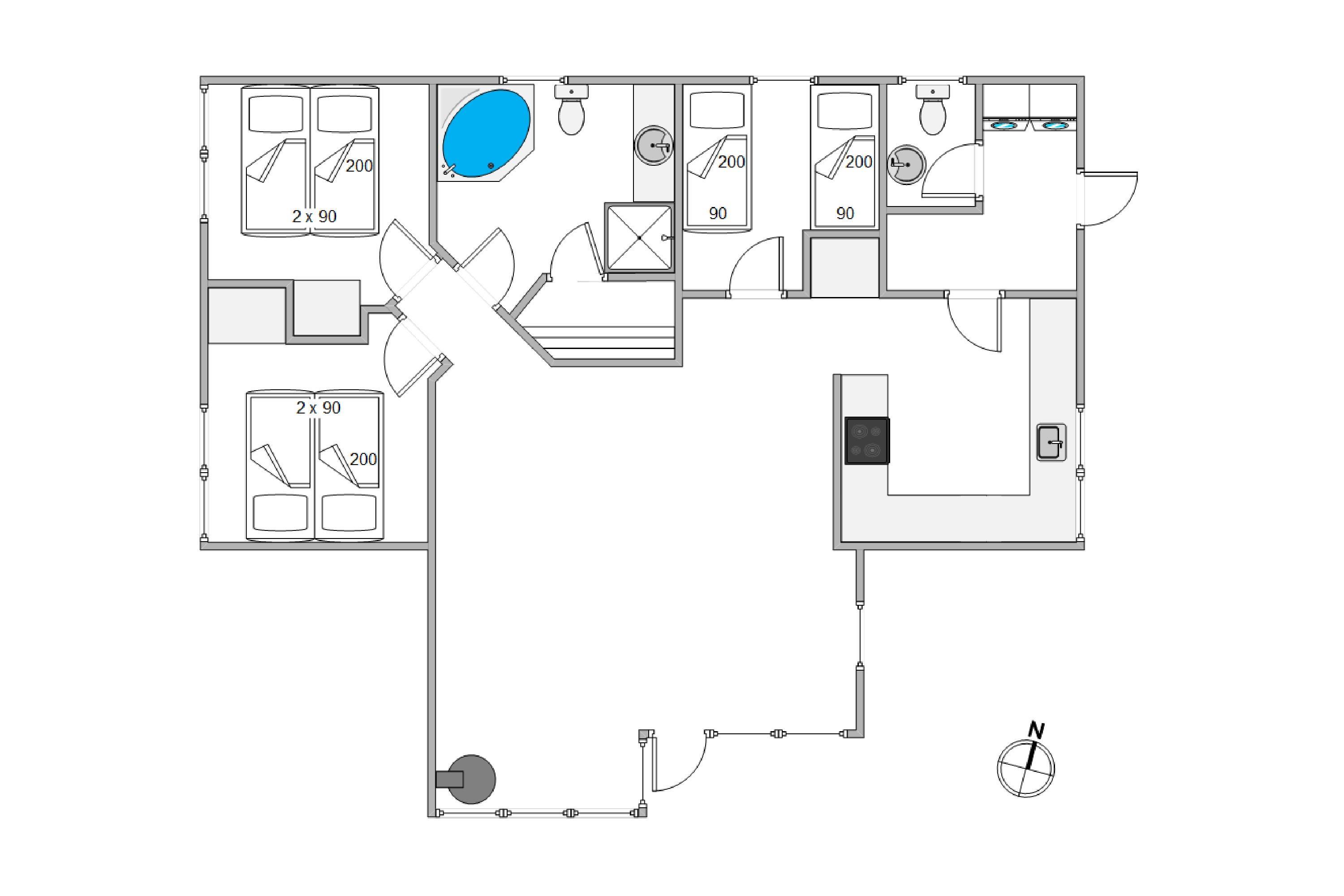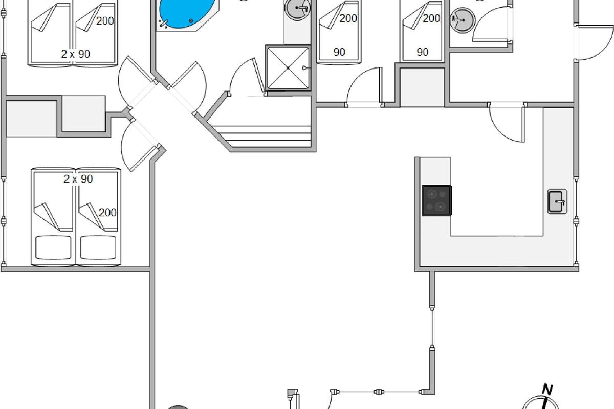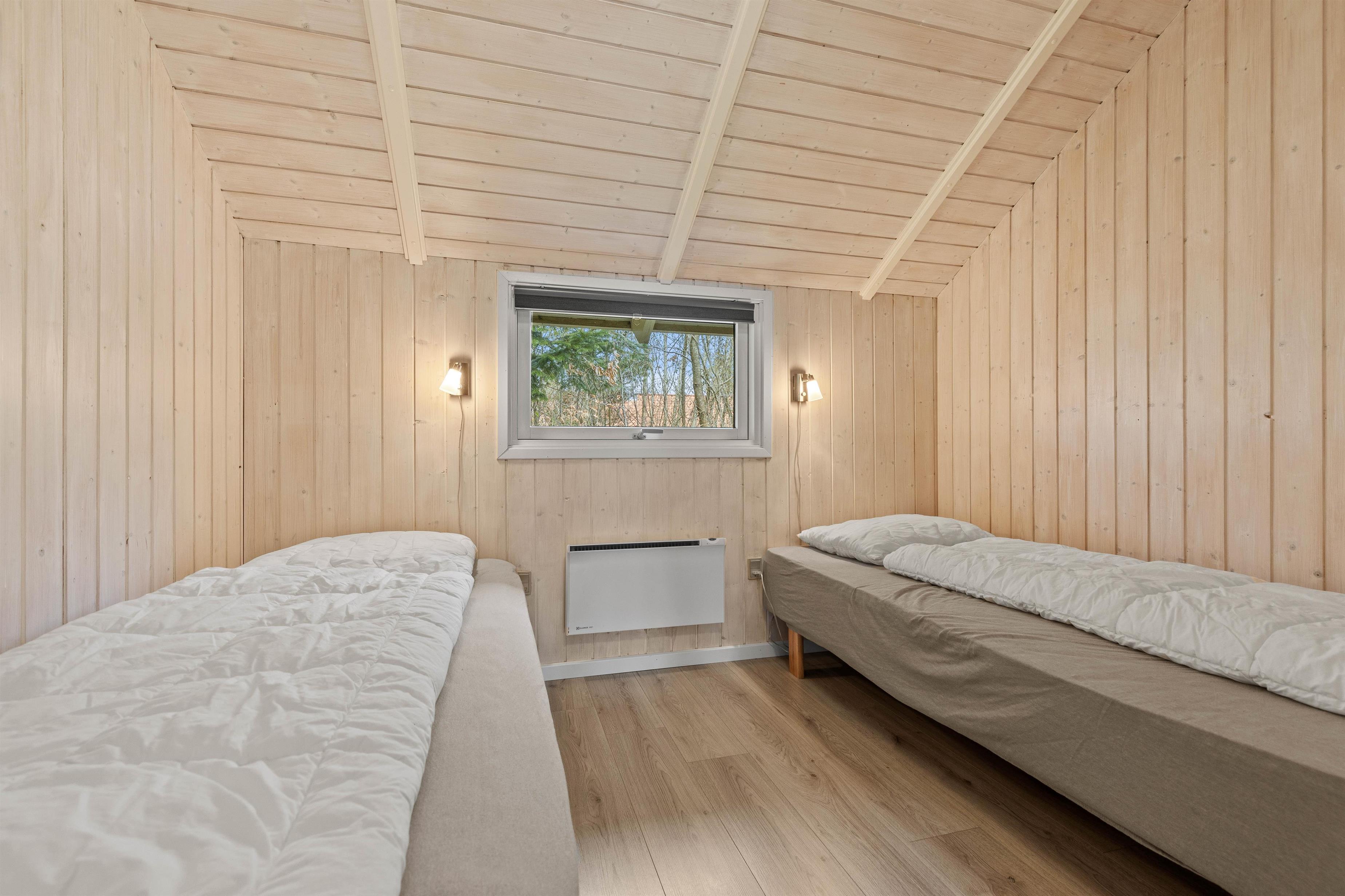 The holiday home at Nordskrænten 68 has 3 bedrooms. Two are furnished with double beds, while the third bedroom features twin beds. The bathroom offers modern amenities including underfloor heating, ensuring warm feet regardless of the season. Additional luxuries include a whirlpool and sauna. There's also a guest toilet for added convenience.