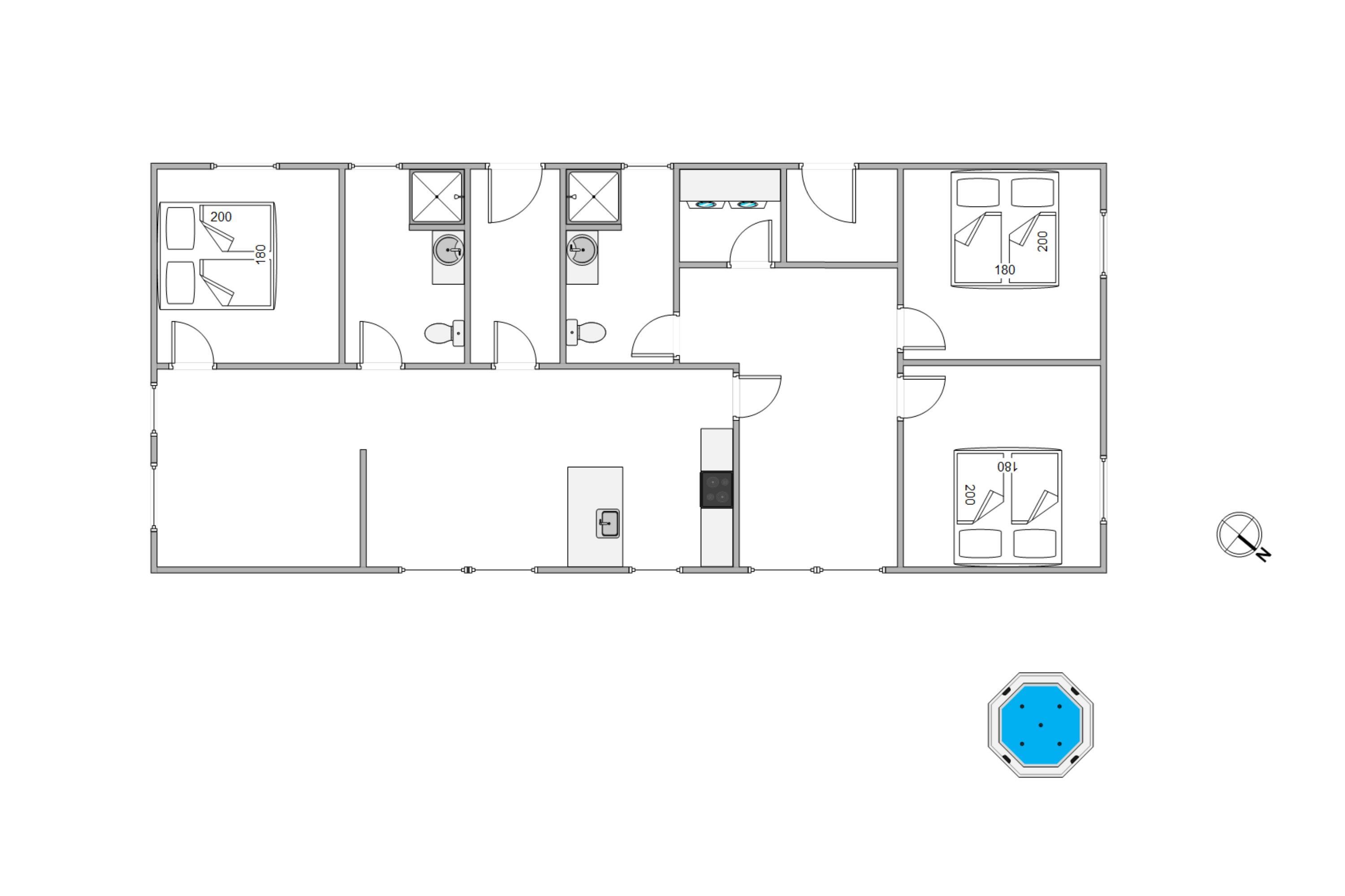 The living space in this holiday home is well-utilised with an ideal layout for families with children or teenagers. At one end of the holiday home, you'll find the master bedroom and a bathroom adjacent to the living room. The rear section houses two additional bedrooms, the games room, a second bathroom, and a small utility room with washing machine and tumble dryer. Both bathrooms feature underfloor heating.