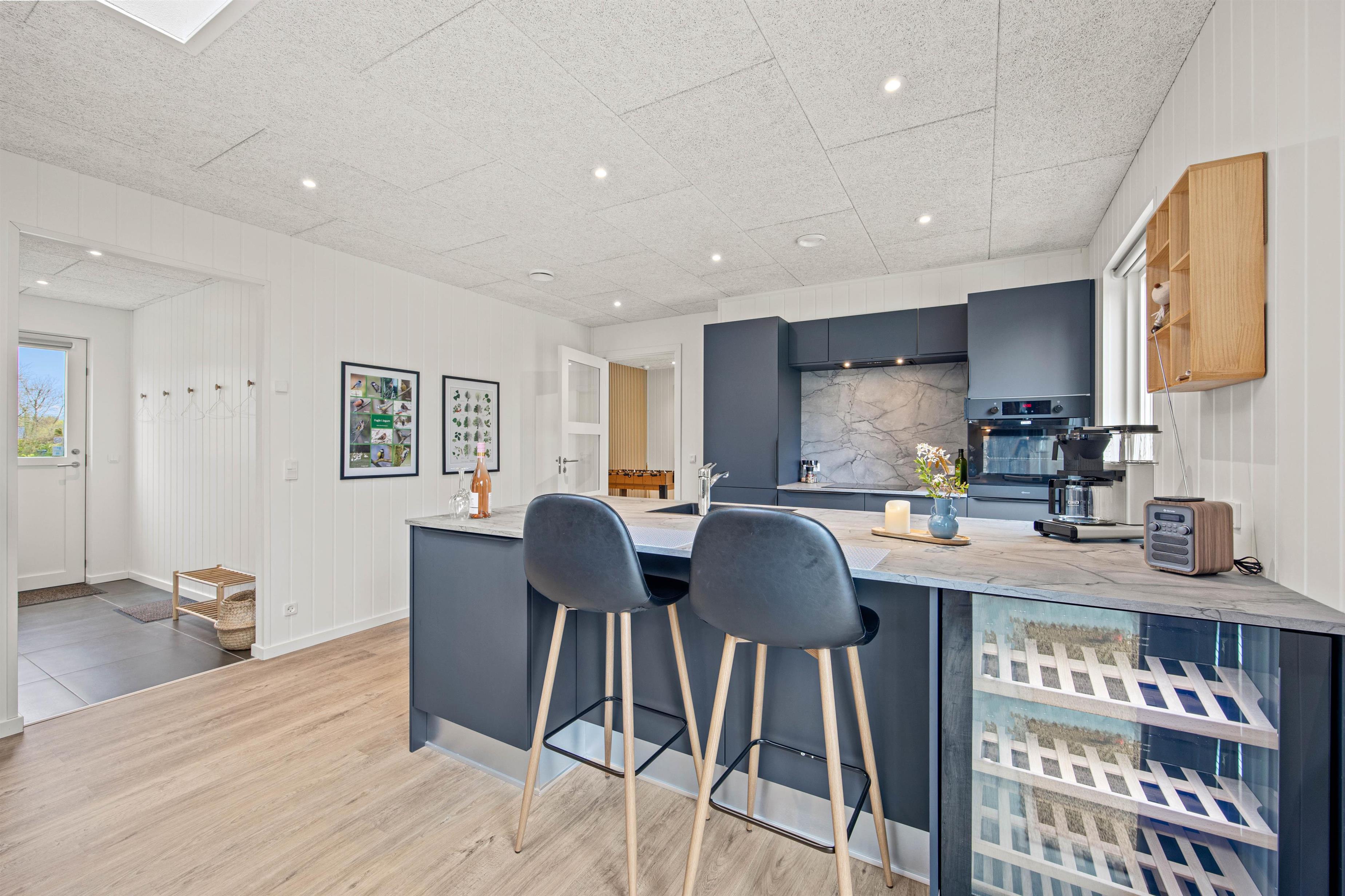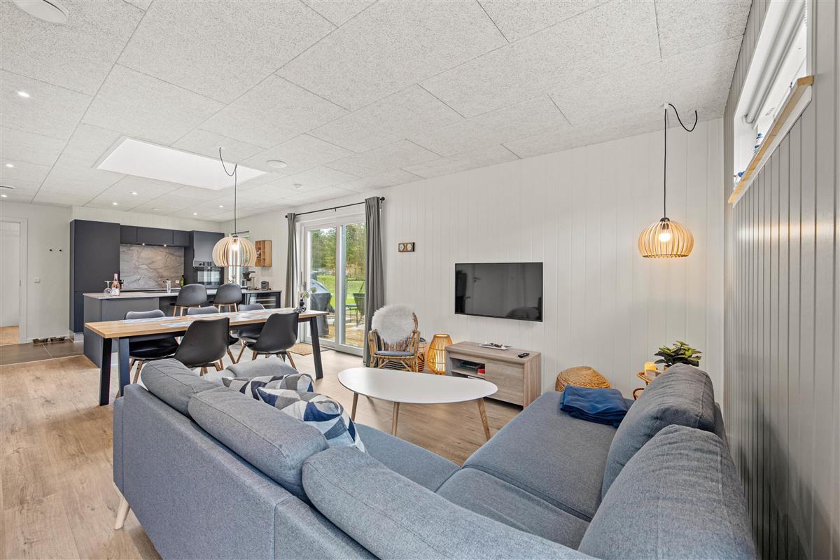 The centrally located kitchen is perfect for preparing delicious meals, with a dishwasher to help with the cleaning up, giving you more quality time together. Children can join in at the kitchen counter or spend time at the dining table with puzzles and games. The holiday home is heated by an energy-efficient heat pump, with underfloor heating in the bedrooms. In the evening, you can stream your favourite films via Chromecast. Built with carefully selected materials and featuring modern, tasteful furnishings, you'll feel at home from the moment you arrive.