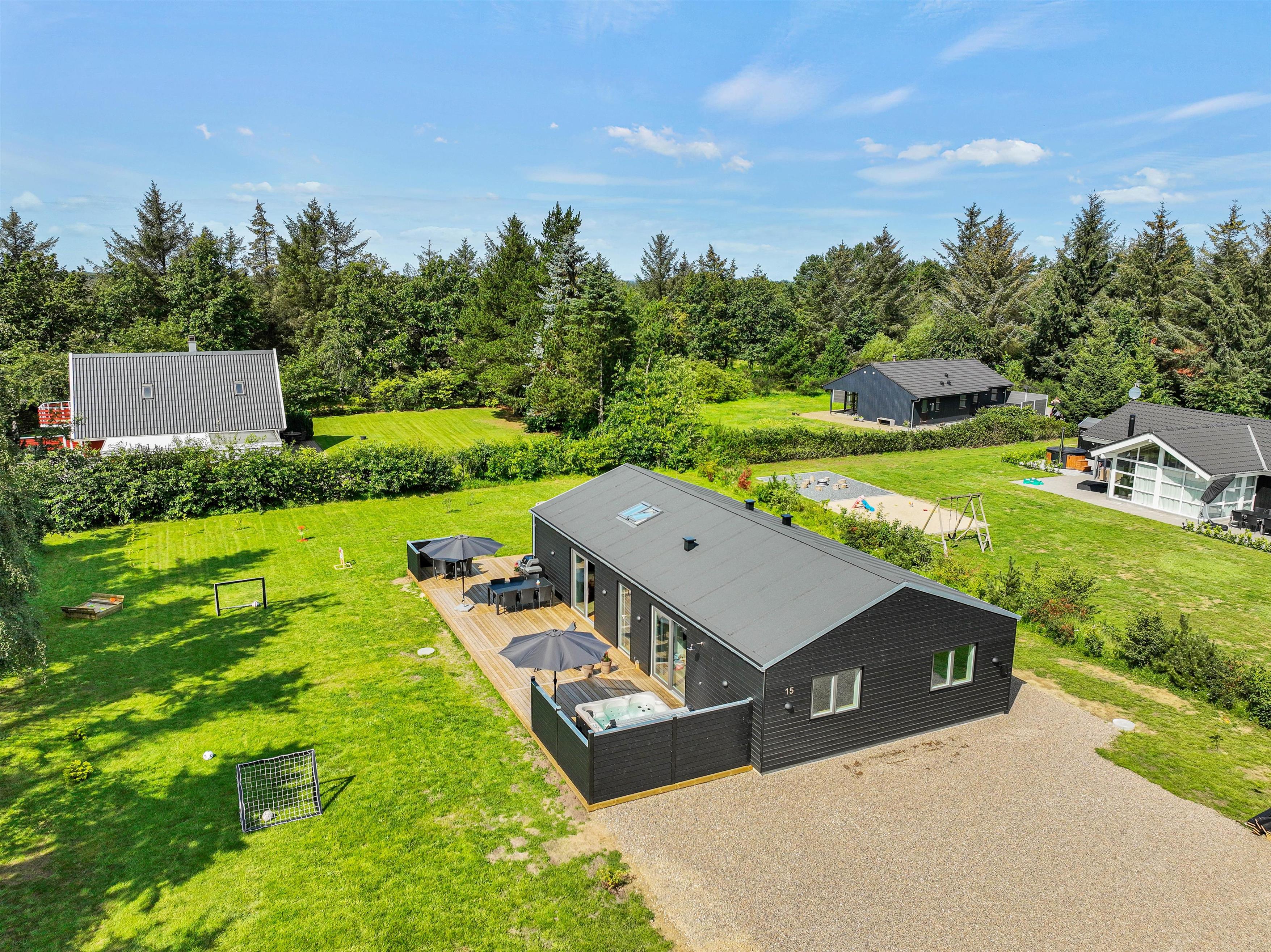 The outdoor area promises many enjoyable hours for everyone. The hot tub is sure to be a hit with all ages - perfect for any time of day or season. Adults might enjoy ending their evening under the starlit sky. There's also a lovely outdoor shower available from April to November.