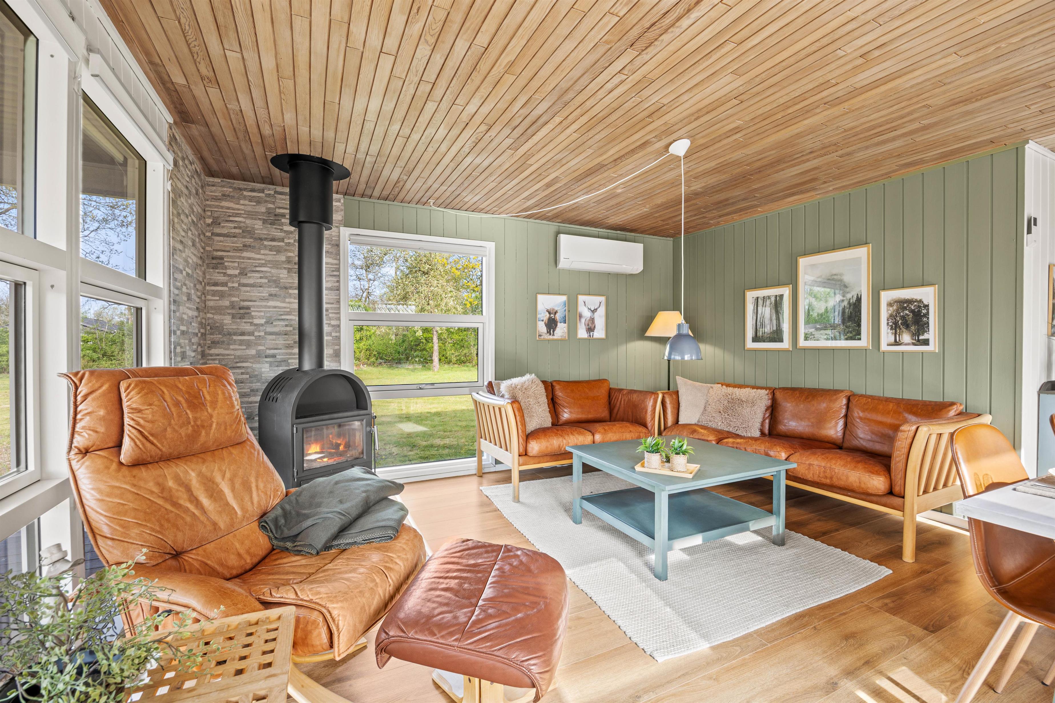 Curl up by the wood-burning stove on the comfortable sofa, enjoy a games evening at the dining table, or watch a film together. Thanks to Google Chromecast, you can stream your favourite films and series. There's plenty of space here for family time and that special Danish 'hygge' feeling. If you prefer not to use the wood-burner, the energy-efficient heat pump is available to warm the holiday home to your desired temperature.