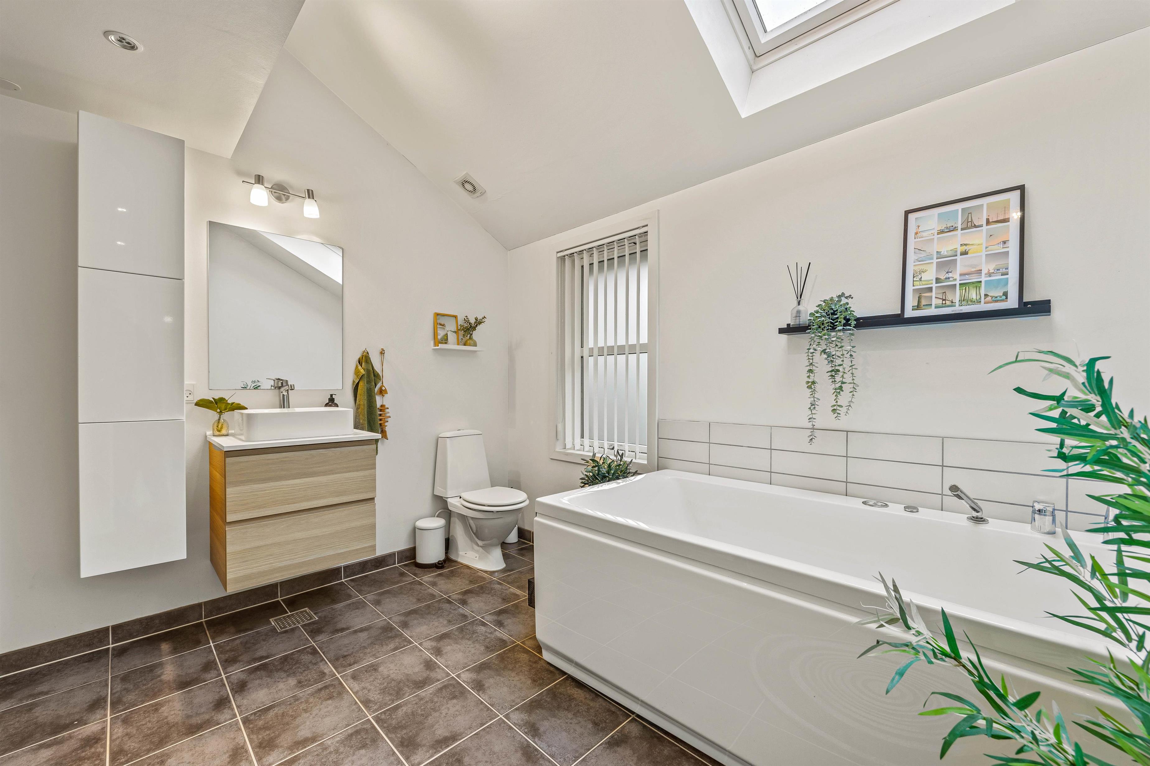 For restful nights, the holiday home offers three bedrooms, each furnished with double beds. Additionally, there's one extra sleeping space in the loft that can be used flexibly - perfect for recharging after an eventful day. Two modern bathrooms are available in the holiday home. The main bathroom is a small paradise featuring underfloor heating and a whirlpool for ultimate relaxation. For convenient laundry management, there's also a washing machine and tumble dryer.