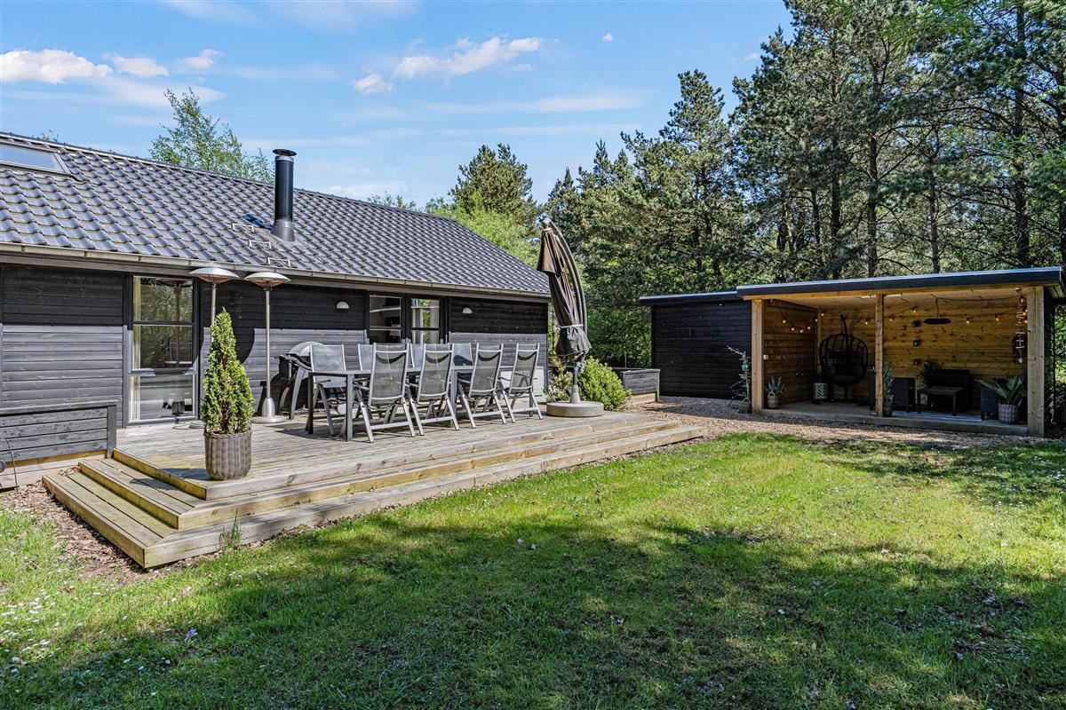 The holiday home at Blomstervangen 115 features three different terraces, each designed for different preferences. The open terrace is ideal for sun lovers who enjoy warm rays. For those preferring a more sheltered spot, the screened terrace offers additional comfort. There's also a covered terrace that can be used in any weather and is perfect for enjoyable barbecue evenings. The provided barbecue completes these occasions while you enjoy the fresh air.