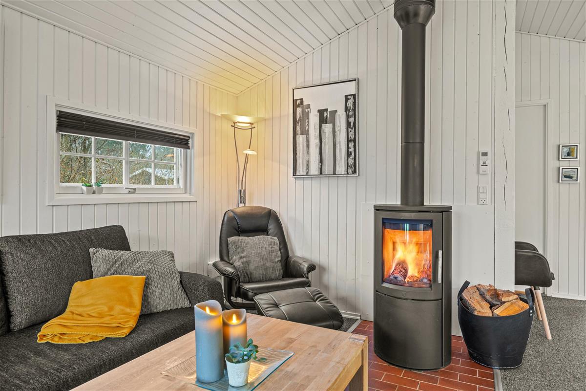 Typical Danish cosiness with a wood-burning stove at Nøddehaven 26