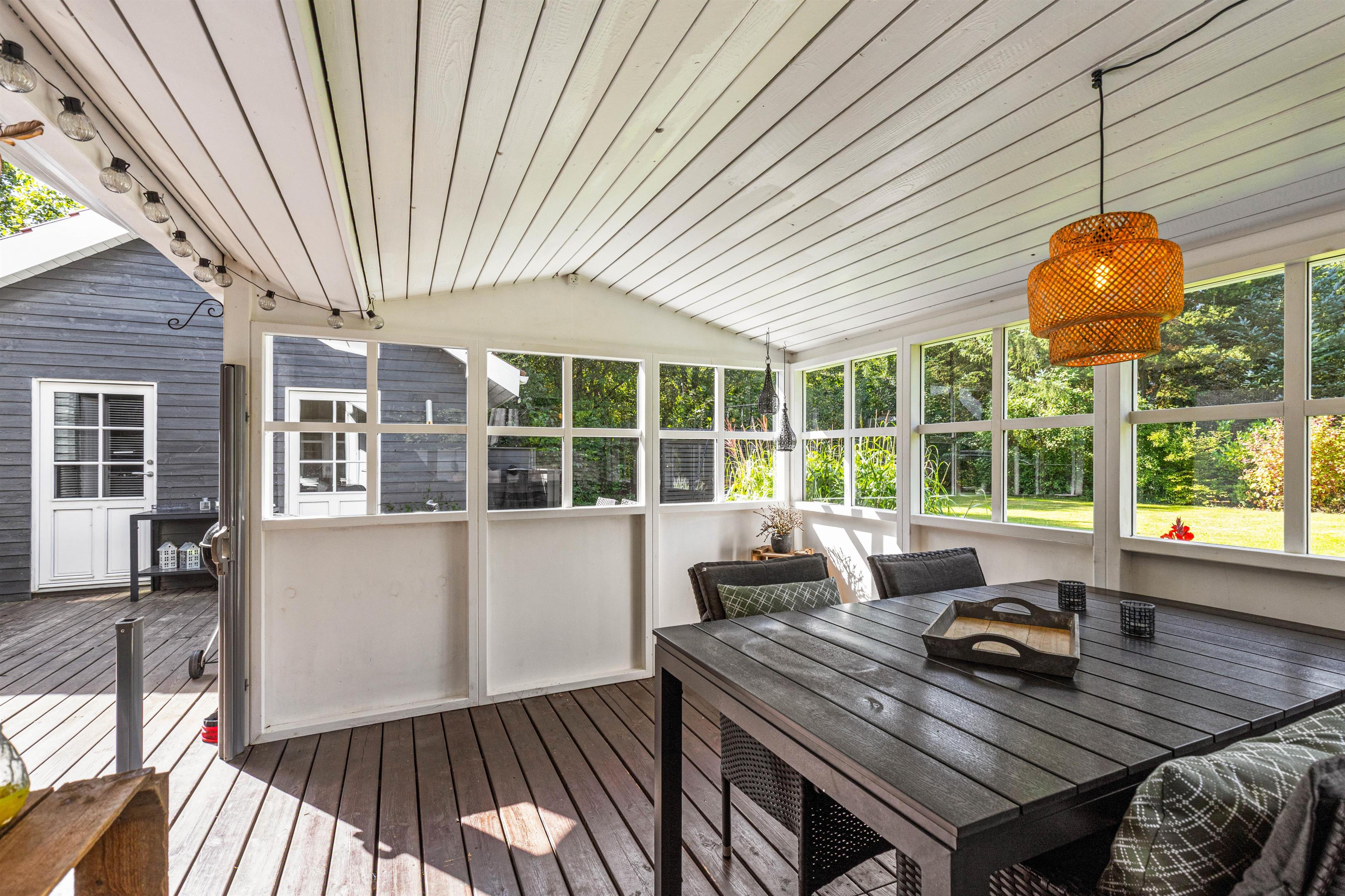 The sheltered terrace provides a protected retreat for outdoor dining or simply reading a book. During less sunny weather, you can use the covered terrace section. Families with children and dogs will particularly appreciate the fenced garden area. Little ones can safely enjoy the swing or get creative in the sandpit while remaining in view, and dogs have plenty of space to run and play.