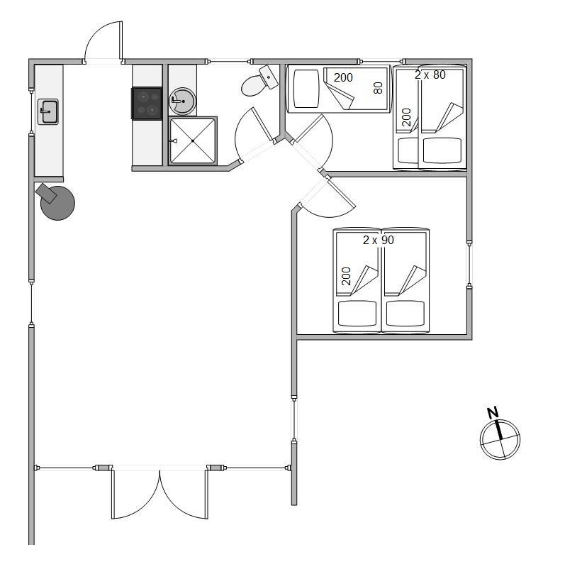 The holiday home has 2 comfortable bedrooms. One features 2 double beds, ideal for couples or larger families. The second bedroom offers 1 bunk bed for additional sleeping arrangements. Here you can retreat and enjoy restful nights. The bathroom features underfloor heating, ensuring a pleasant start to the day, particularly on cool mornings.