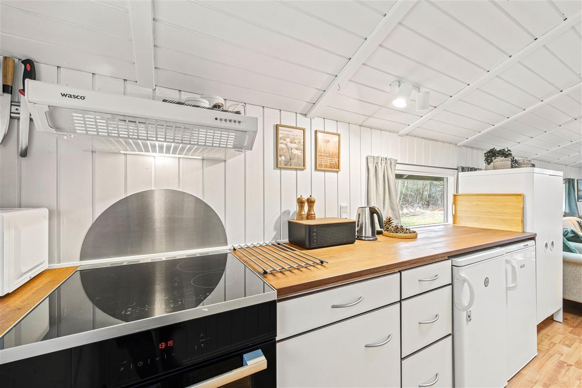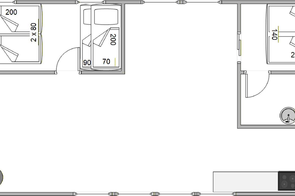 This 64 square metre holiday home offers plenty of space for small families or friends looking to spend a relaxing holiday together. The open-plan living area, combining the living room, dining room and kitchen, is perfect for spending cosy hours together. Light the wood-burning stove and enjoy its warmth while watching television or reading a book.