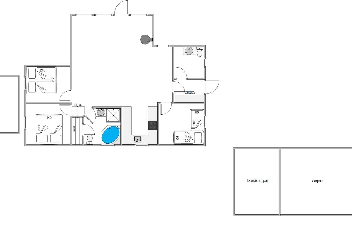 The holiday home at Brombærvangen 18 features three bedrooms providing peaceful retreats for rest. Two bedrooms offer double beds, while the third includes a practical bunk bed. The bathroom features underfloor heating and a whirlpool, creating a mini spa experience where you can unwind after an eventful day. For added convenience, there's a separate guest toilet.