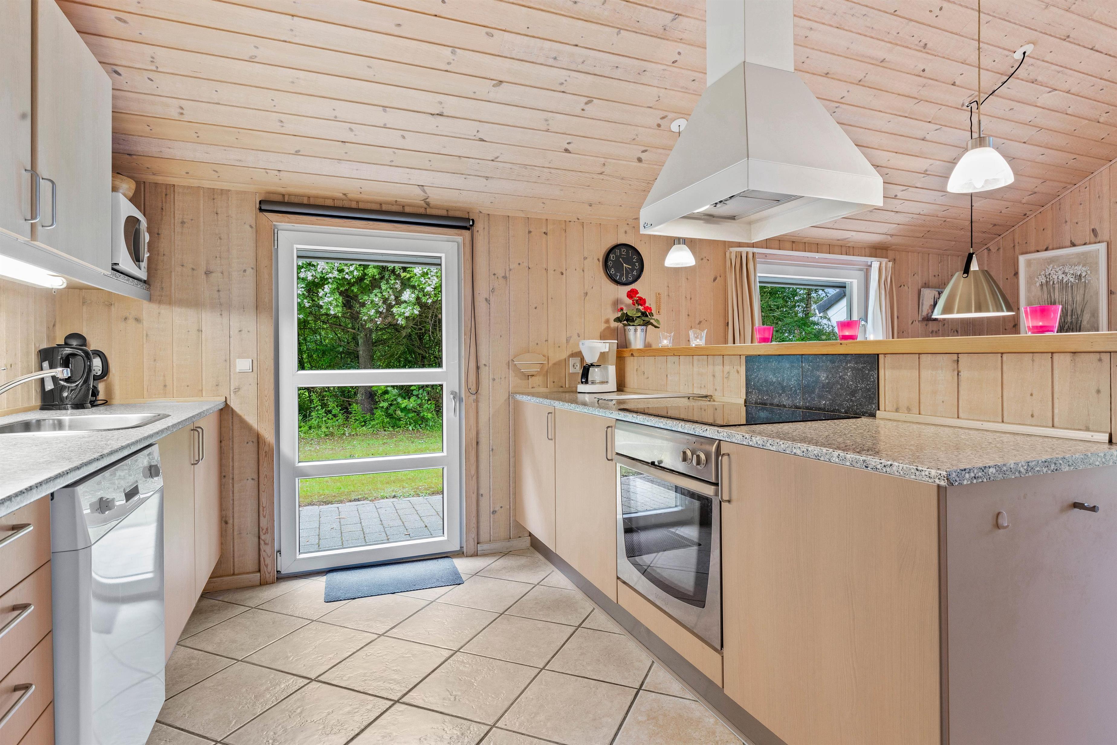 The inviting living room is ideal for relaxed hours with family or friends. The wood-burning stove provides cosy warmth on cooler days, creating a comfortable atmosphere. An air-to-air heat pump offers additional comfort, maintaining pleasant temperatures throughout the holiday home all year round. Here you can settle in with a good book or an engaging film and enjoy peaceful evenings. The modern kitchen leaves nothing to be desired. A dishwasher makes cleaning up easier, and the adjacent dining area offers ample space for everyone to dine together.