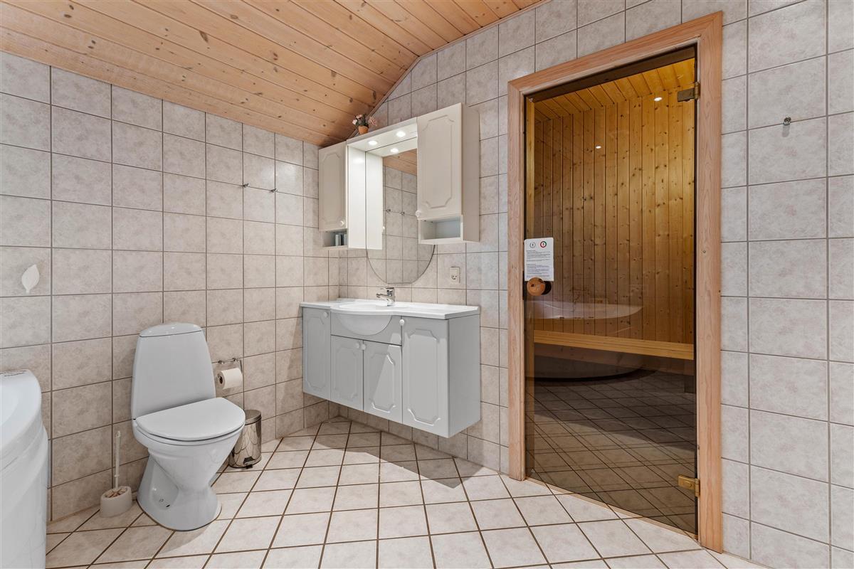 The holiday home at Blomstervangen 156 features three bedrooms, each equipped with a double bed, providing a peaceful retreat for restful nights. In the bathroom, you'll find underfloor heating for warm feet and a whirlpool where you can unwind after an eventful day. The sauna offers another opportunity for relaxation. For added convenience, there's a guest toilet, ensuring no queues even when the house is fully occupied.