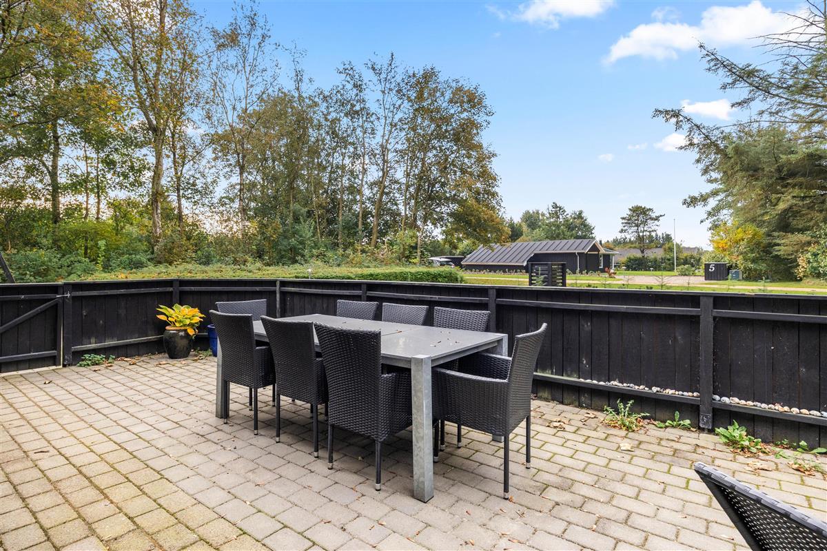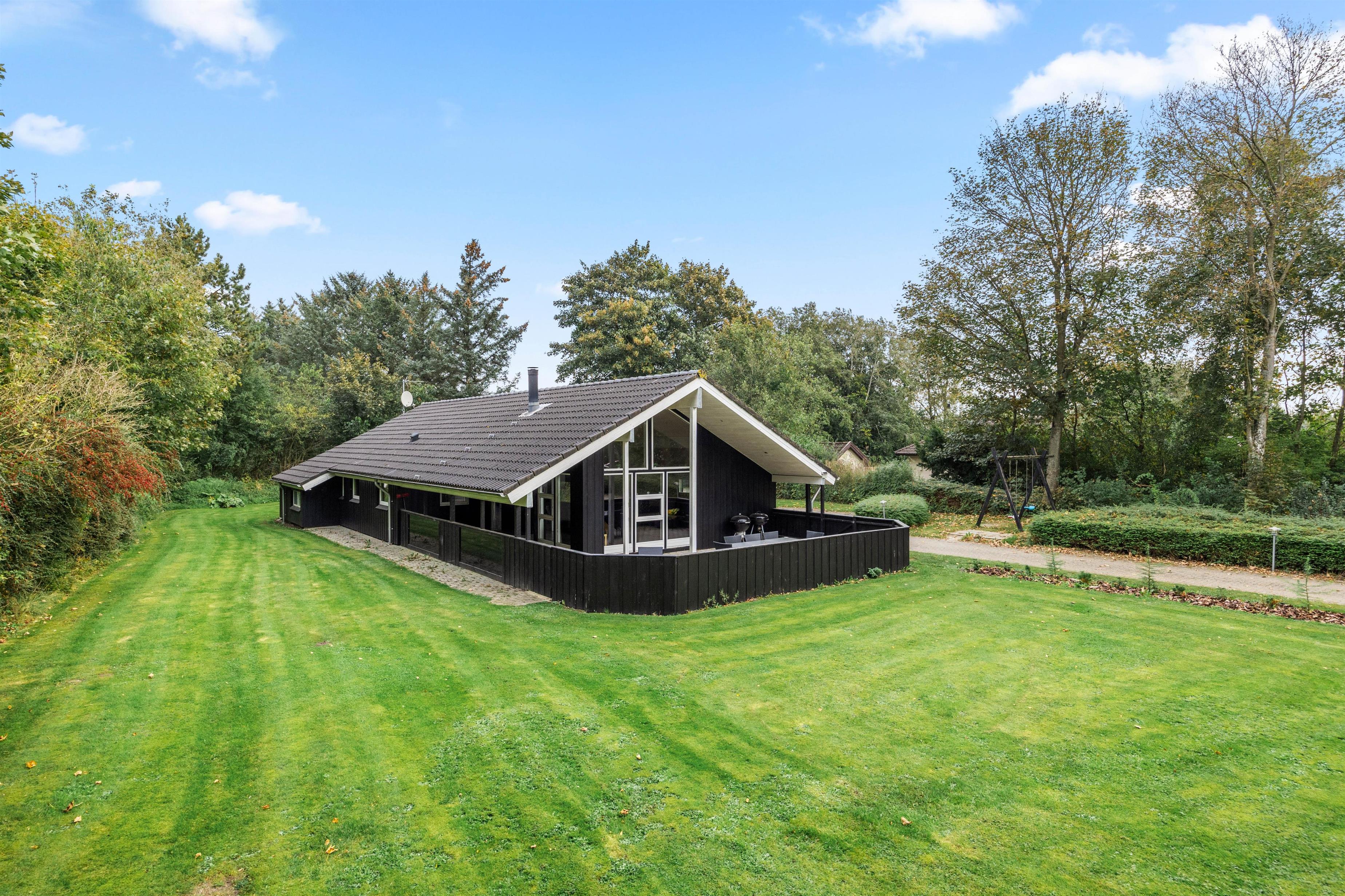 The outdoor area of this Jegum Ferieland holiday home is a retreat for relaxation and leisure activities. The open terrace provides an ideal spot for sociable barbecue evenings in the open air or simply enjoying the sunshine. This is complemented by a covered and sheltered terrace, offering protection during changeable weather or on windy days. These varied terrace options invite you to enjoy the outdoors in every season. Younger guests will enjoy the sandpit and swing, providing plenty of fun and entertainment.