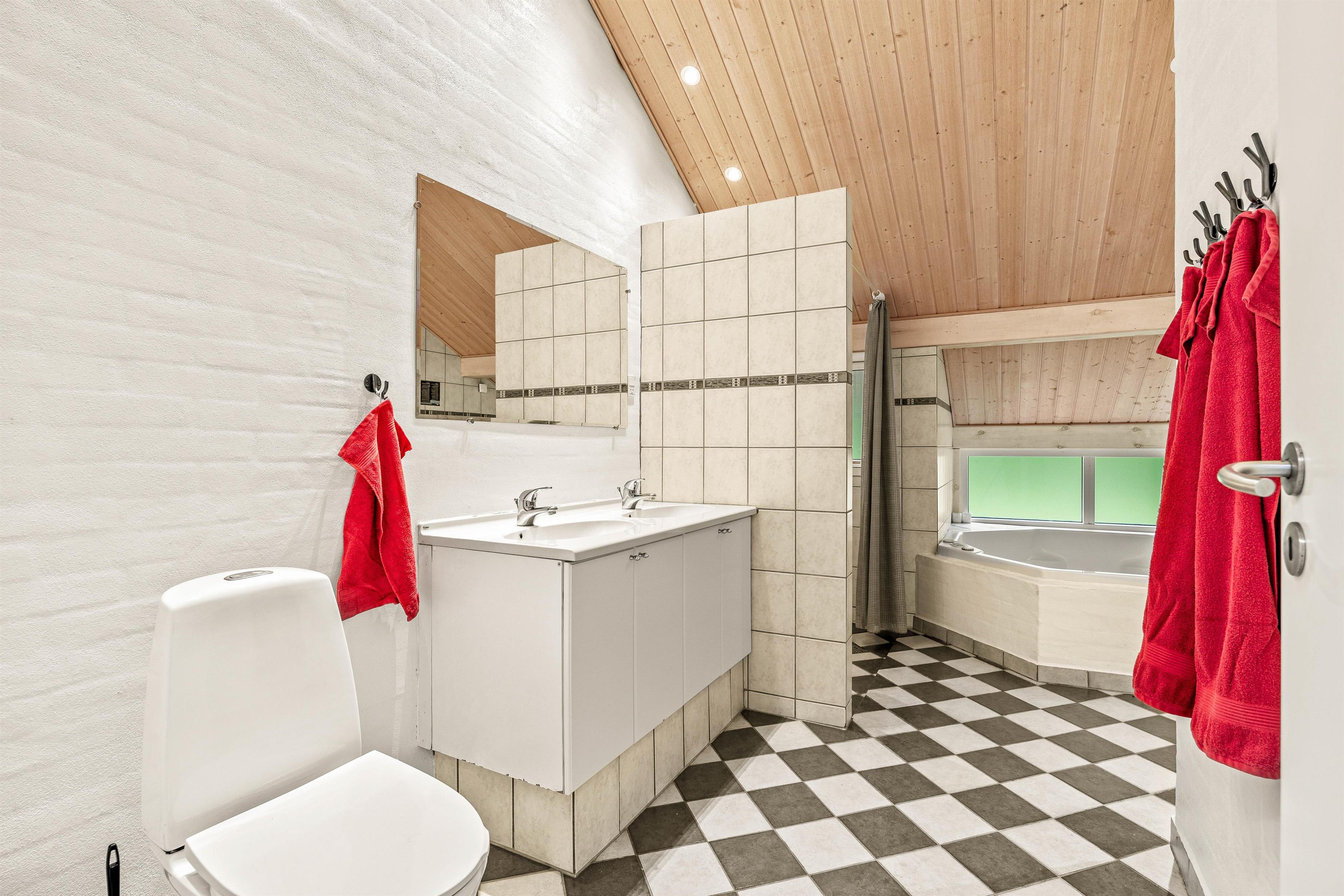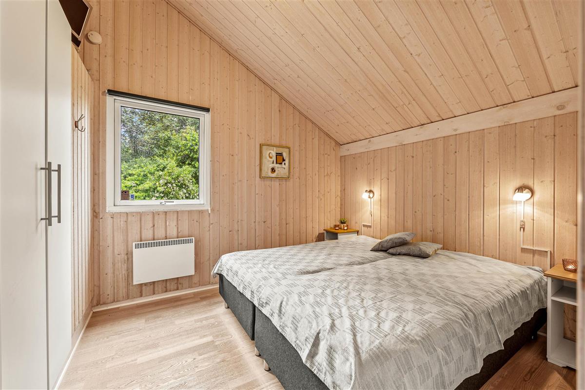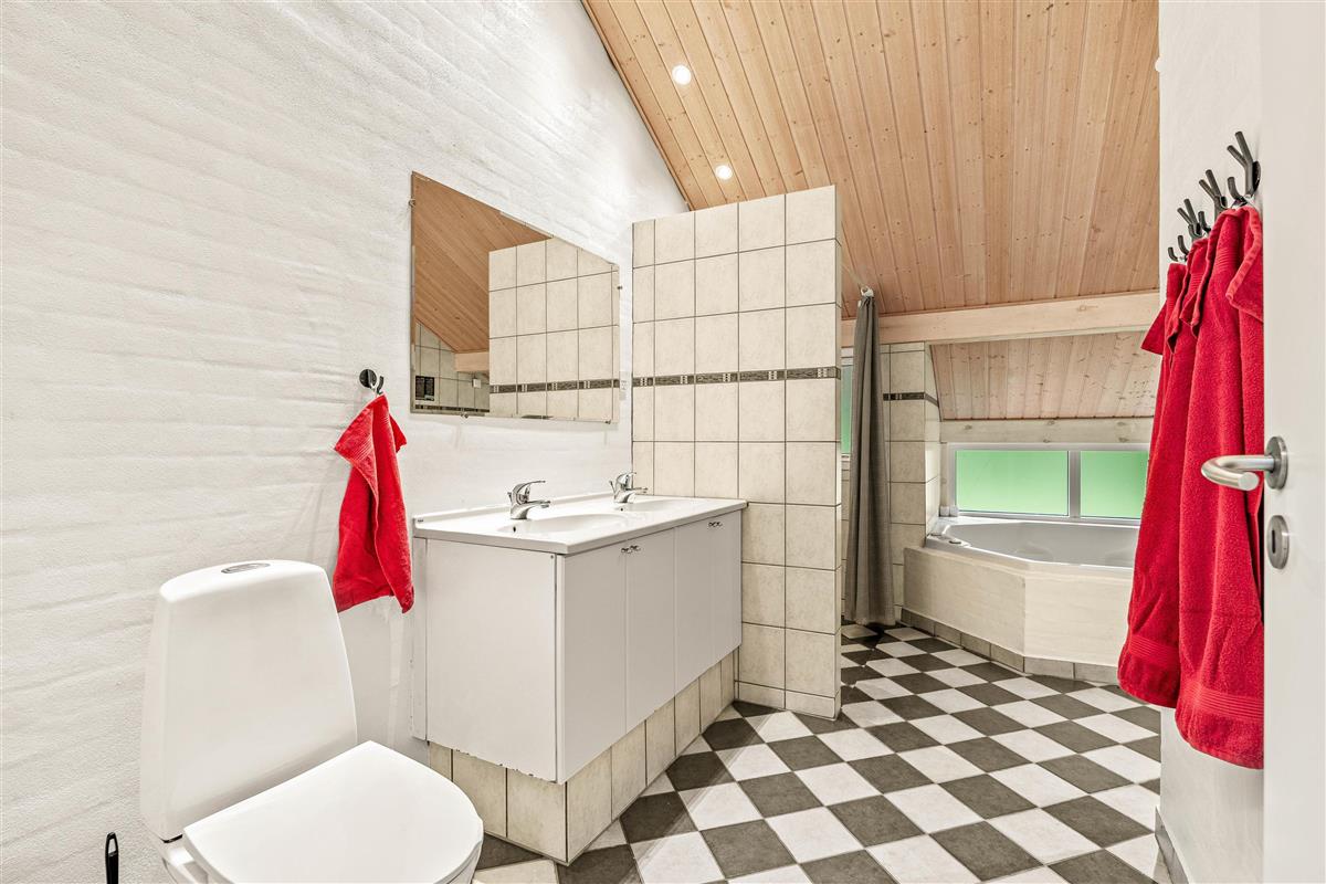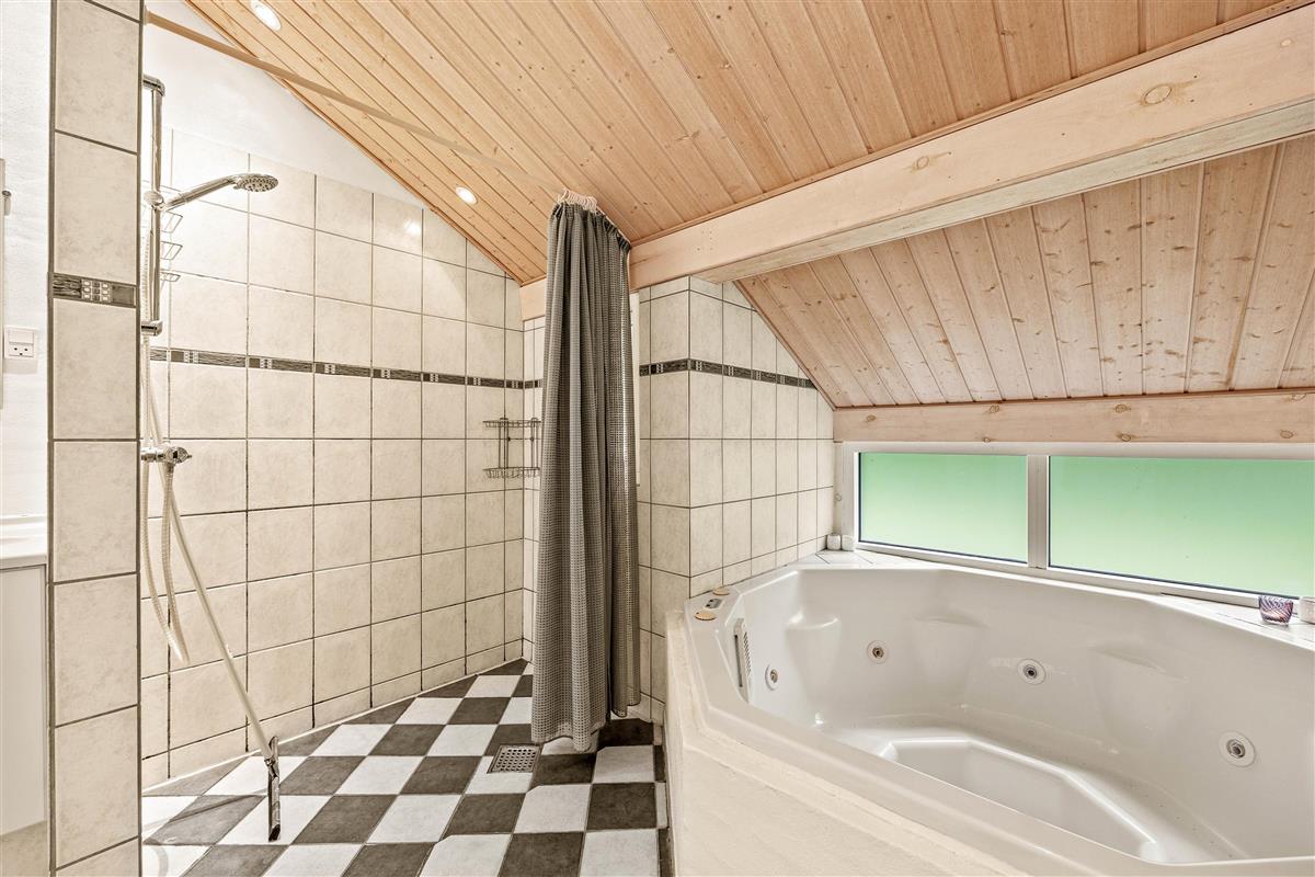 The holiday home at Solbærvangen 11 features 4 bedrooms, accommodating up to 8 guests. Three bedrooms have double beds, while another offers two single beds. Both bathrooms feature underfloor heating, providing welcome warmth on cooler days. A highlight is the whirlpool, perfect for relaxation after an active day.