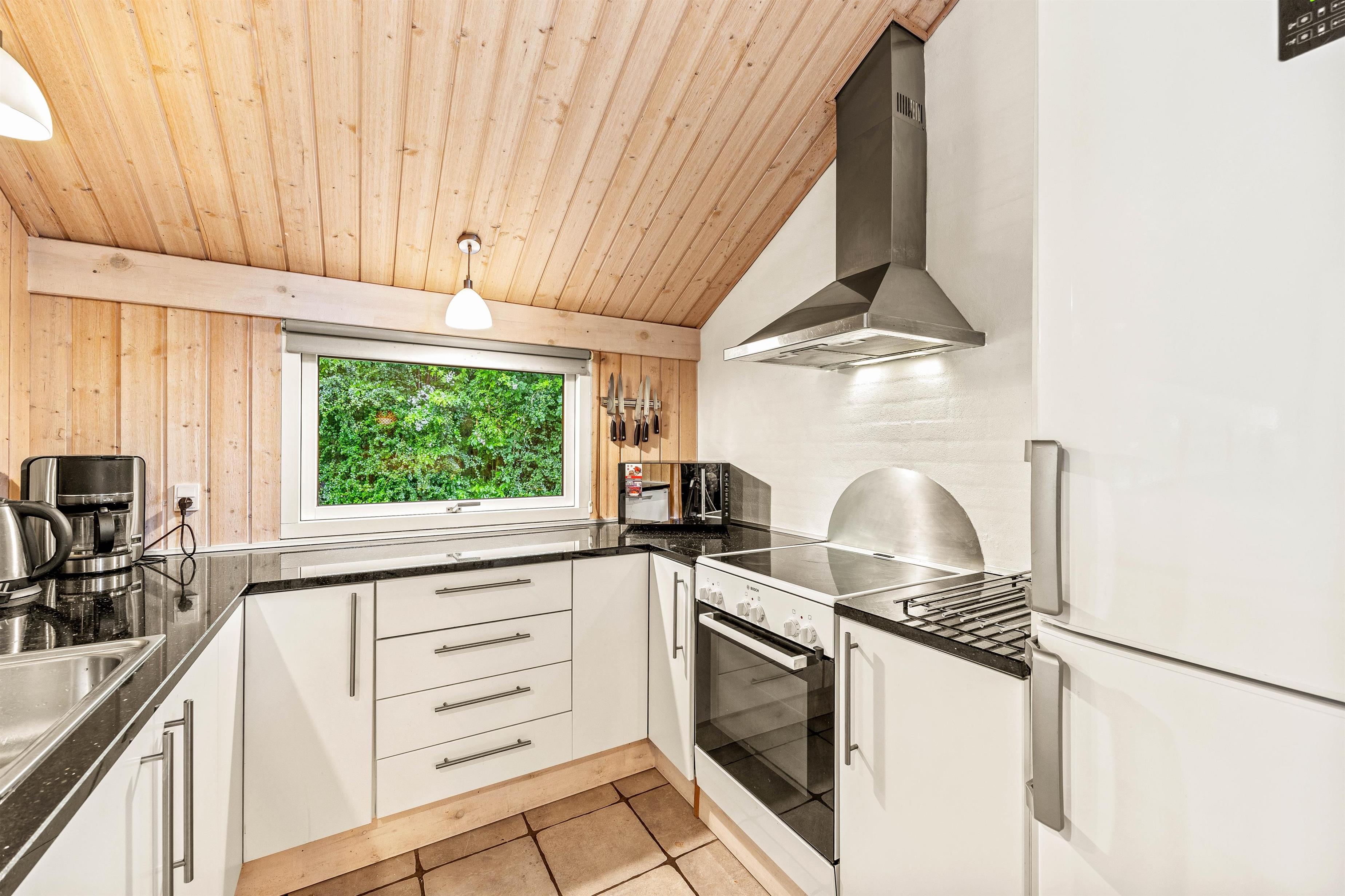 The living room exudes a warm and welcoming atmosphere. Featuring a cosy wood-burning stove, you can spend relaxing hours here while the dancing flames provide soothing warmth. The seating area is perfect for reading a book or enjoying quality family time. Google Chromecast is also available for streaming your favourite films and series. The fully equipped kitchen caters to all your culinary needs. Fitted with a dishwasher, clearing up is effortless, allowing you to spend more time with your loved ones.