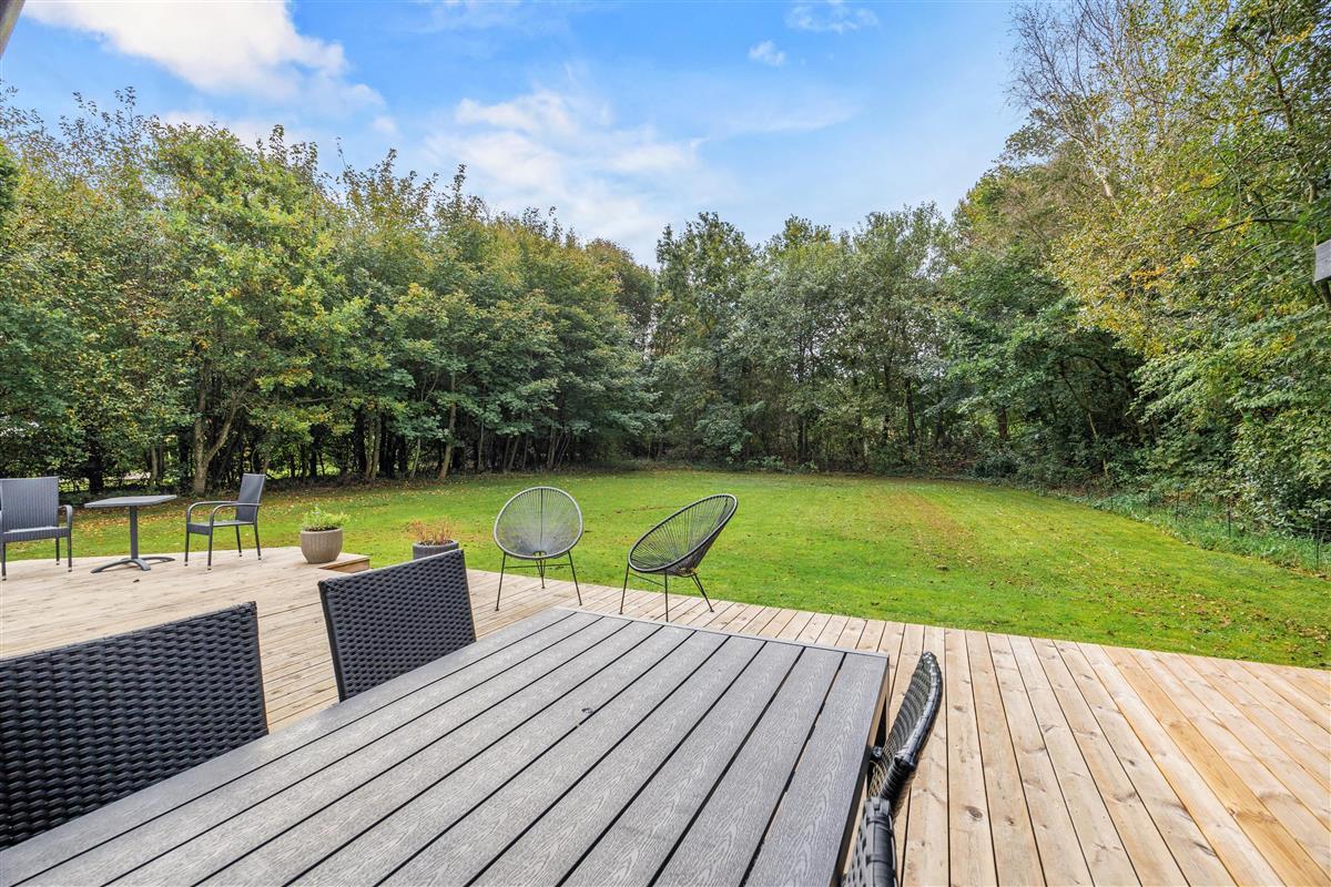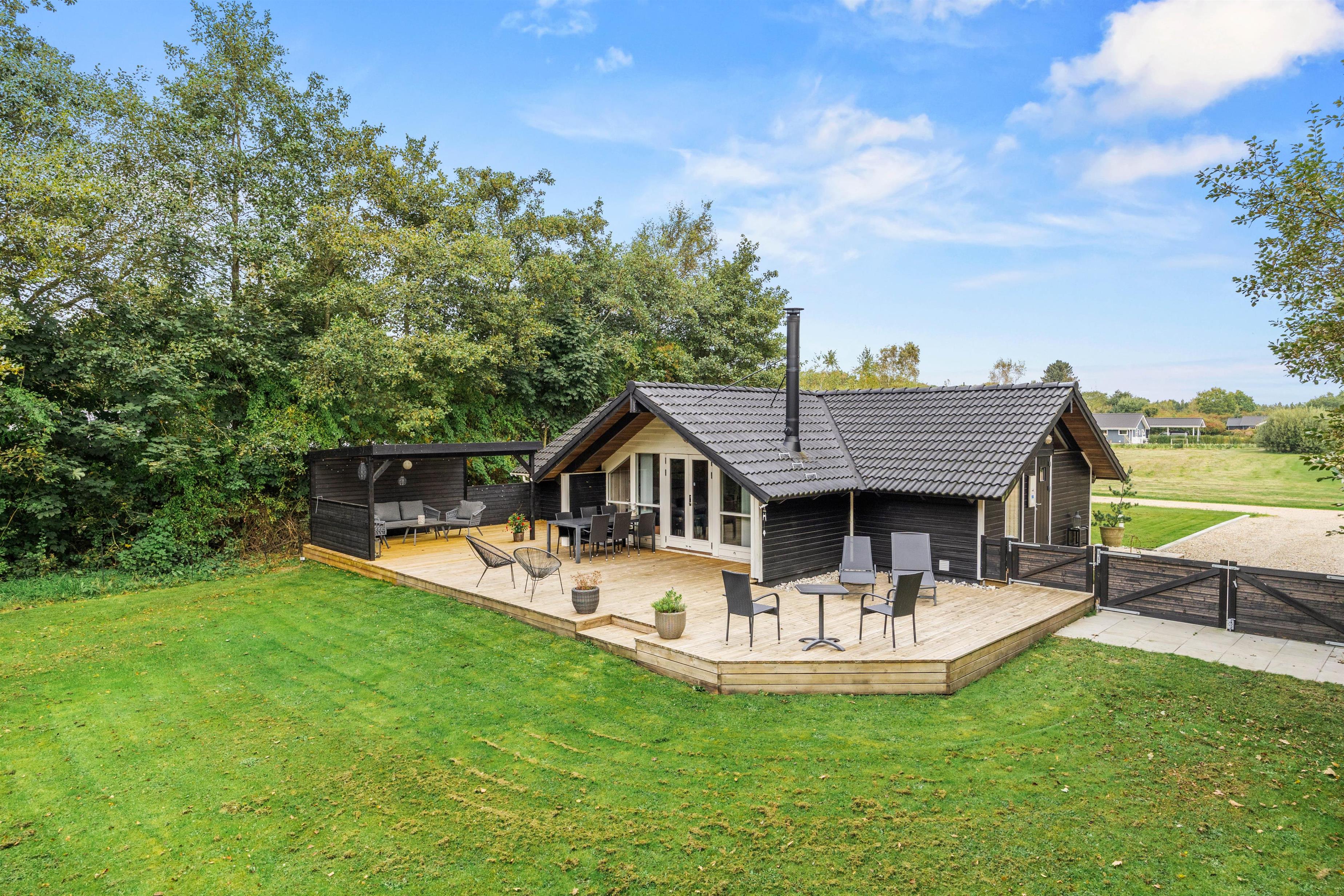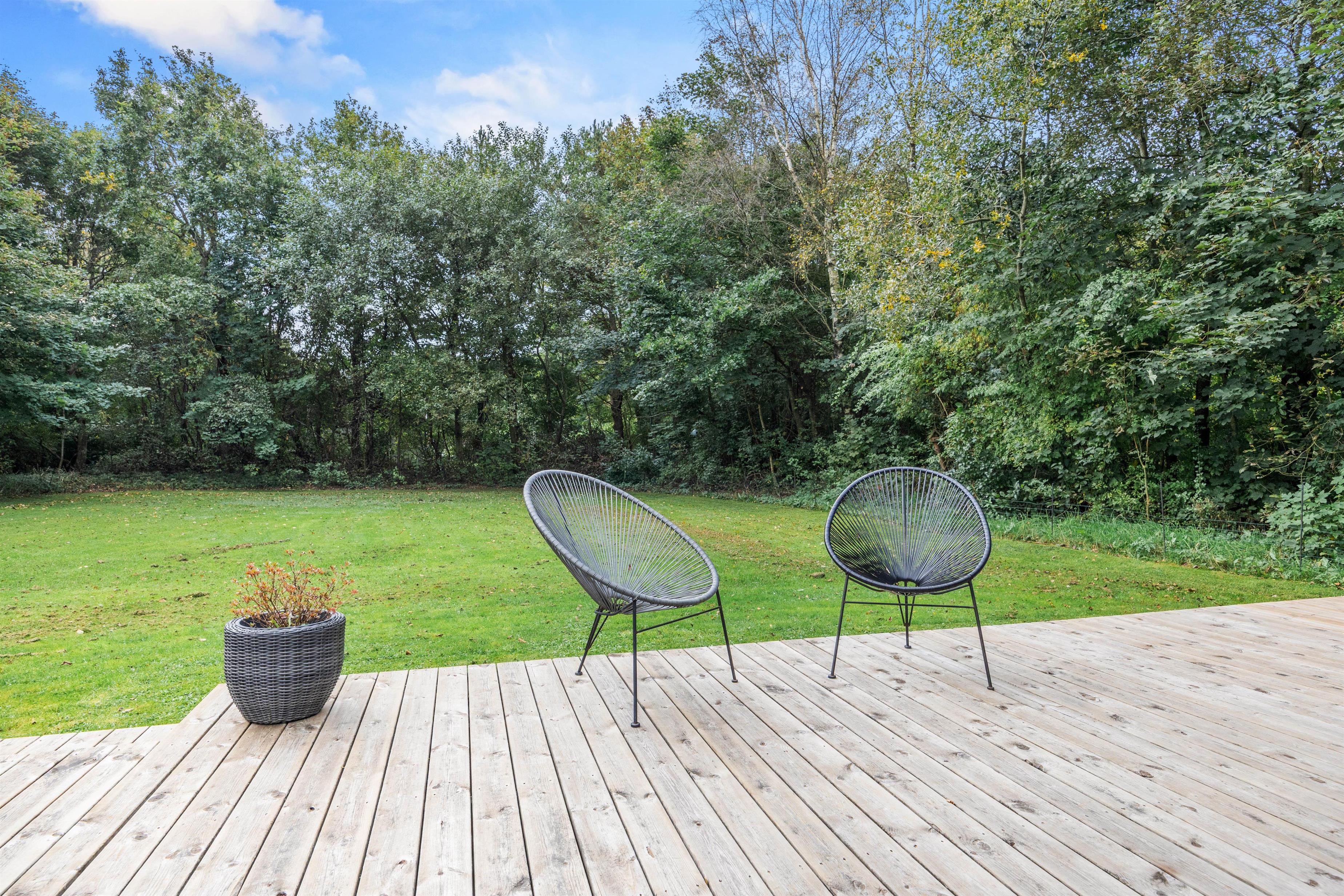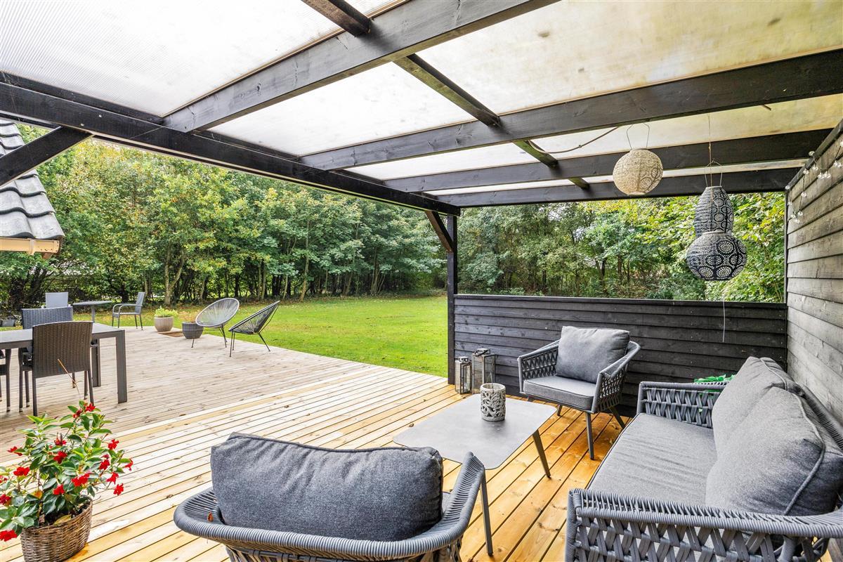 The open terrace at Enebærvangen 18 is perfect for sunny days and offers plenty of space for socialising. Here you can relax during a lovely barbecue evening while enjoying the fresh air. The partially covered terrace provides additional space to retreat and enjoy peace and quiet, protected from the elements. The lawn, newly fenced in 2024, is ideal for families with children and dog owners. Your children can play safely while your dog can move freely without causing worry.