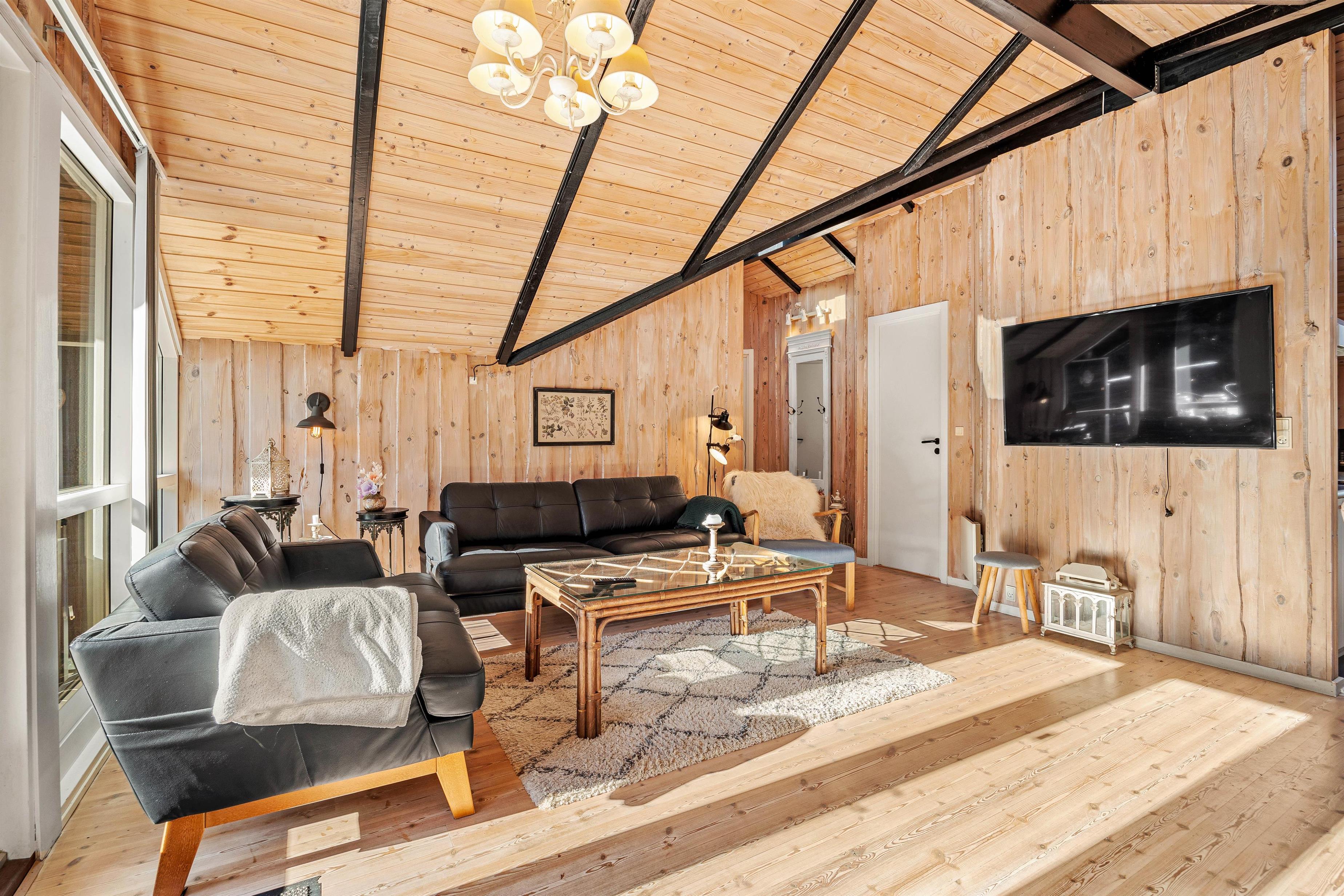The spacious living room, featuring a wood-burning stove, is the heart of the holiday home. Here you can gather and unwind after an eventful day. The open-plan kitchen is modernly equipped, and a dishwasher ensures you won't have to worry about washing up after preparing meals, leaving more time to enjoy together.