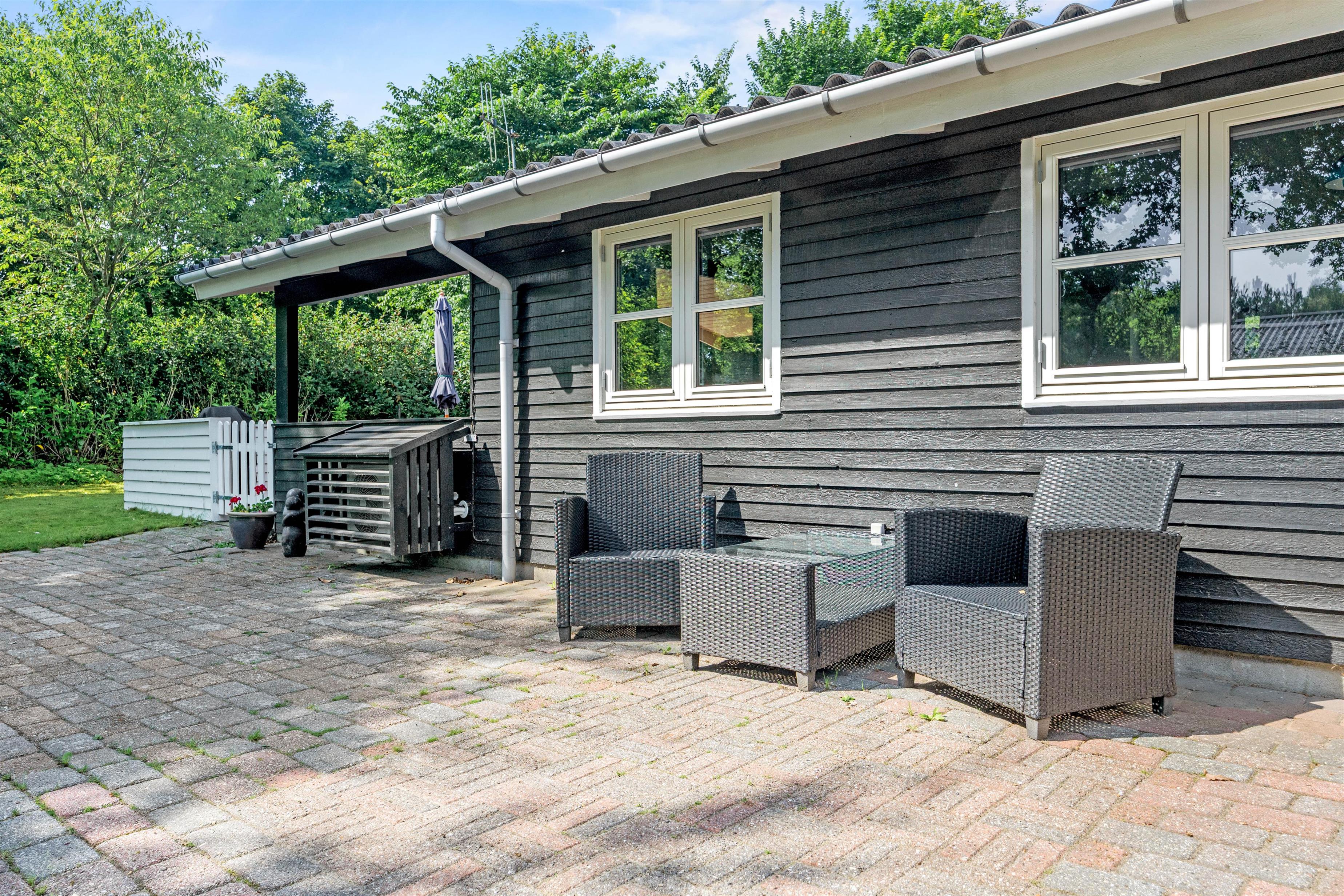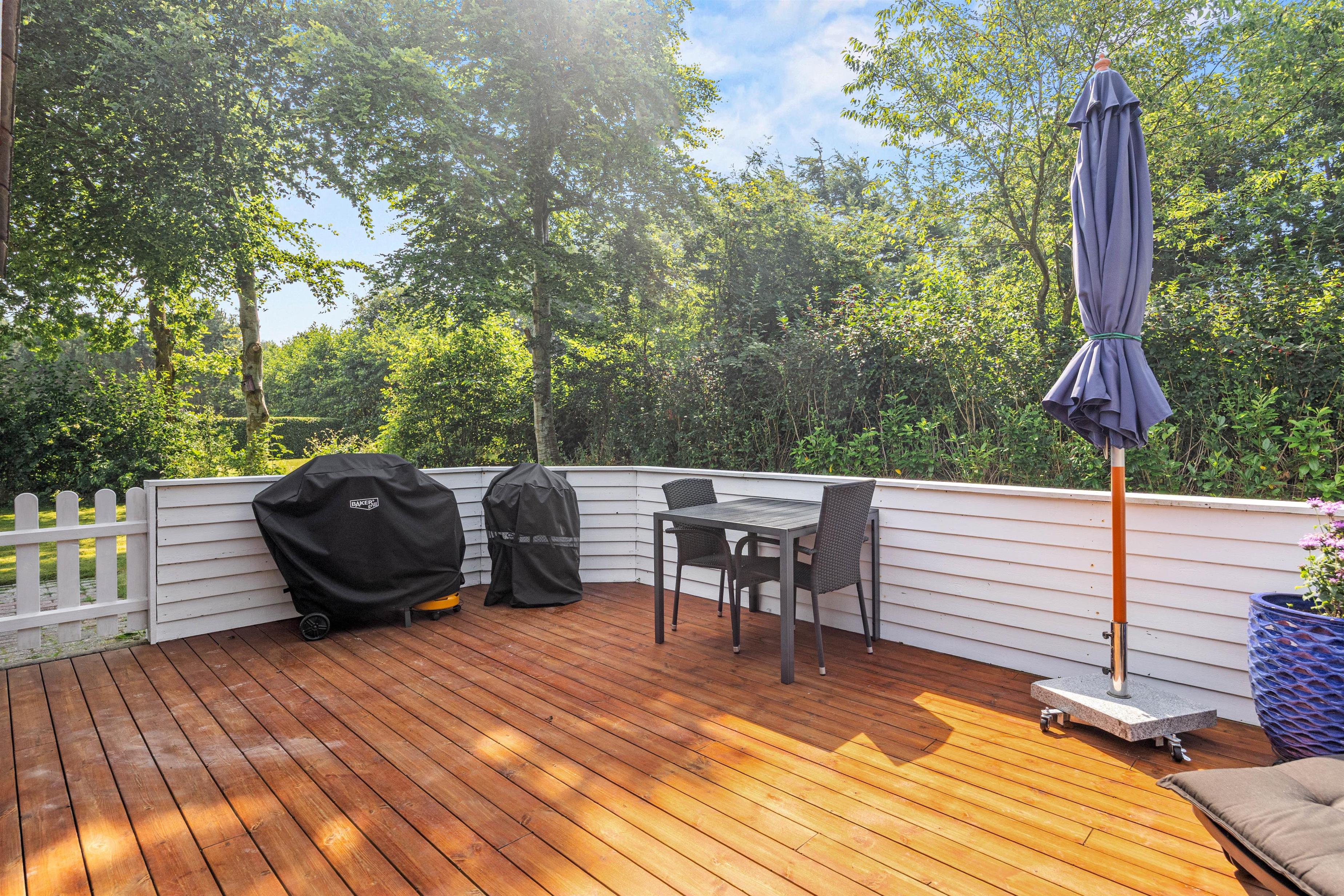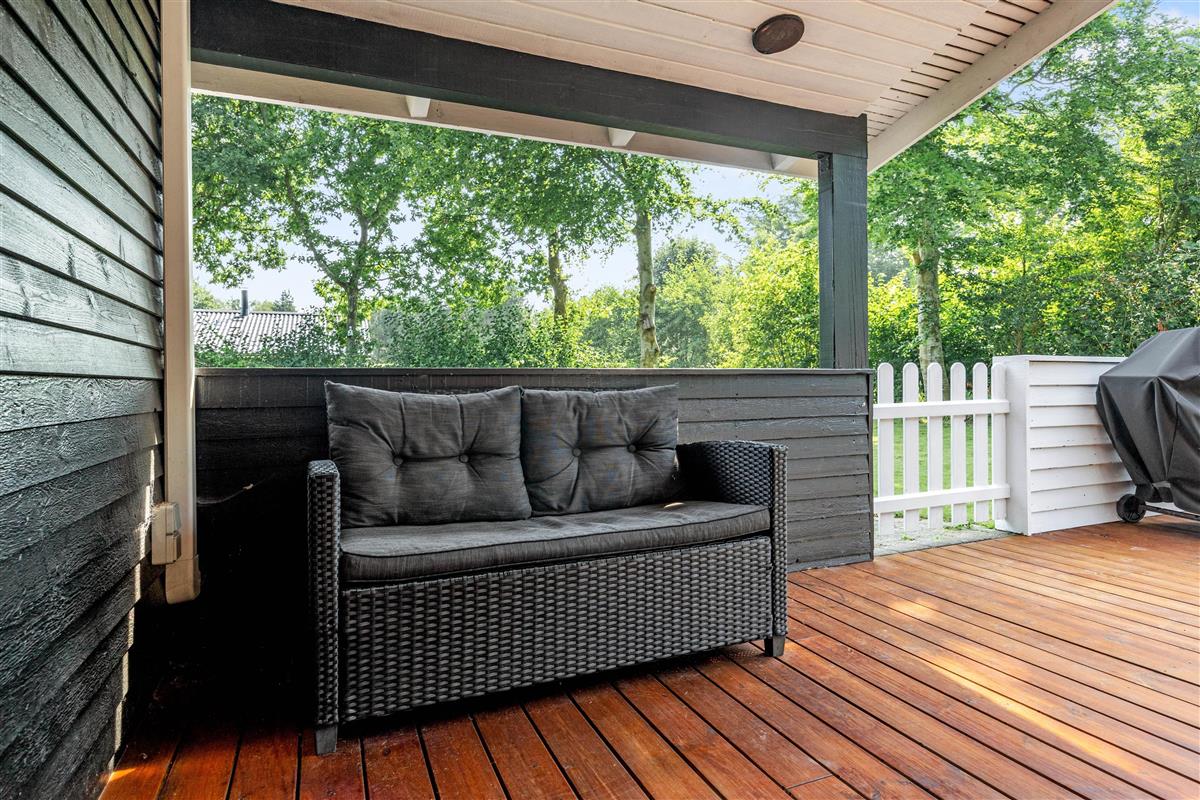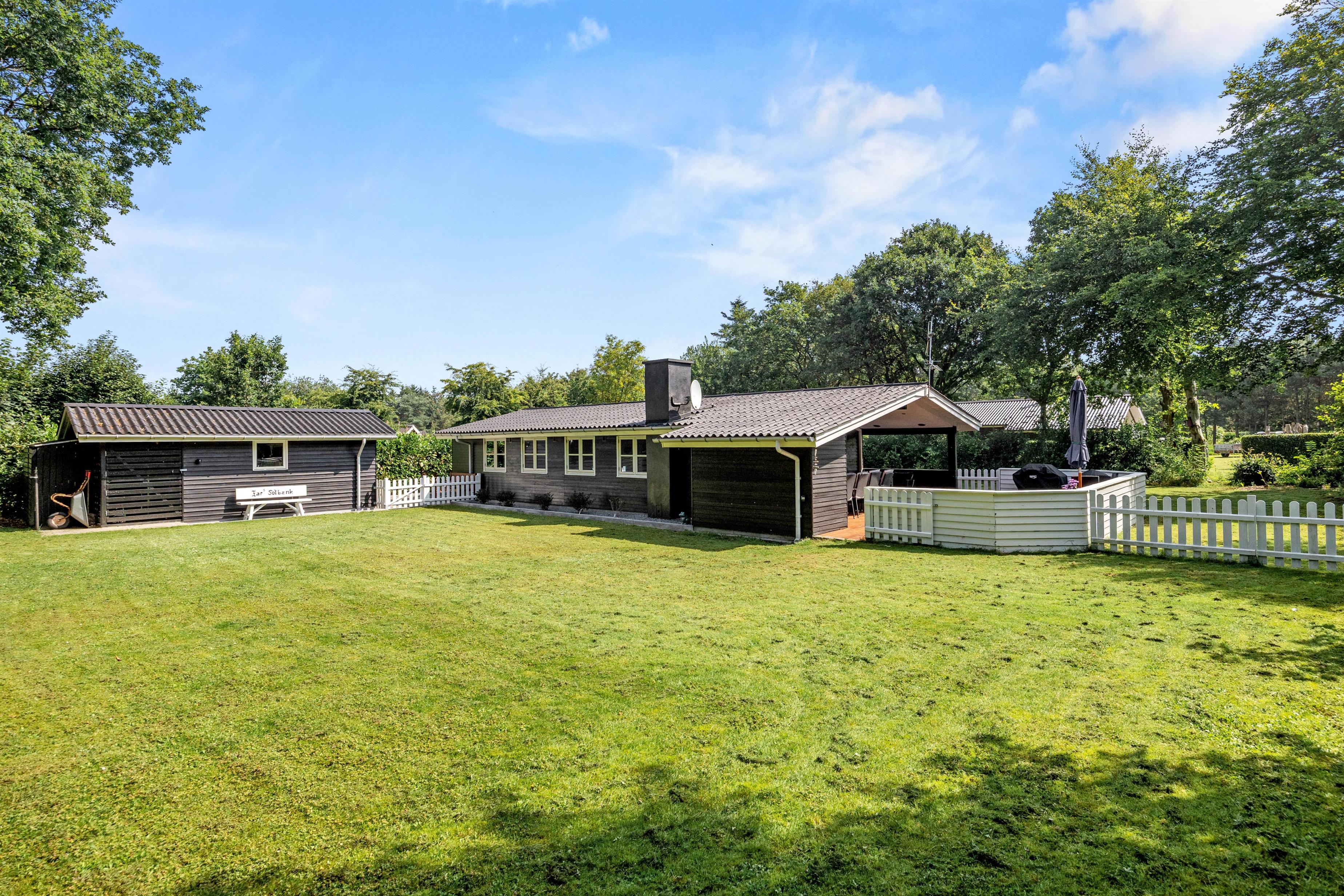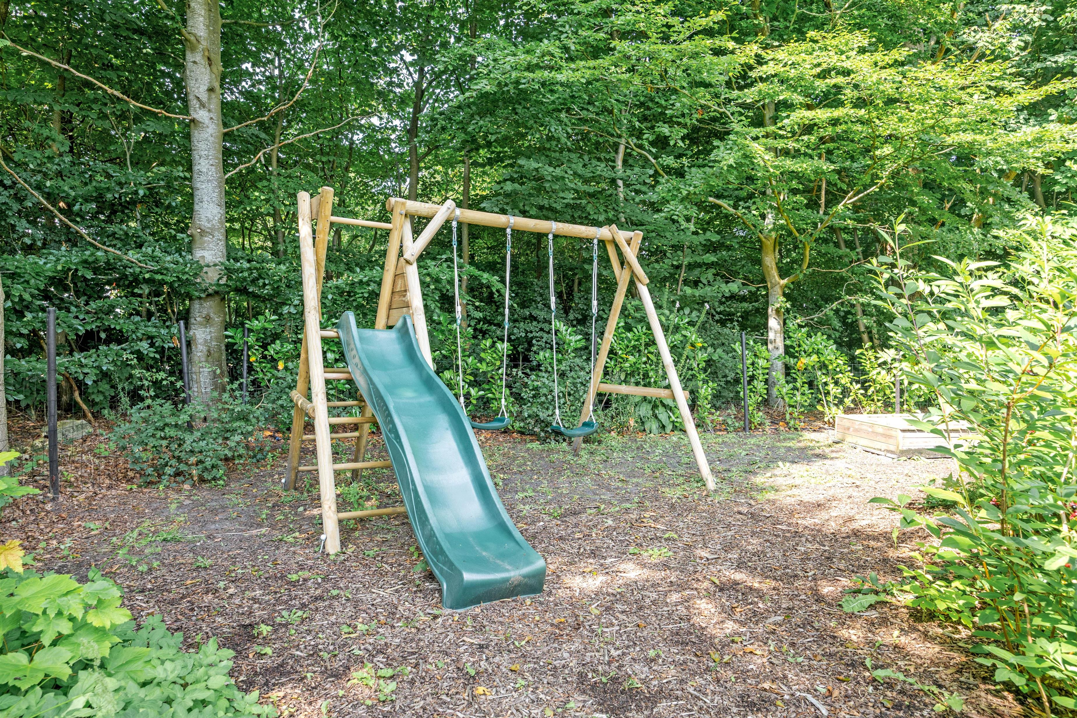 For younger guests, there's a sandbox and a swing. While the children play, you can relax on one of the terraces. The holiday home at Nordskrænten 74 features a sheltered, enclosed and covered terrace, providing a cosy and protected spot to enjoy nature in any season. A barbecue is also available for preparing delicious outdoor meals and enjoying mild evenings under the open sky.