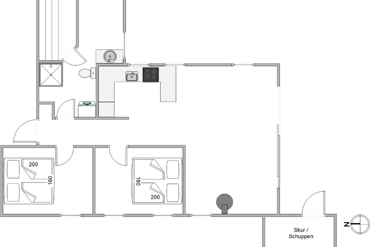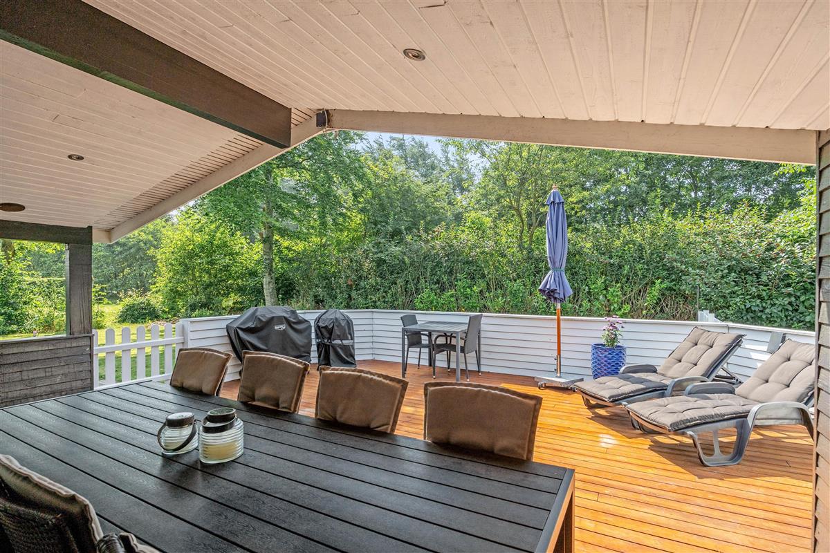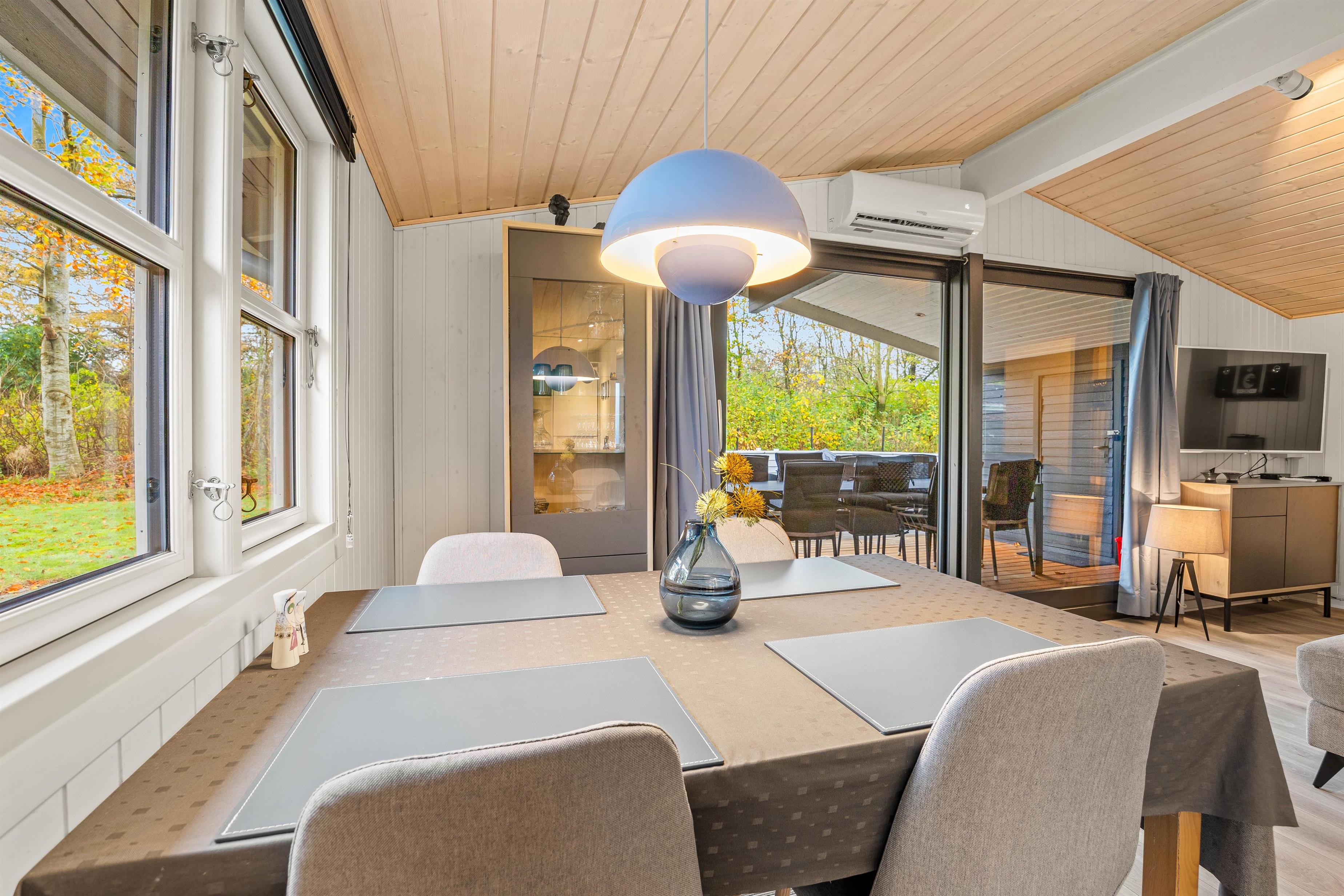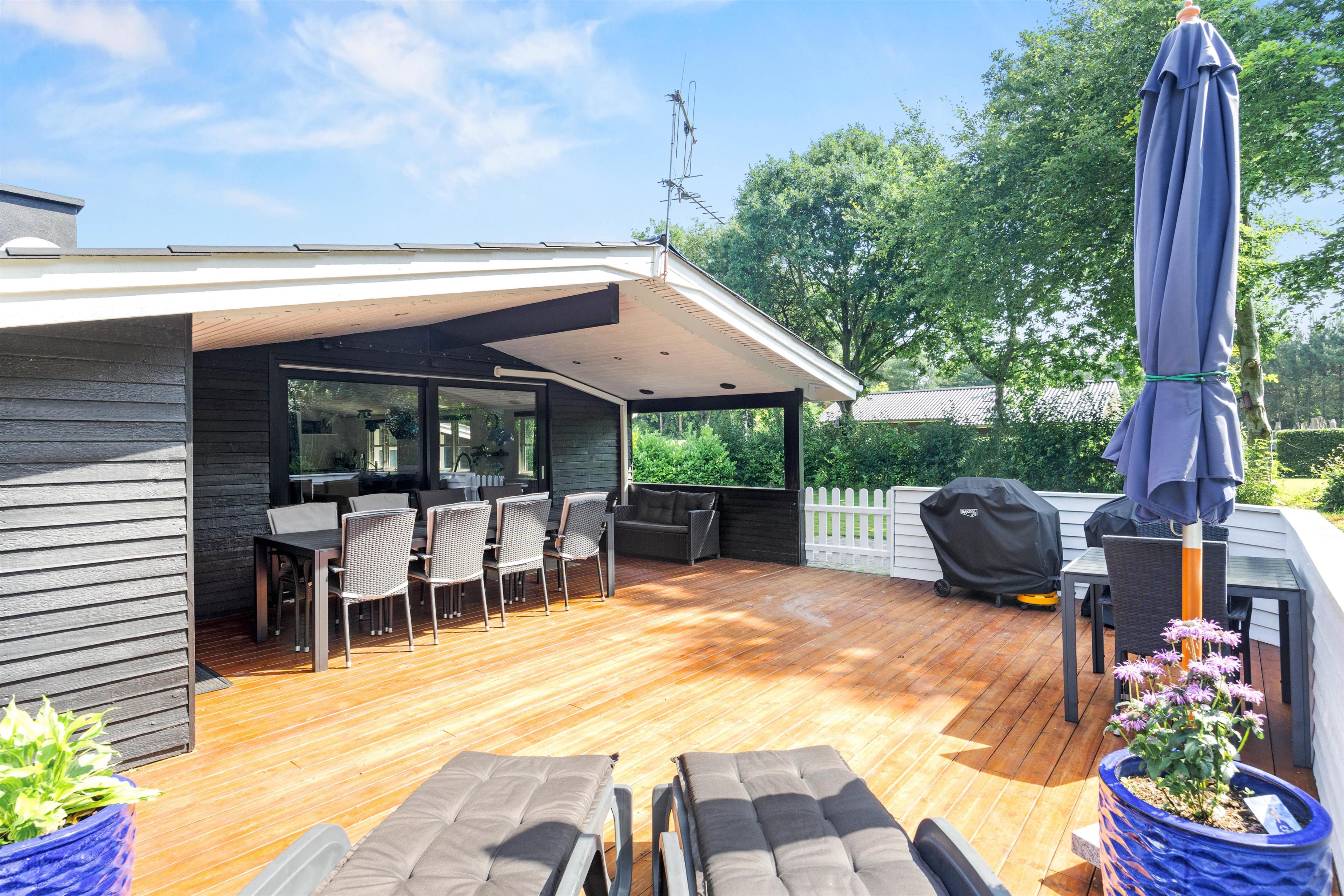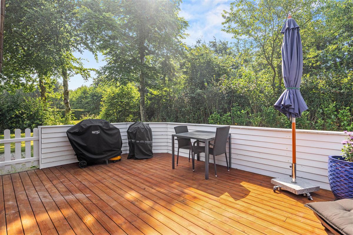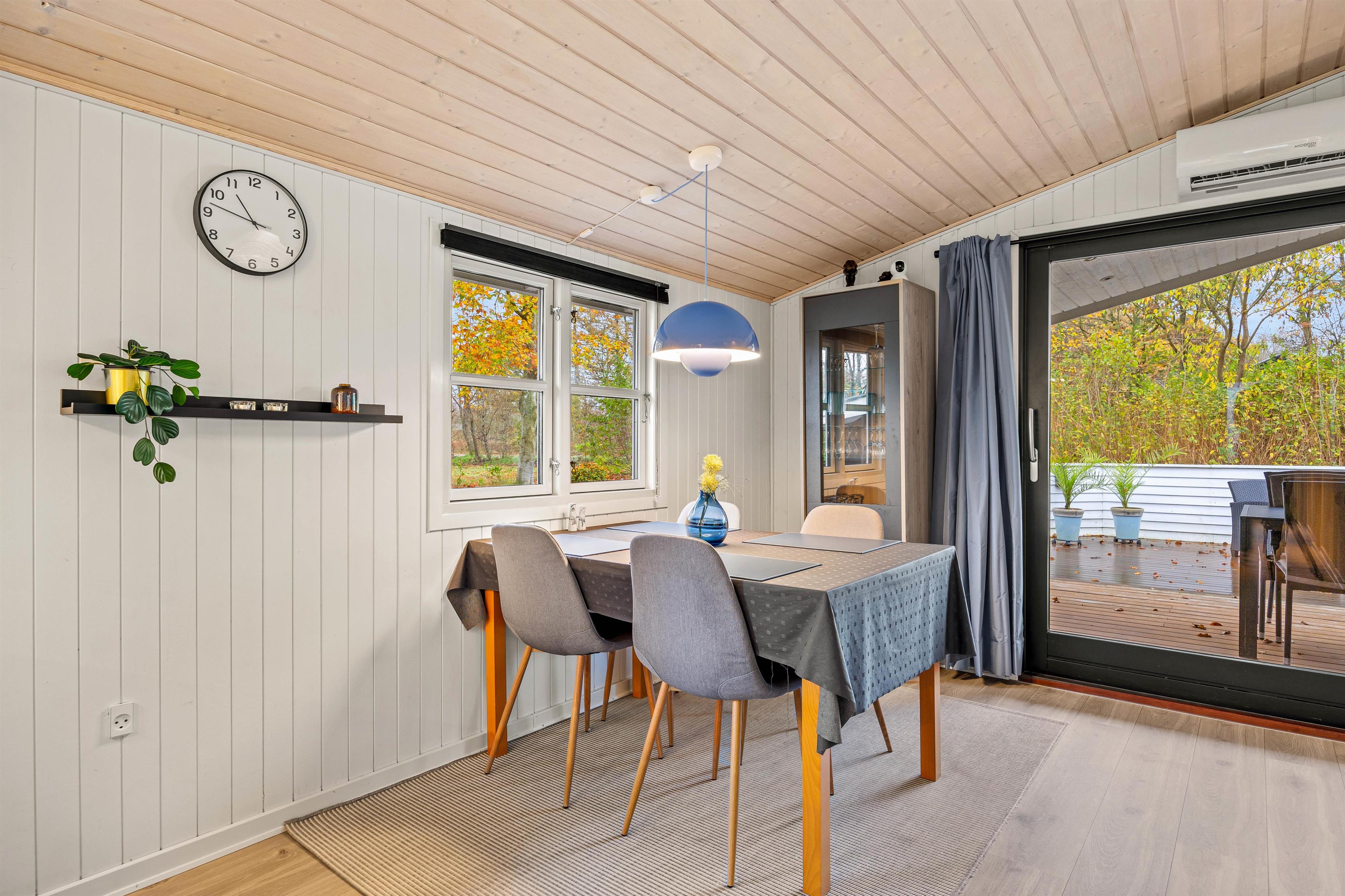 For younger guests, there's a sandbox and a swing. While the children play, you can relax on one of the terraces. The holiday home at Nordskrænten 74 features a sheltered, enclosed and covered terrace, providing a cosy and protected spot to enjoy nature in any season. A barbecue is also available for preparing delicious outdoor meals and enjoying mild evenings under the open sky.