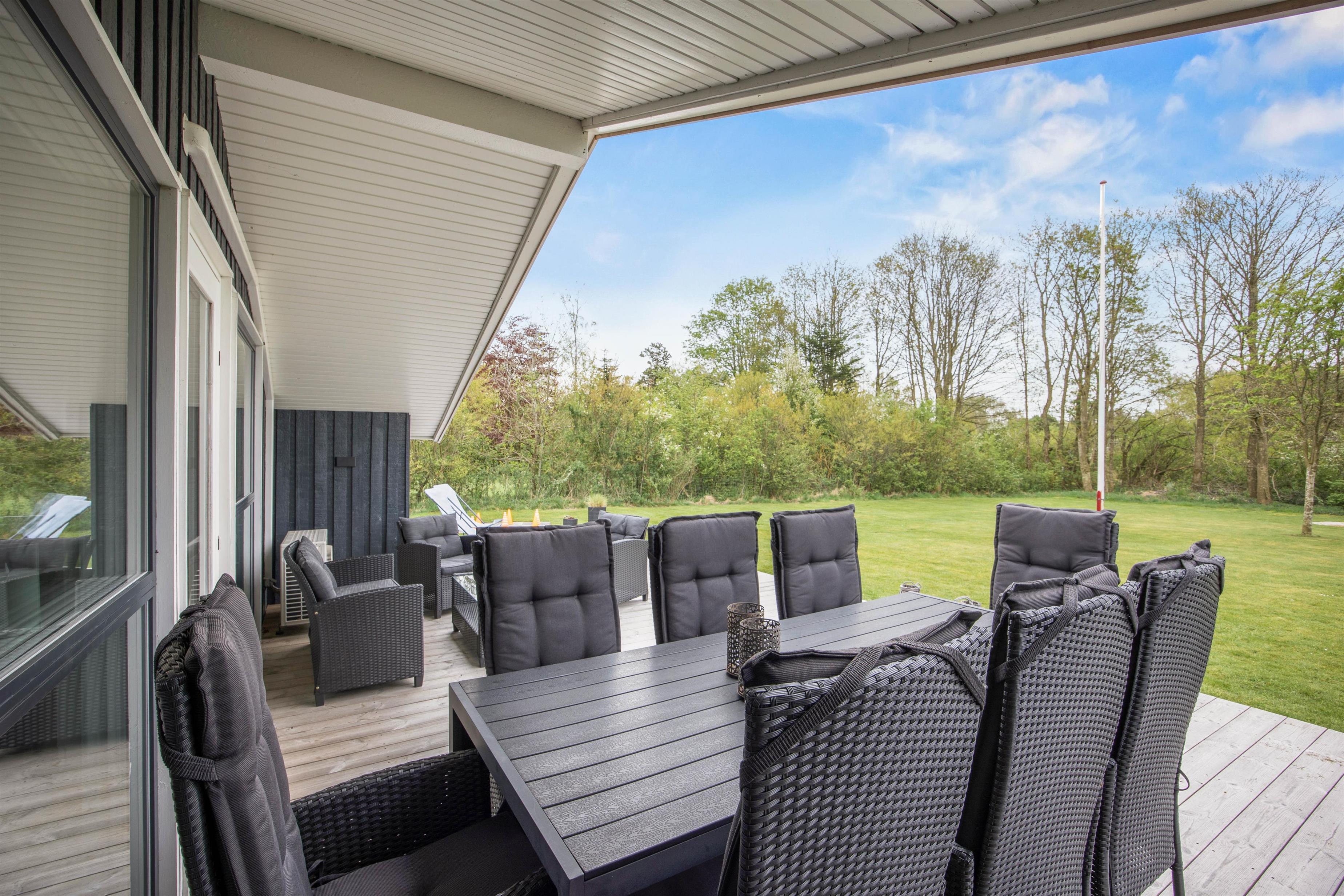 The holiday home's various terraces are perfect for sociable gatherings. The open terrace allows you to fully enjoy the sunshine, while the screened terrace provides a sheltered area away from the wind. The covered terrace enables outdoor time even during light rain or intense sunshine. A barbecue is also available for evening cookouts. Here you can end your day with a shared meal under the evening sky.