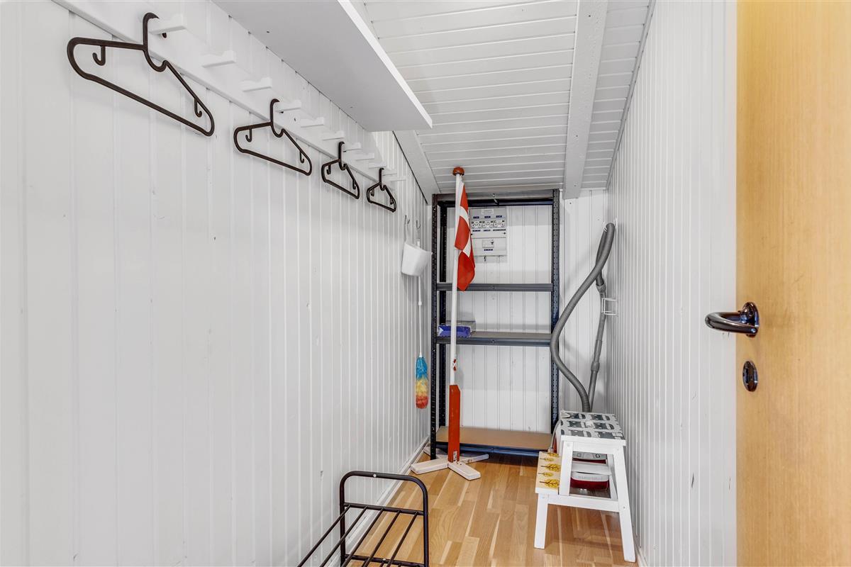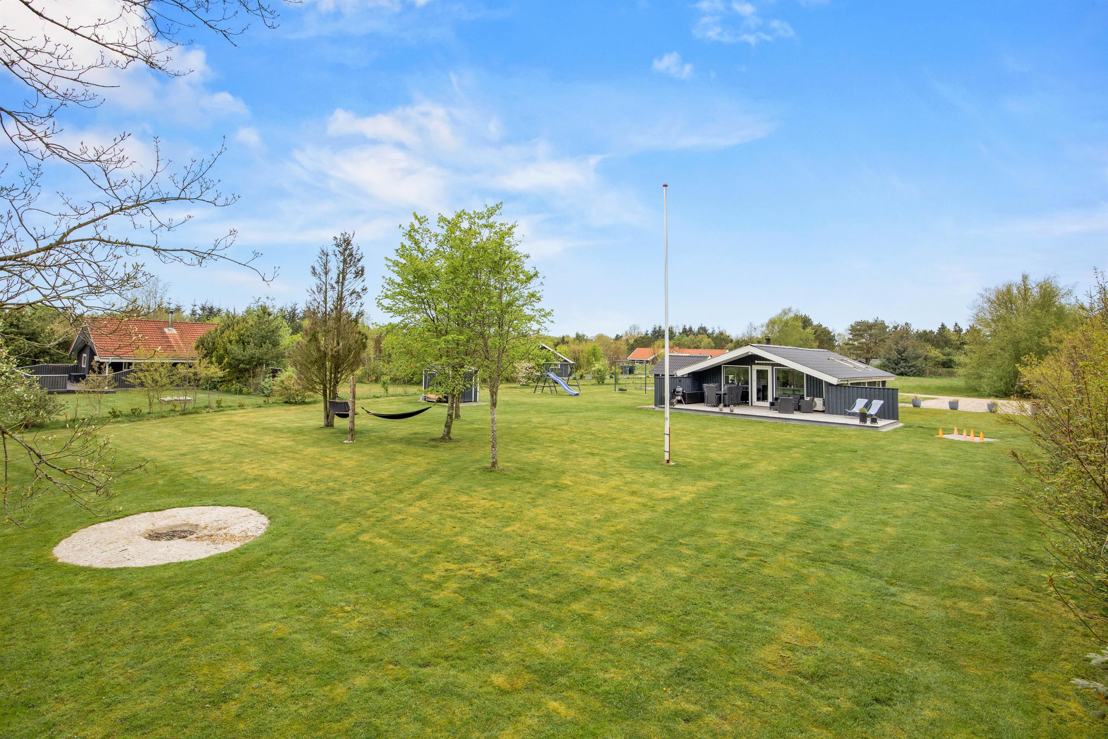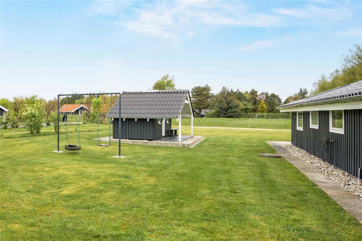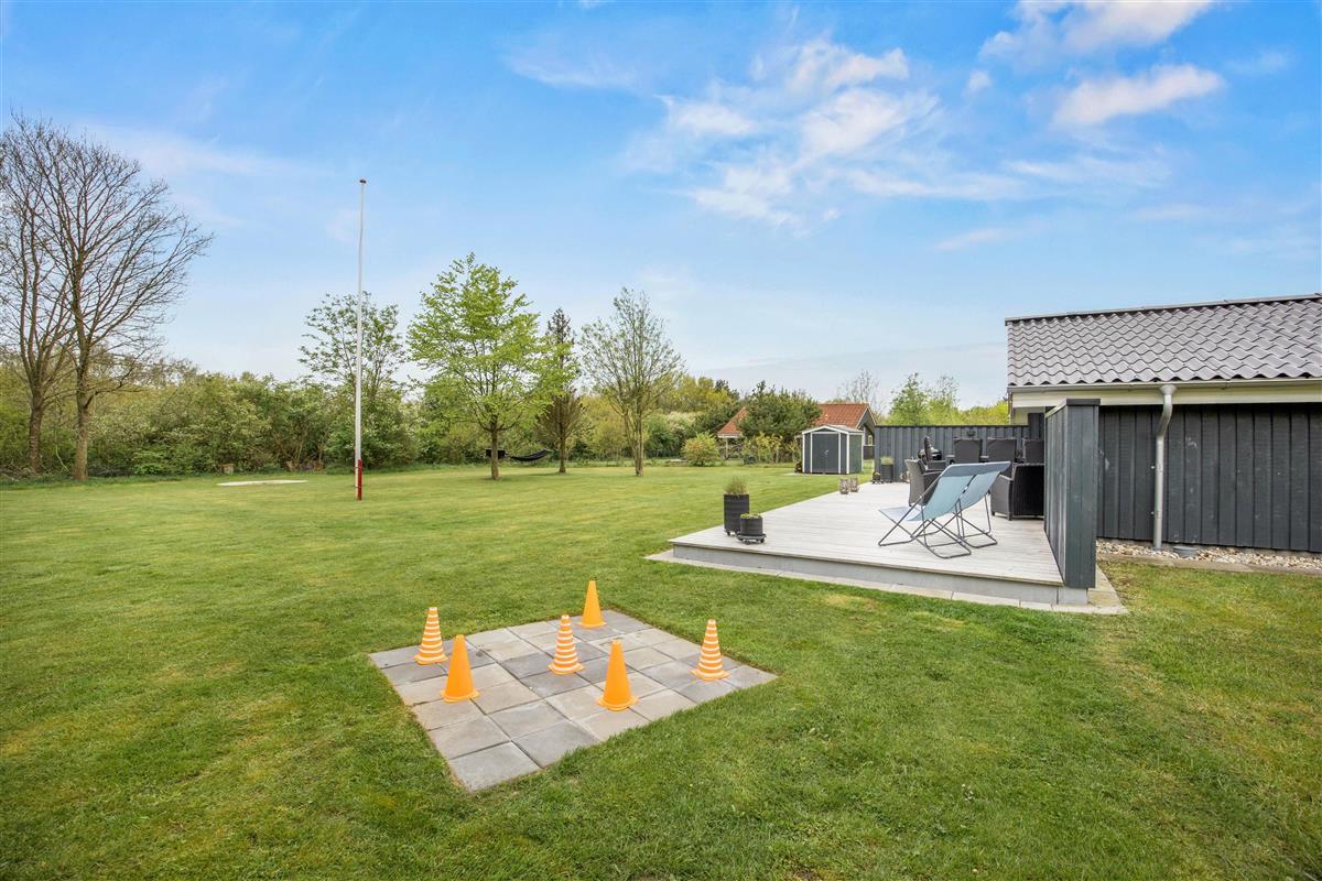 The outdoor area at Blomstervangen 45 is designed for both relaxation and outdoor entertainment. The large lawn invites various activities and peaceful moments in the open air. Children will find plenty of space to play and run around, with a swing set providing additional fun and variety.