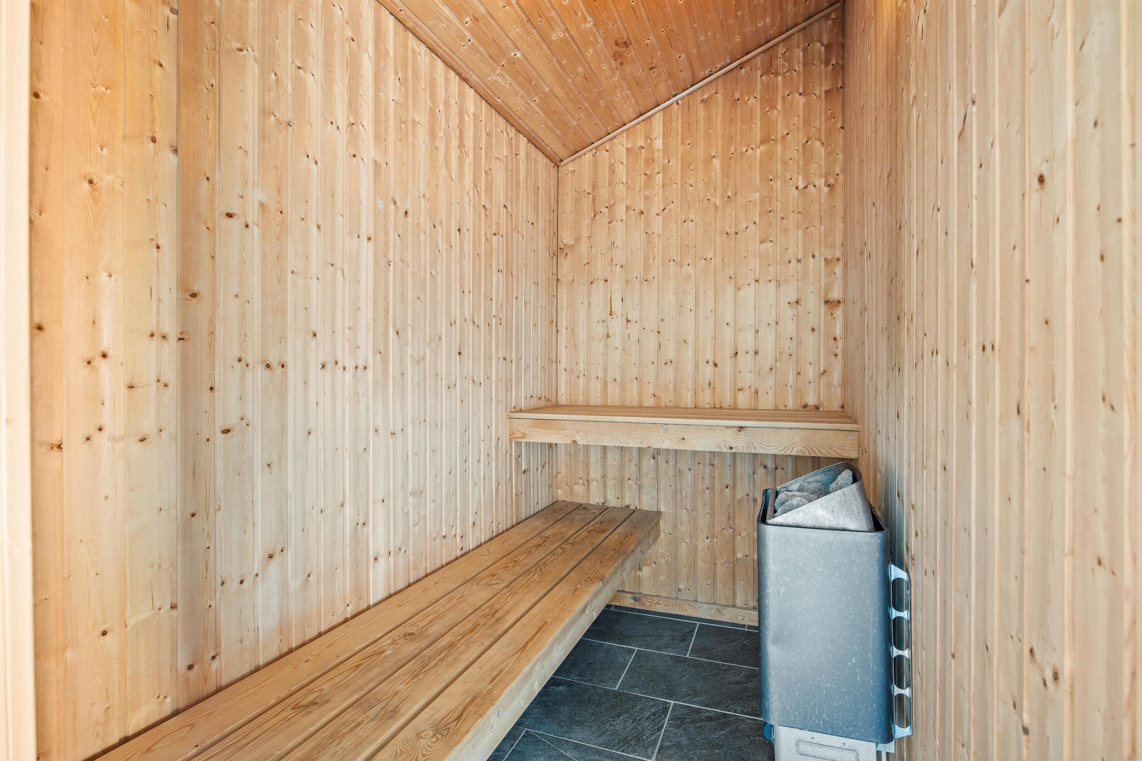 The 16-square-metre pool is certainly a highlight of the holiday home and is heated by an air-to-water heat pump, maintaining a pleasant temperature of 28-30°C (82-86°F) while being energy efficient to keep costs down. After a long day at the beach or a nature walk, the sauna is the ideal place to rejuvenate body and mind.