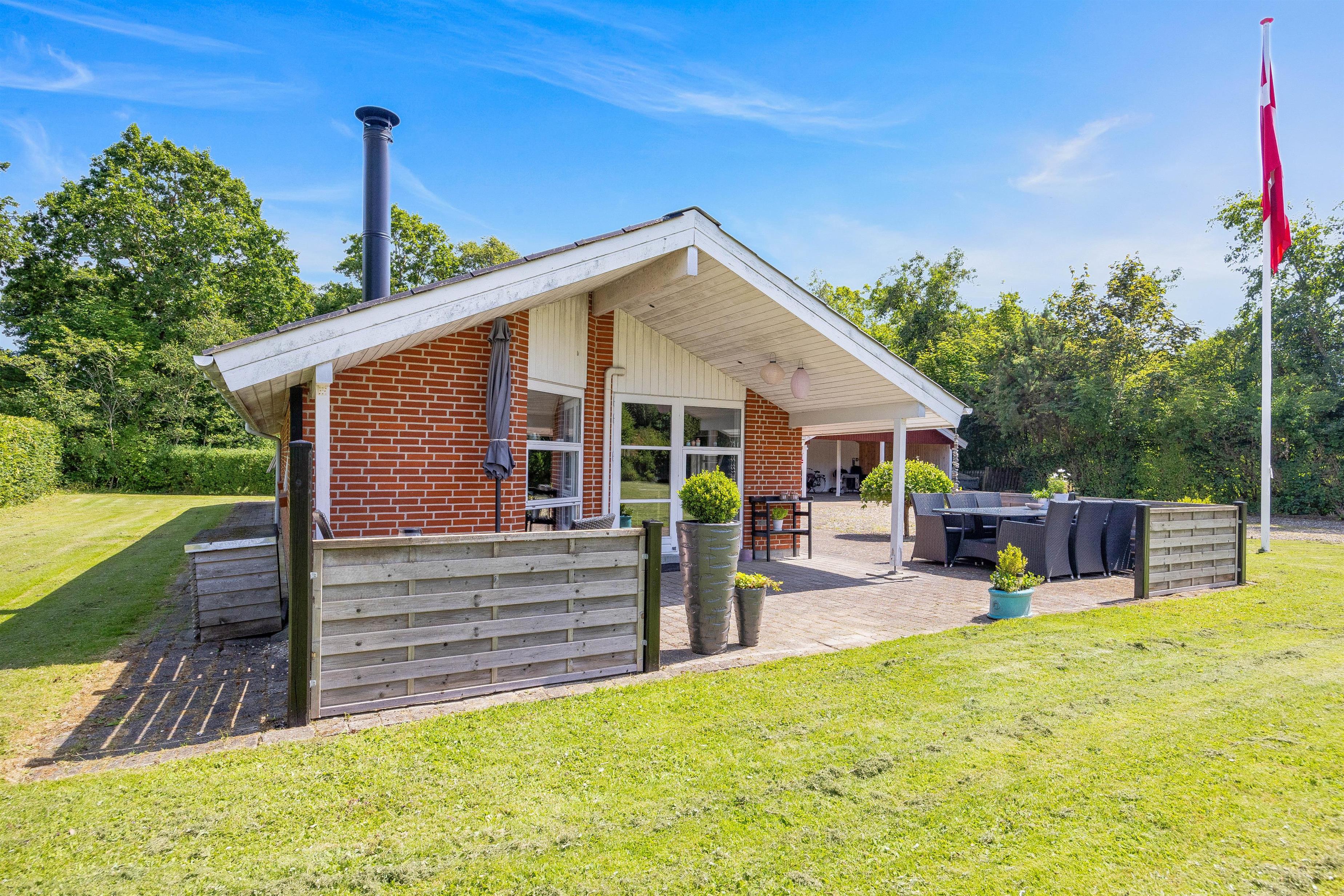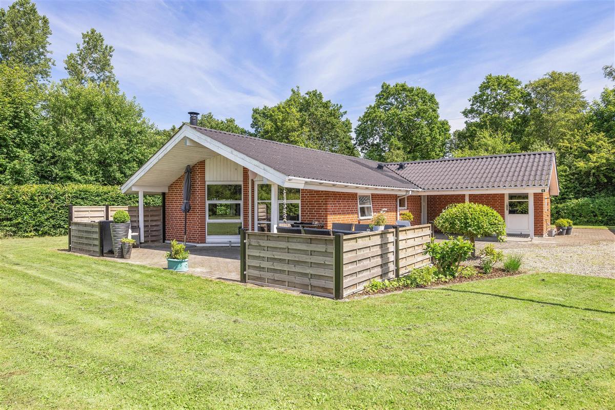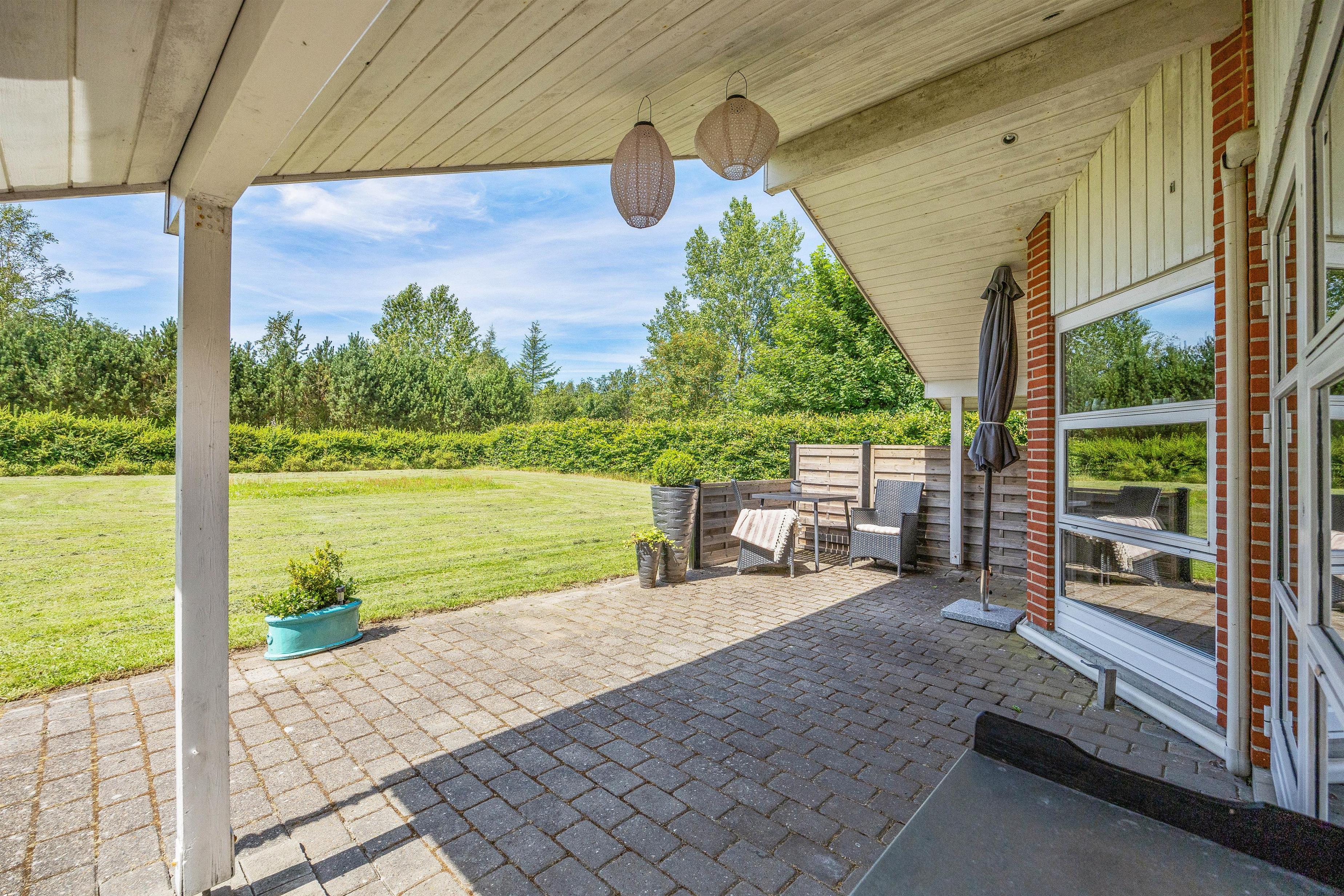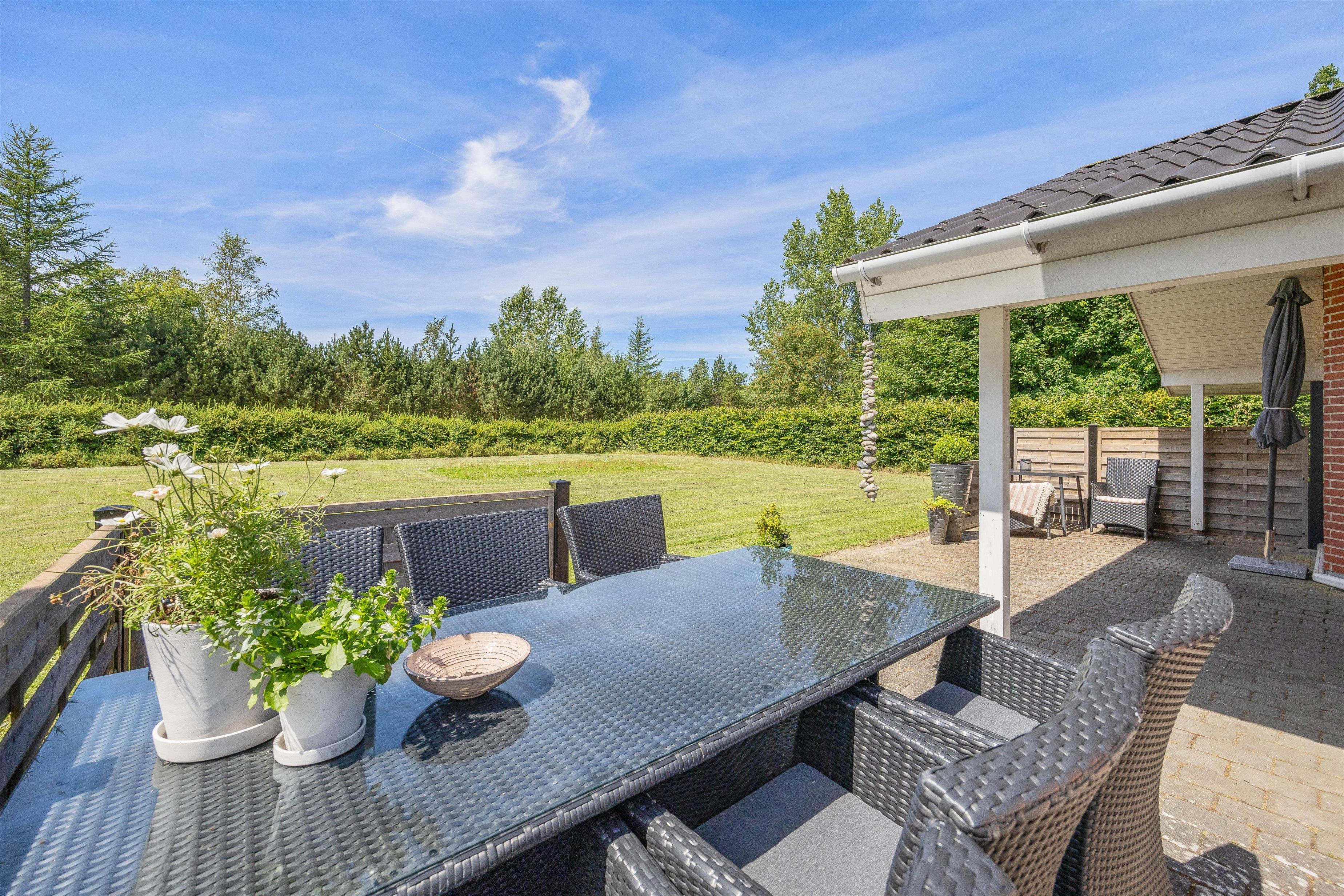 The spacious lawn surrounding your holiday home is ideal for families, providing the perfect setting for relaxing days outdoors. Fyrrelunden 4 features three different terraces: open, screened, and covered, allowing you to enjoy nature in any weather. Sun-seekers can soak up the rays on the open terrace, while the screened terrace offers privacy. The covered terrace is perfect for rainy days or when seeking shade from the sun.