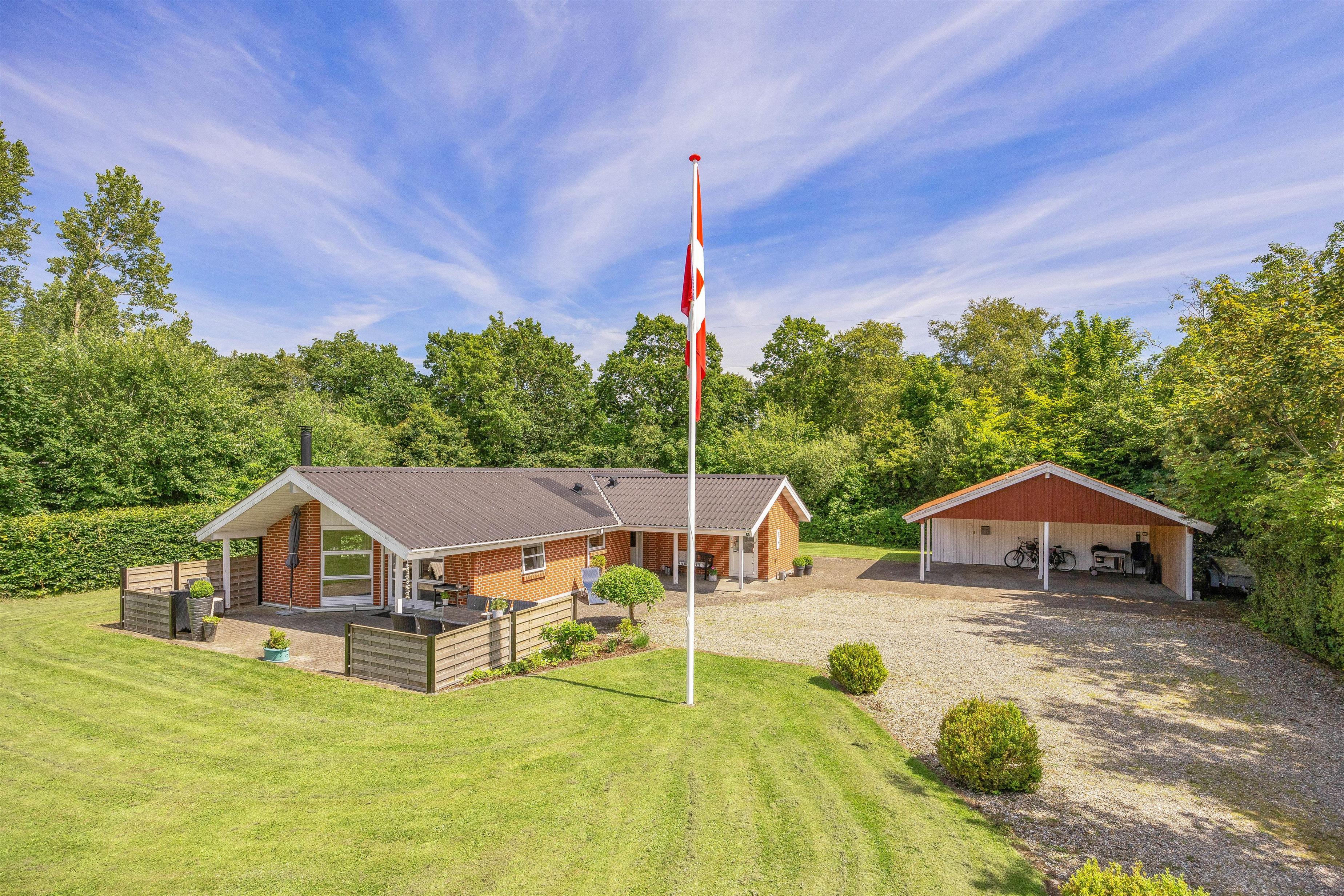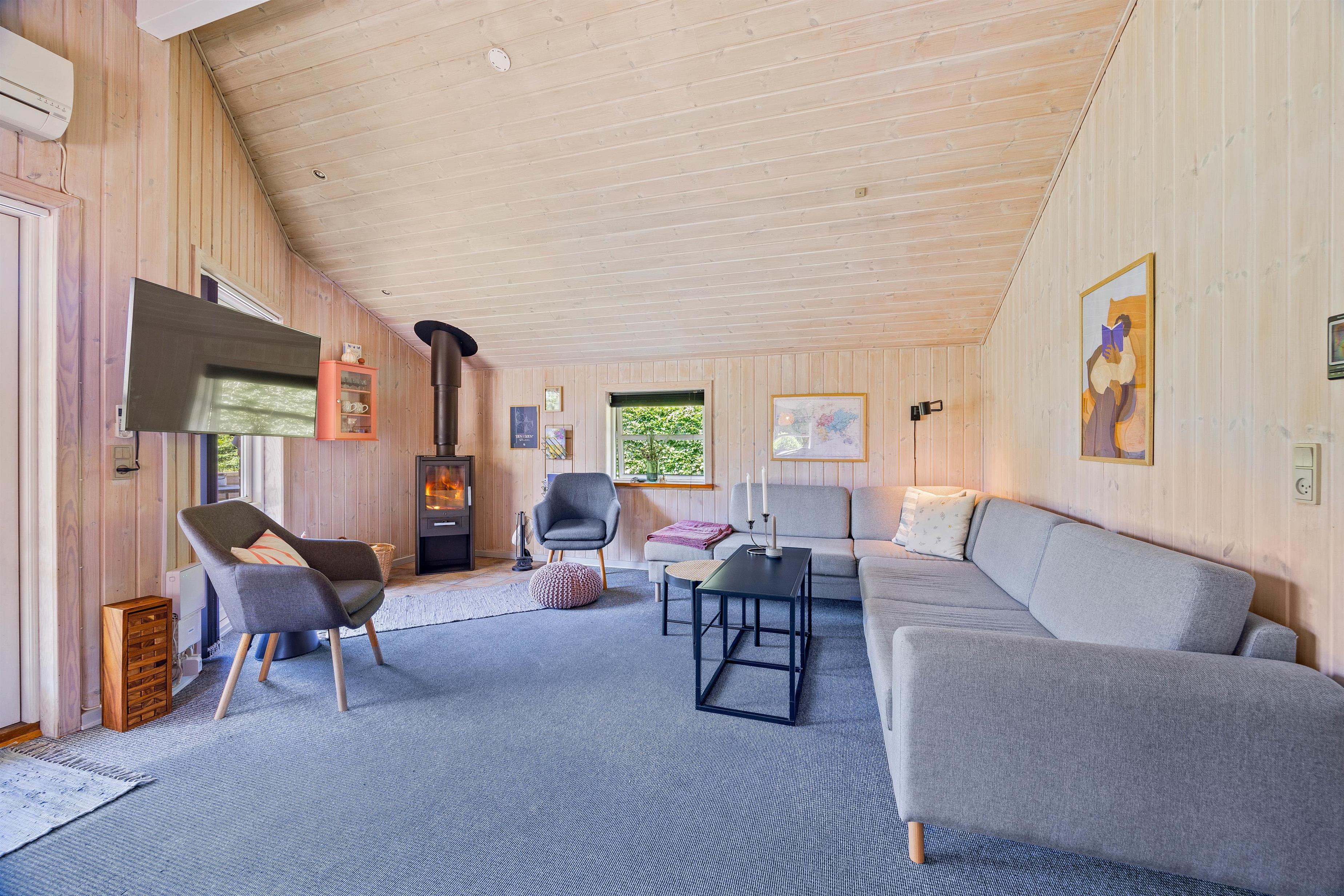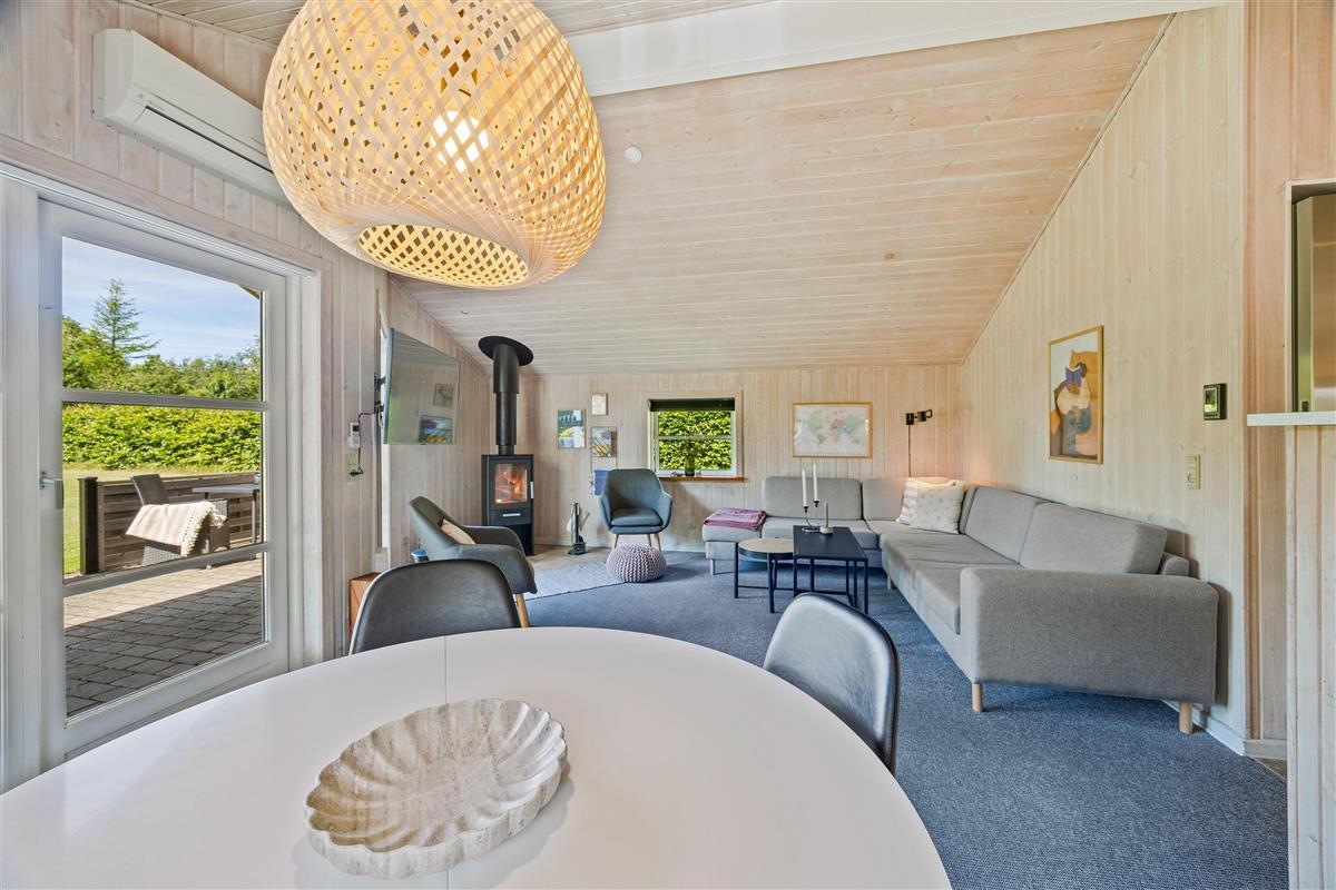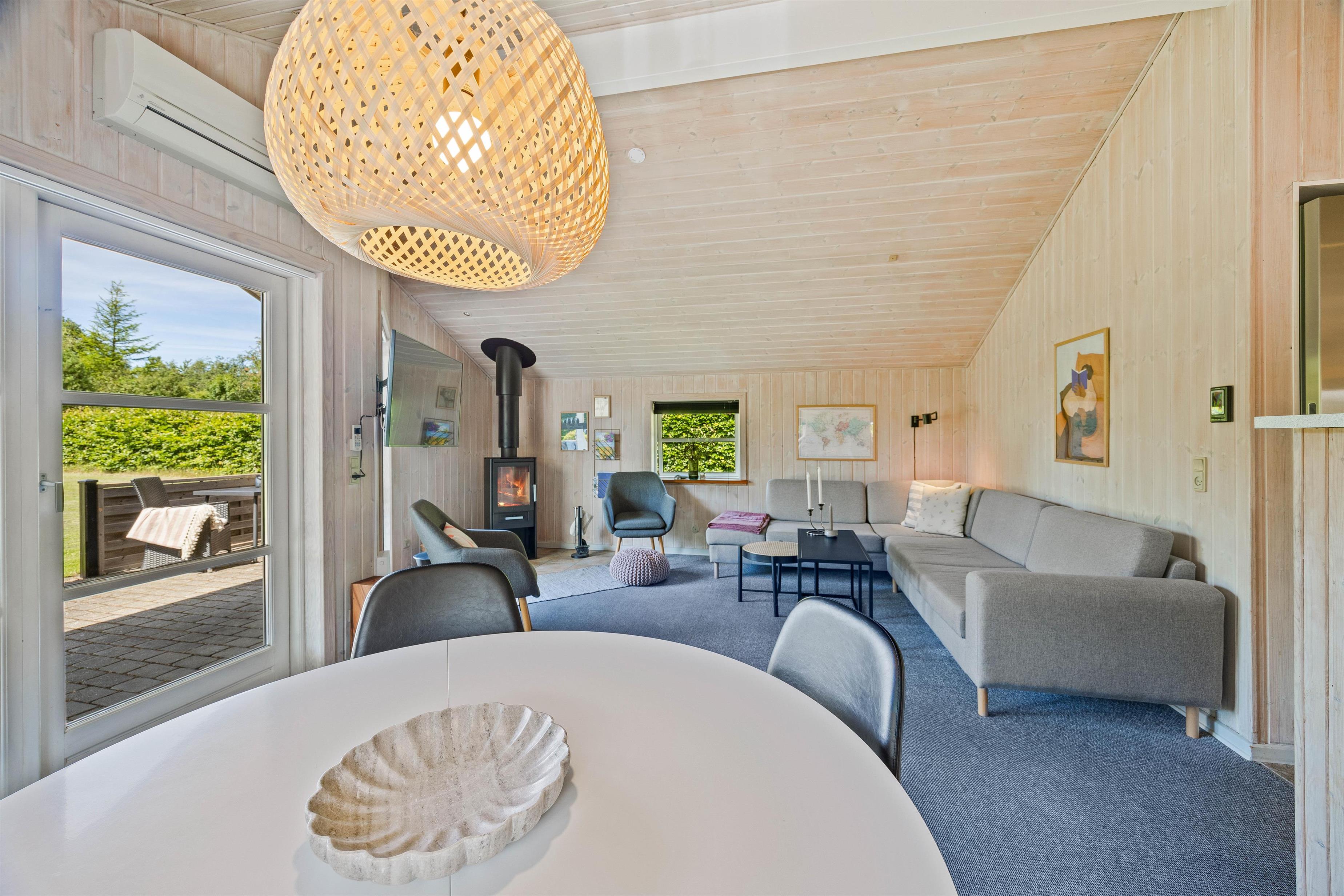 The spacious lawn surrounding your holiday home is ideal for families, providing the perfect setting for relaxing days outdoors. Fyrrelunden 4 features three different terraces: open, screened, and covered, allowing you to enjoy nature in any weather. Sun-seekers can soak up the rays on the open terrace, while the screened terrace offers privacy. The covered terrace is perfect for rainy days or when seeking shade from the sun.