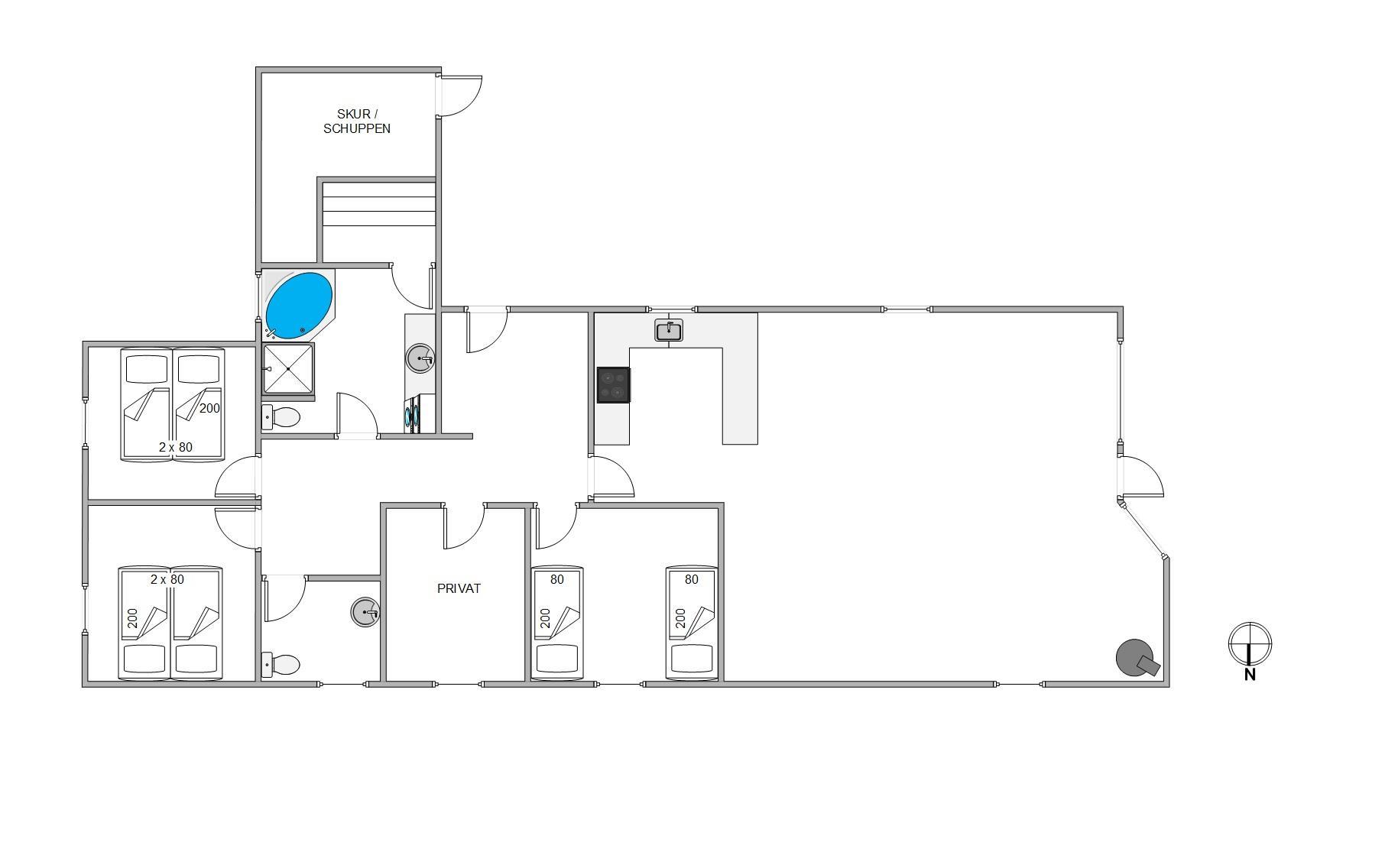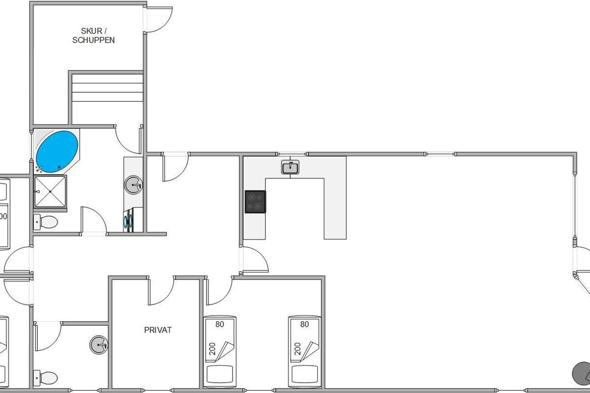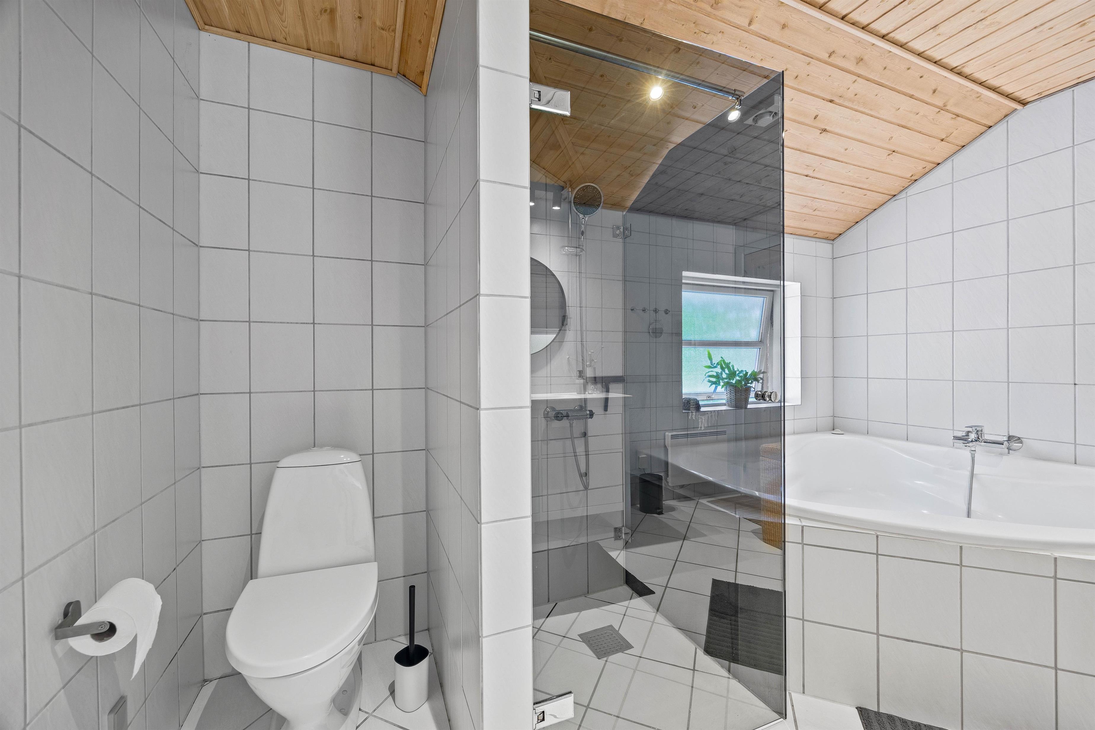 The holiday home offers three bedrooms in total, with two featuring double beds and the third equipped with twin beds. The bathroom benefits from underfloor heating for added comfort, while the whirlpool provides the perfect relaxation after an eventful day. An additional guest toilet offers extra convenience, particularly beneficial when the holiday home is fully occupied.