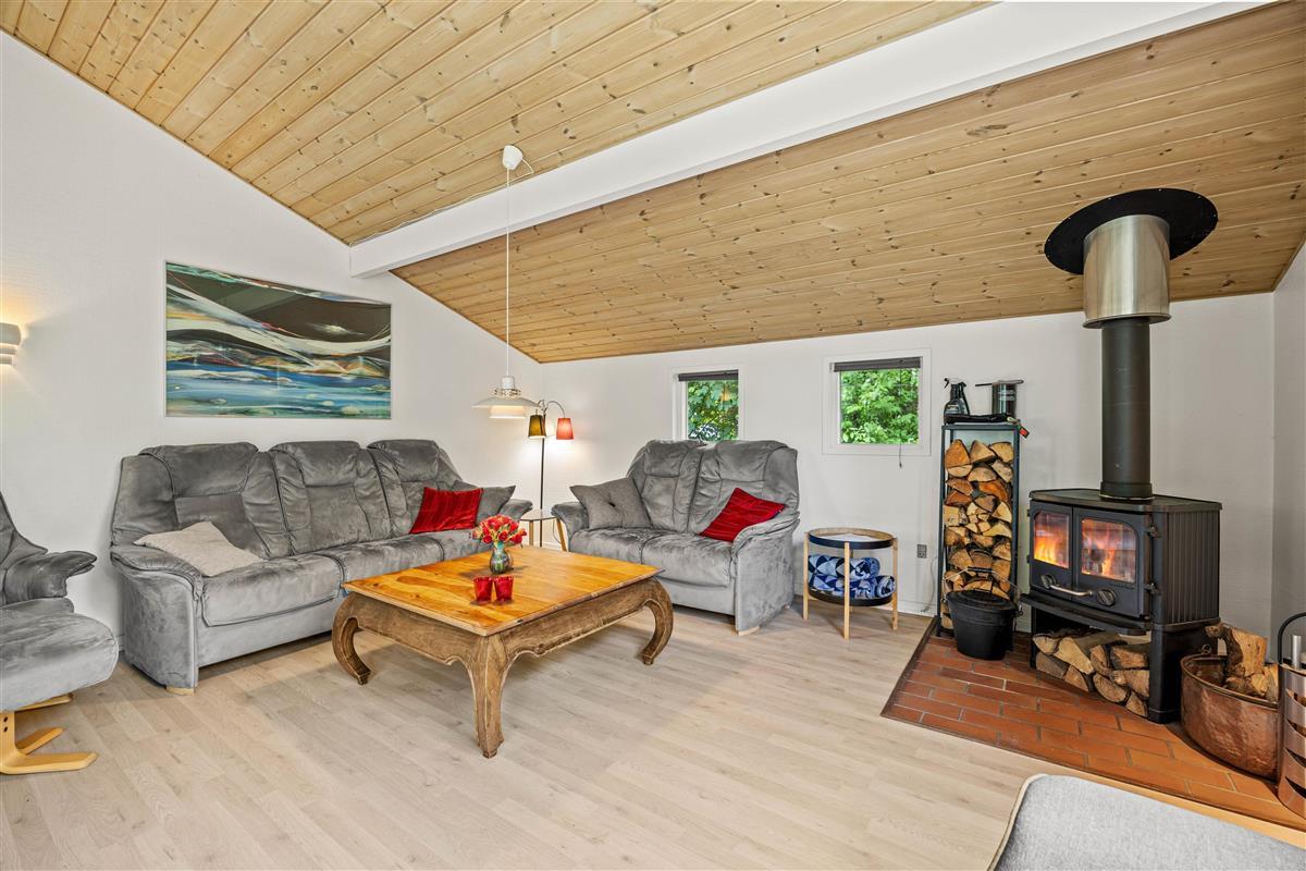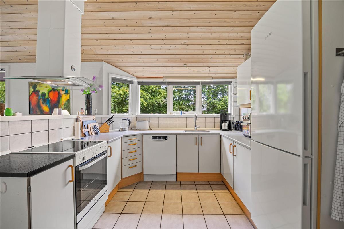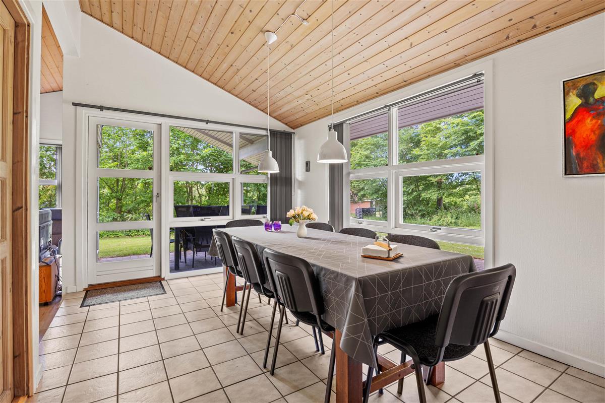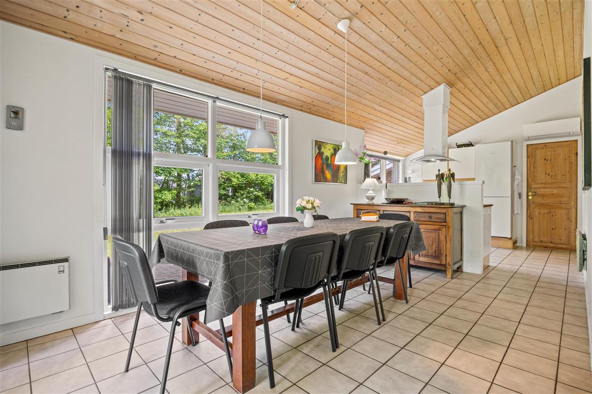 The open-plan living area at Sydskrænten 29 is bright and welcoming, with a wood-burning stove creating an especially cosy atmosphere. Perfect for relaxing on cool evenings or enjoying social time with friends and family. Thanks to a satellite dish and Google Chromecast, you can stream your favourite series and films during your stay. The modern kitchen leaves nothing to be desired, with everything cooking enthusiasts need, including a practical dishwasher to make daily life easier and an air fryer. The adjacent dining area invites you to enjoy meals together and spend quality time with one another.