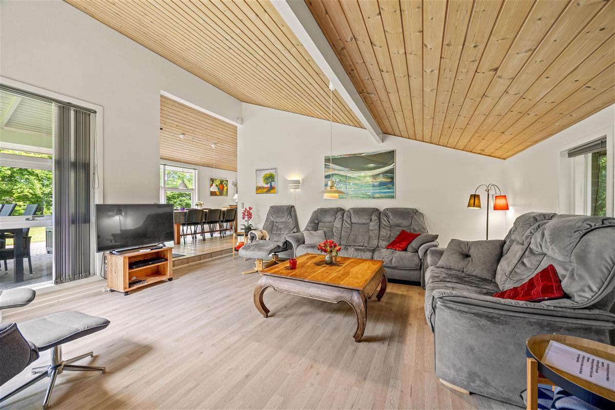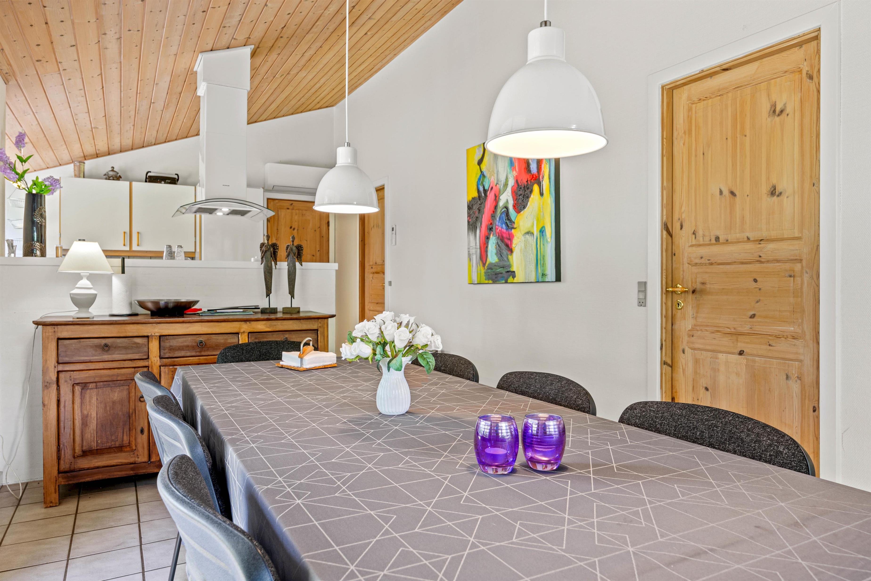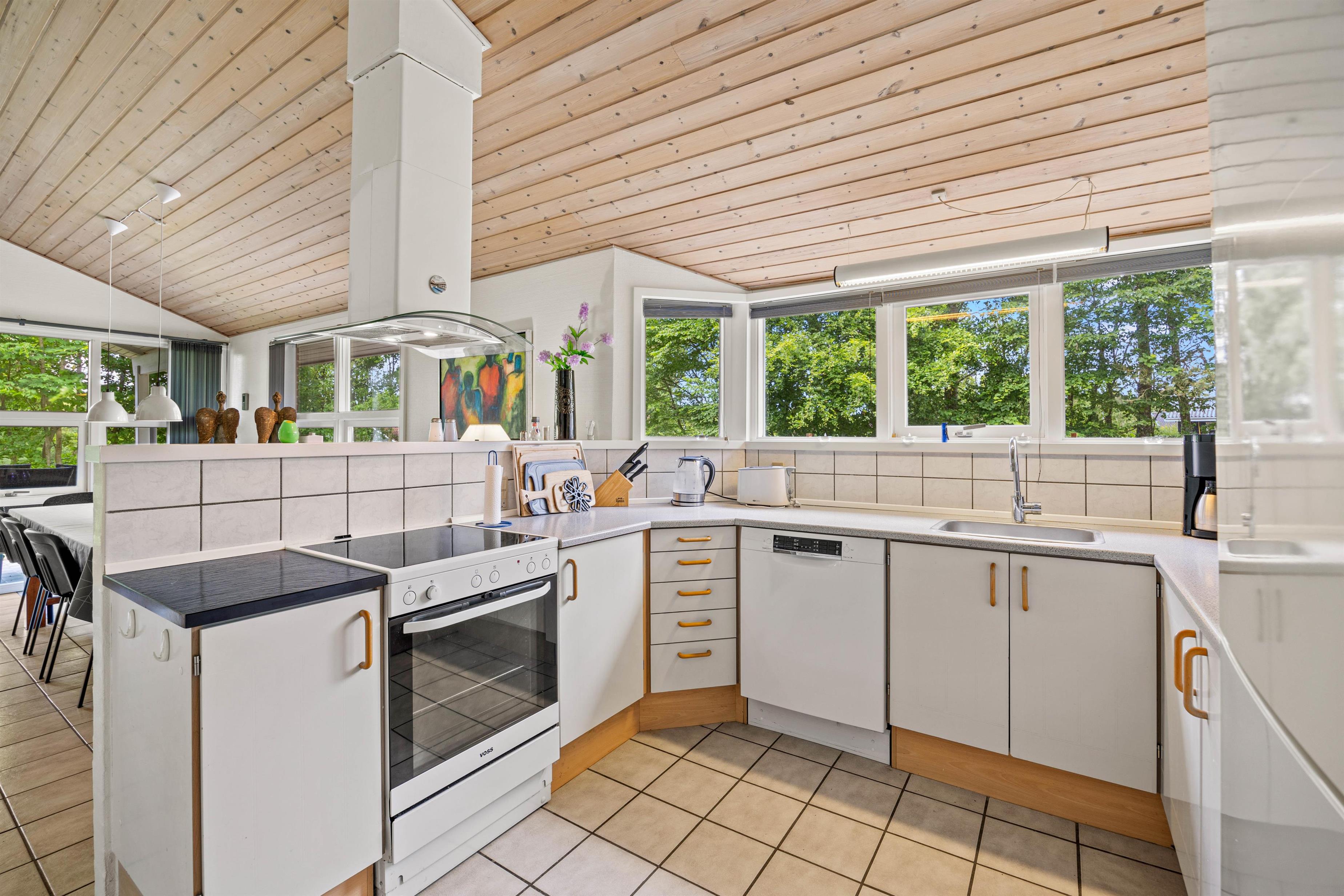 The open-plan living area at Sydskrænten 29 is bright and welcoming, with a wood-burning stove creating an especially cosy atmosphere. Perfect for relaxing on cool evenings or enjoying social time with friends and family. Thanks to a satellite dish and Google Chromecast, you can stream your favourite series and films during your stay. The modern kitchen leaves nothing to be desired, with everything cooking enthusiasts need, including a practical dishwasher to make daily life easier and an air fryer. The adjacent dining area invites you to enjoy meals together and spend quality time with one another.