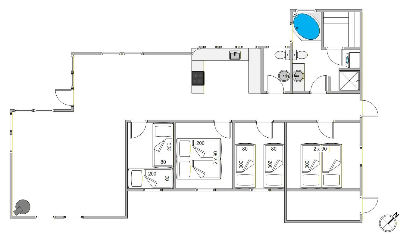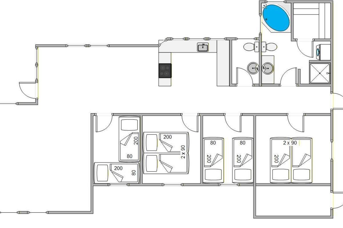 The holiday home accommodates up to 8 people. Four bedrooms ensure everyone has their own comfortable retreat. The bathroom features underfloor heating and a whirlpool for indulgence, whilst the sauna provides the perfect relaxation after an active day.