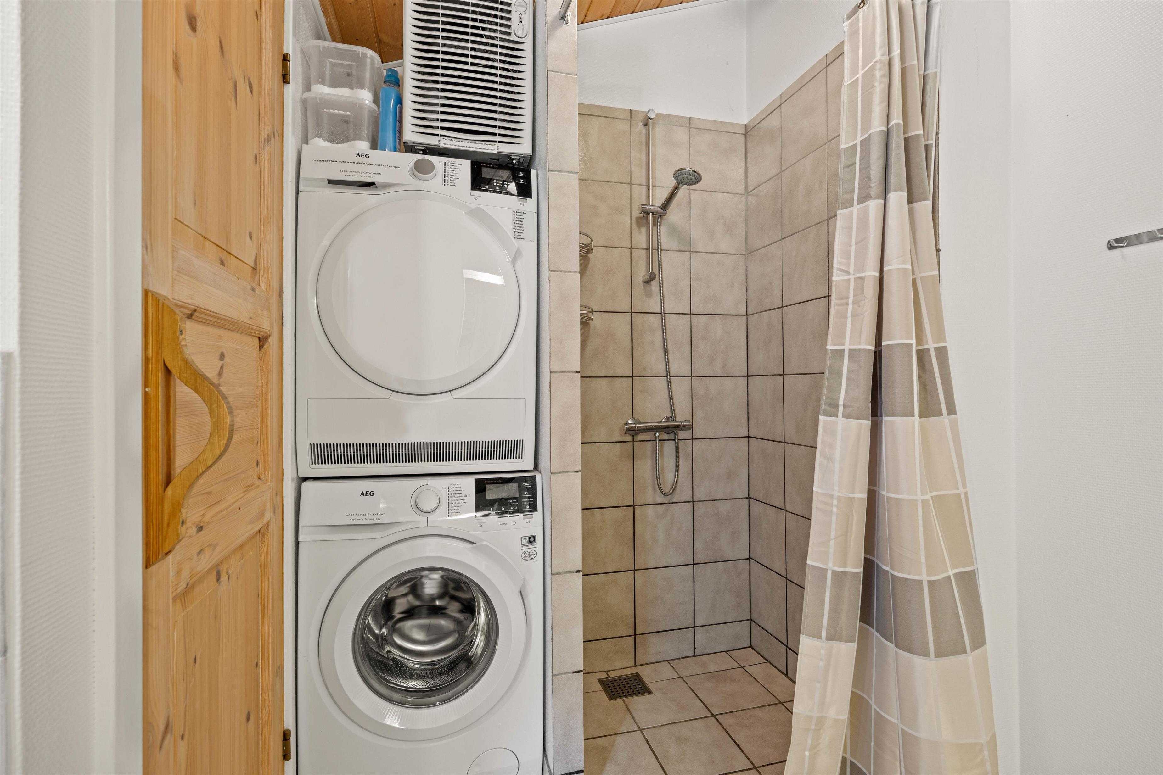 A washing machine and tumble dryer offer additional convenience. An efficient heat pump ensures the climate remains pleasant throughout the holiday home.