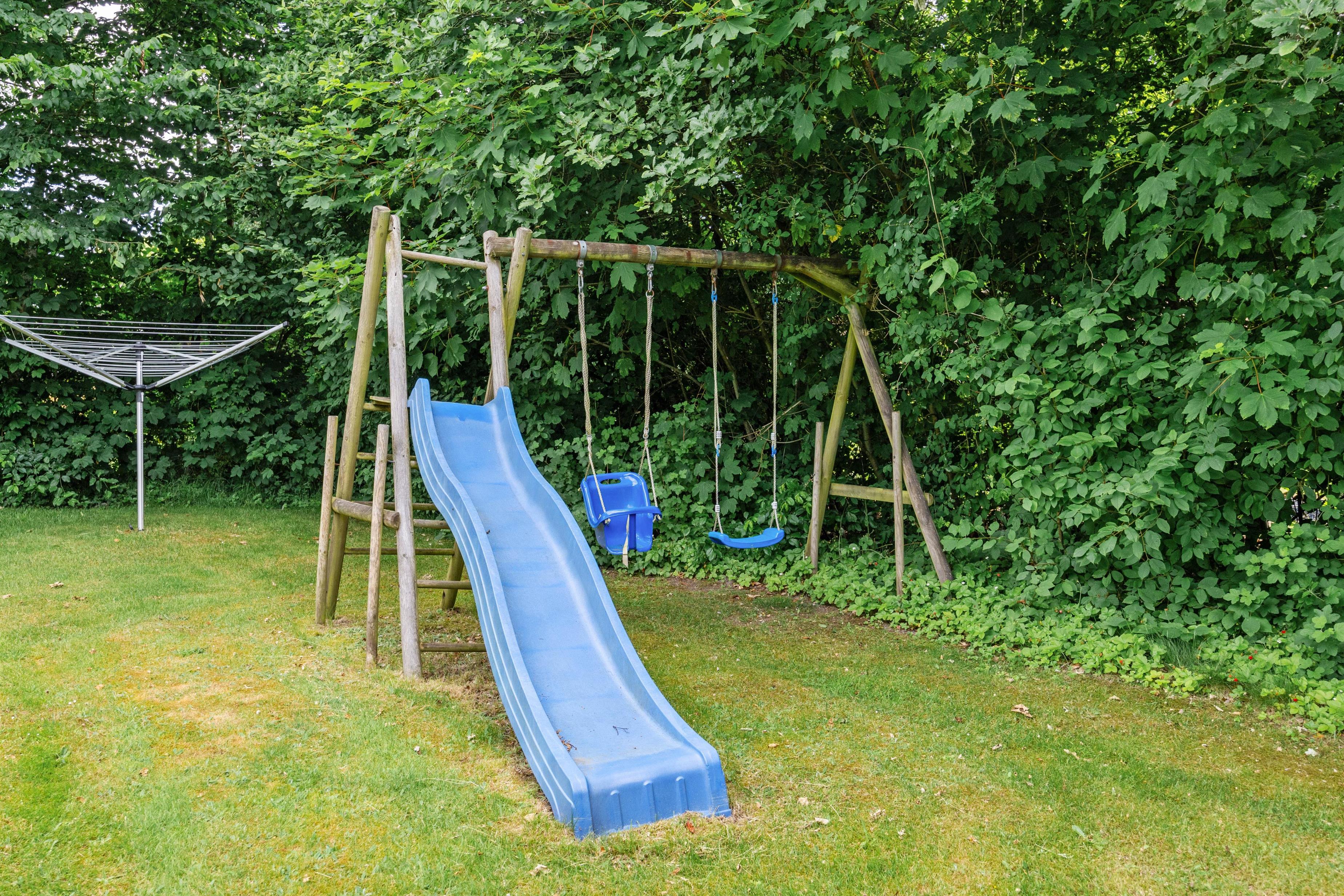 Children will enjoy the swing and sandpit, offering plenty of space for fun and games.