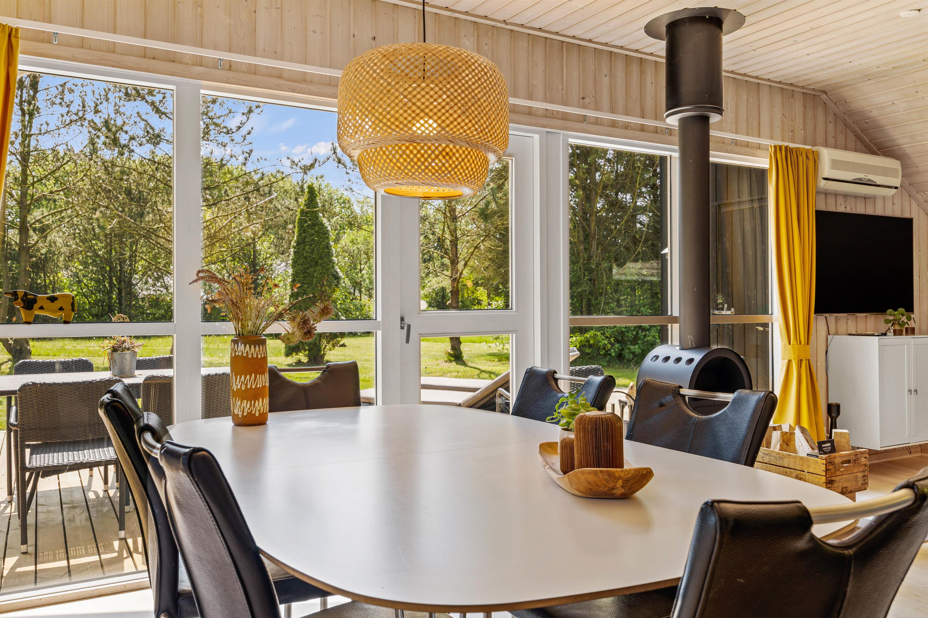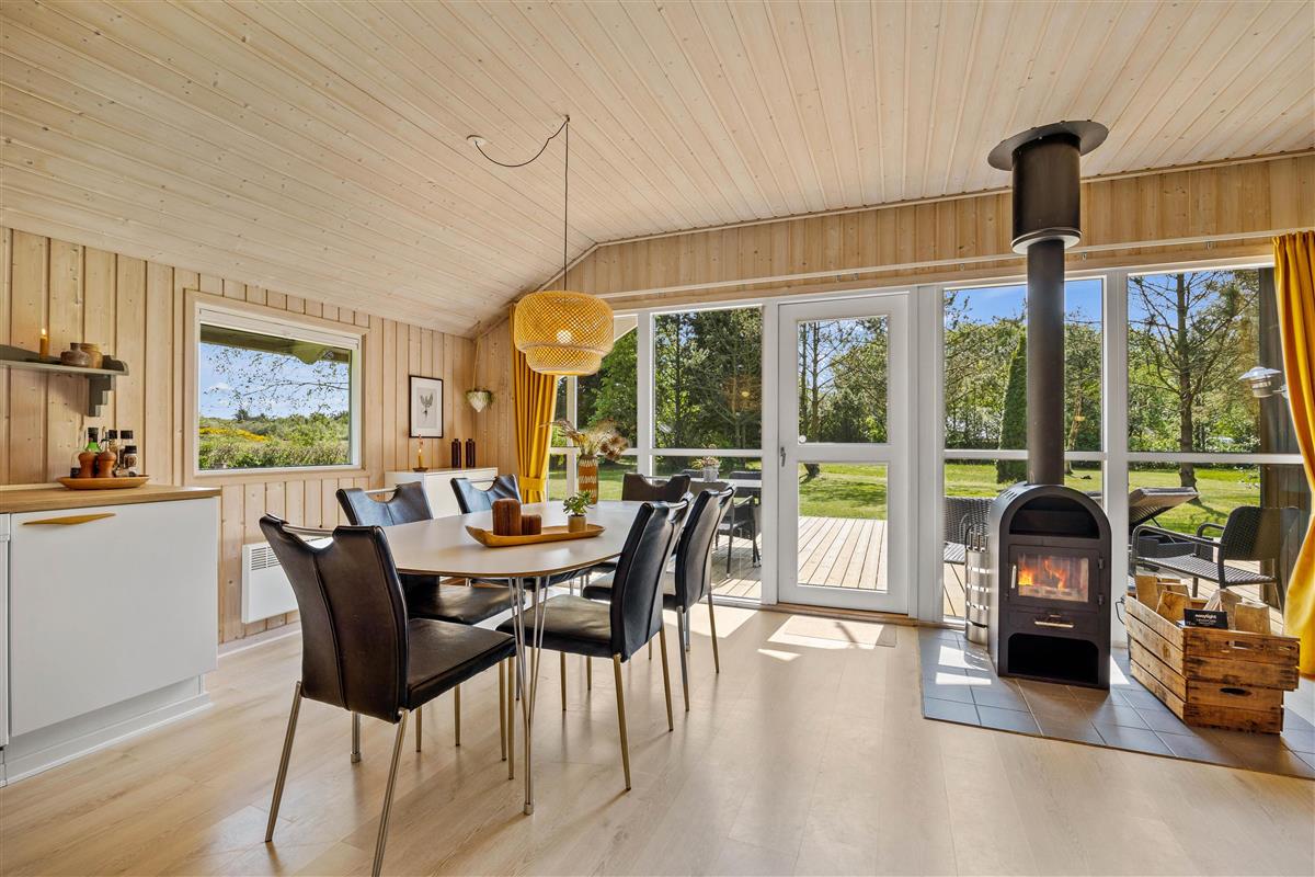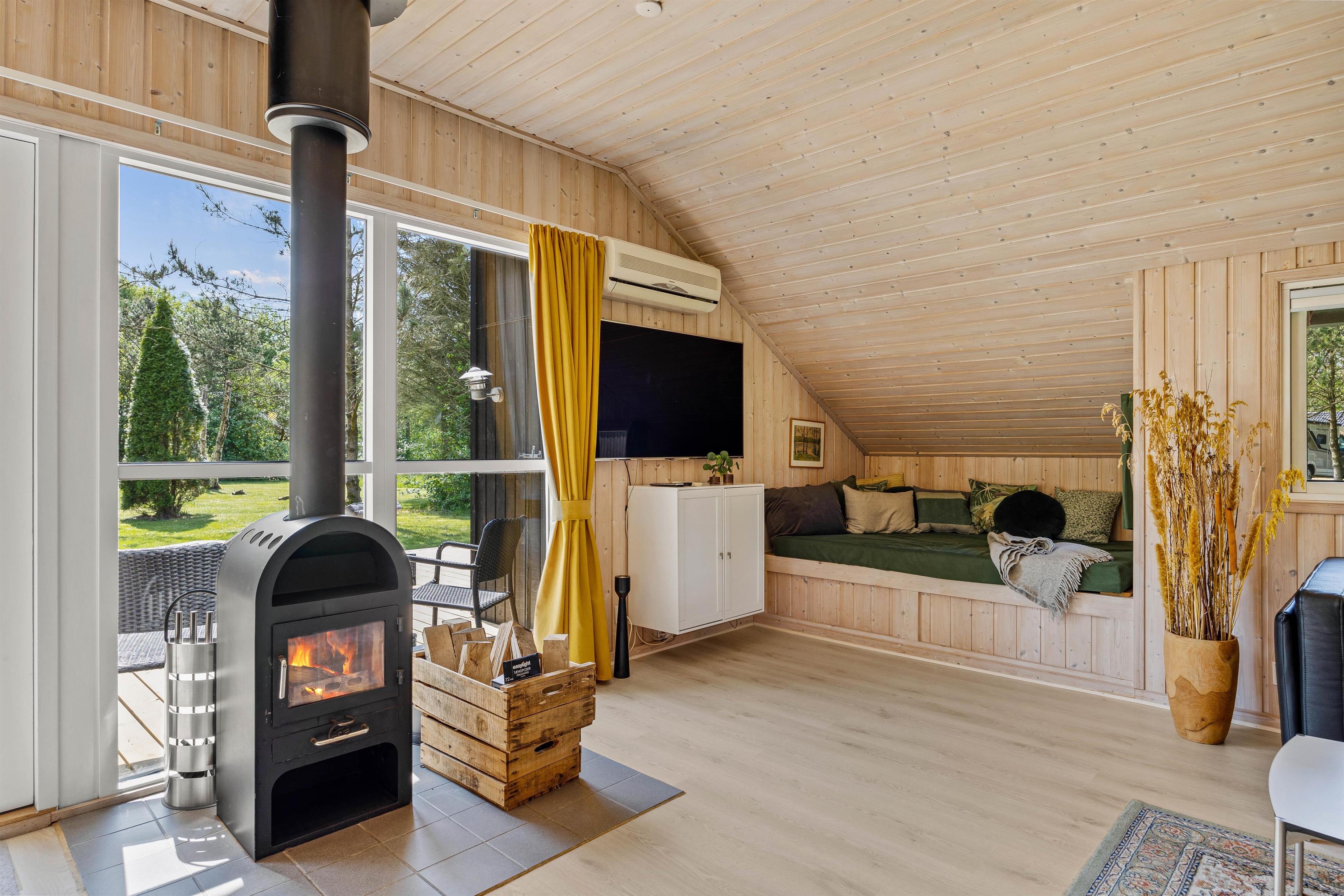 The heart of the holiday home is the living room, featuring a wood-burning stove that creates a cosy atmosphere, particularly on cooler days. The holiday home can also be heated using the air-to-air heat pump. The large sofa invites you to relax and unwind, and thanks to Google Chromecast, you can stream your favourite films and series during your stay.