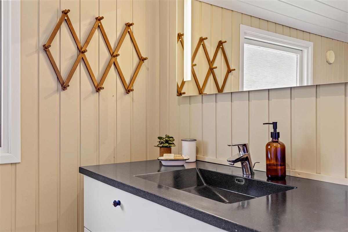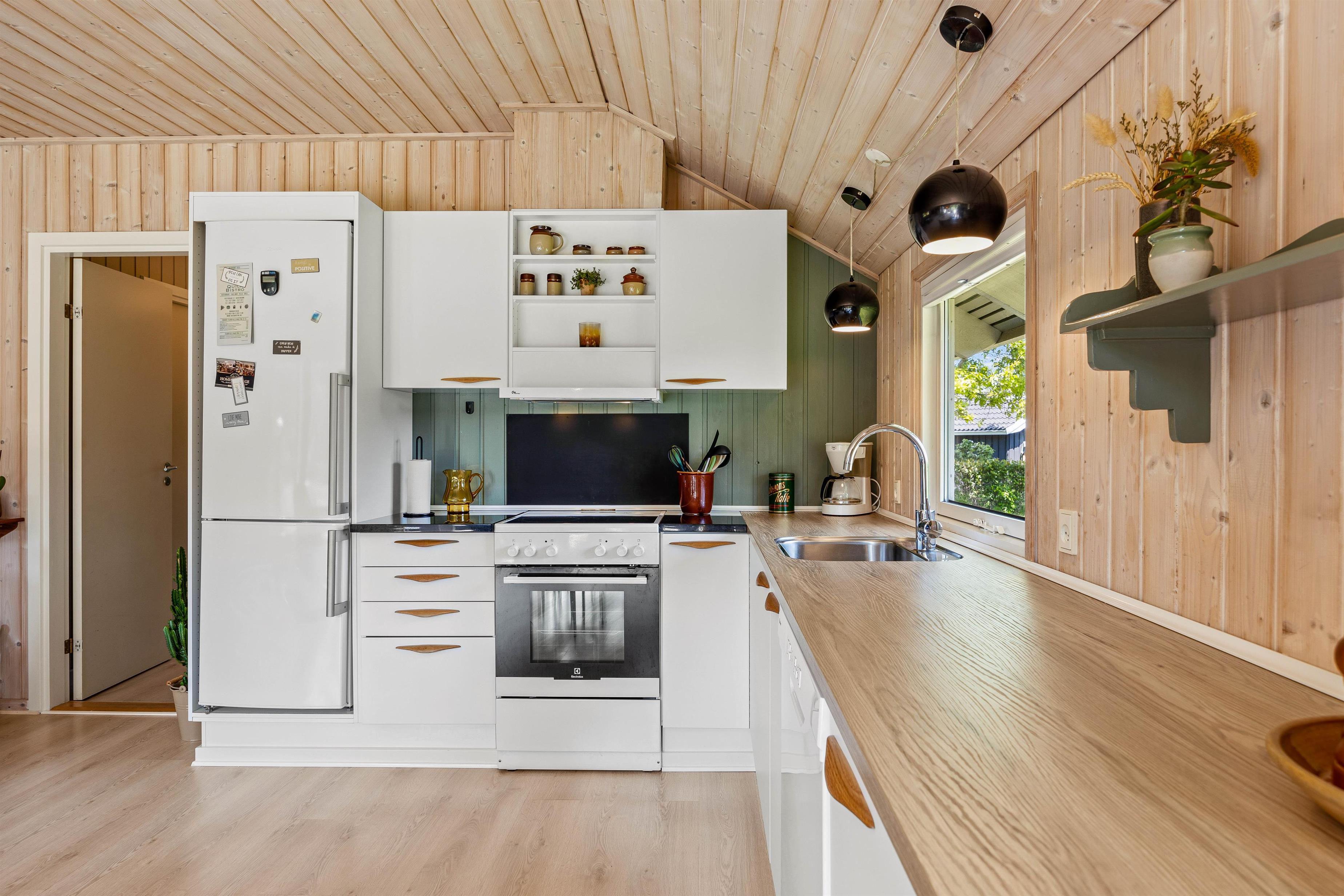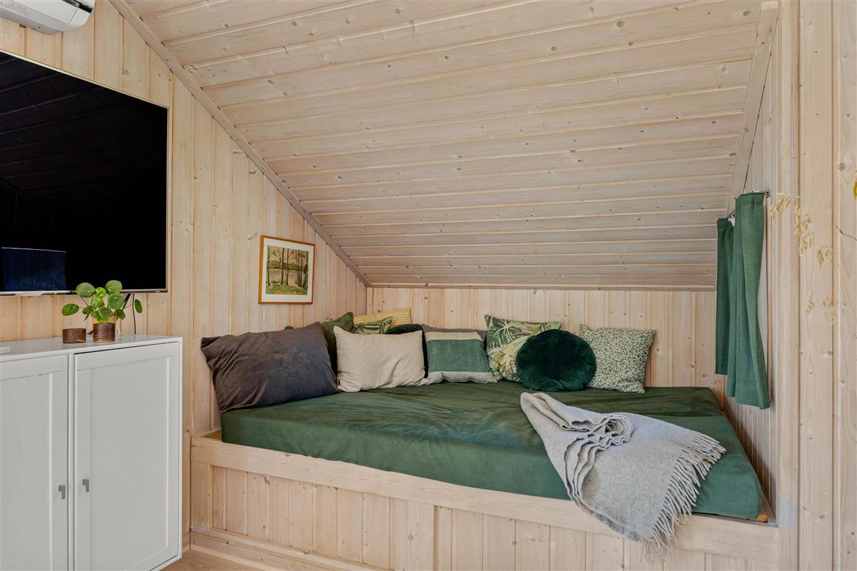 The heart of the holiday home is the living room, featuring a wood-burning stove that creates a cosy atmosphere, particularly on cooler days. The holiday home can also be heated using the air-to-air heat pump. The large sofa invites you to relax and unwind, and thanks to Google Chromecast, you can stream your favourite films and series during your stay.