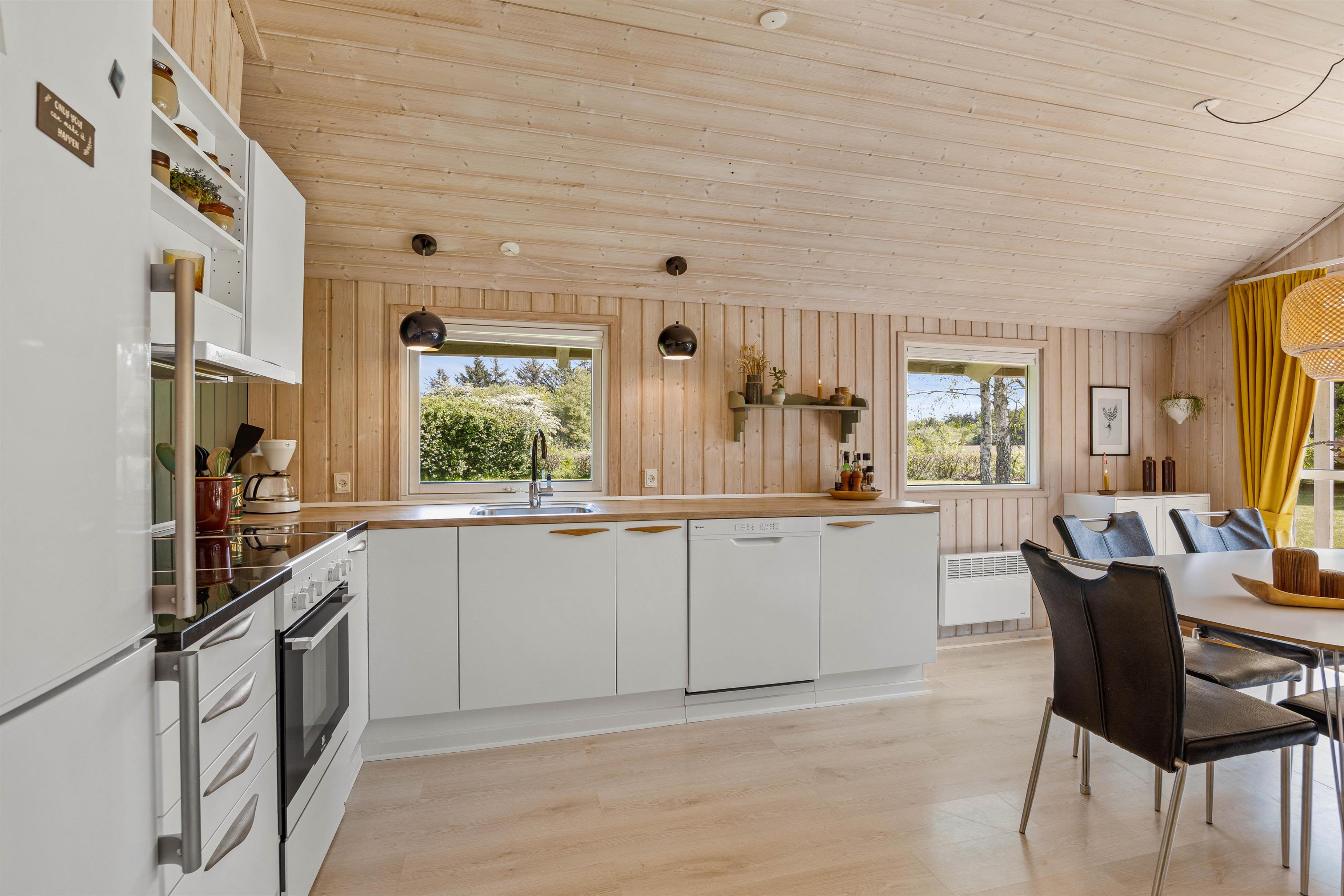 Experience an unforgettable holiday in this holiday home in Jegum Ferieland, located at Hybenvangen 8. With 84 square metres of space, this holiday home comfortably accommodates up to 5 people plus 1 dog and is the perfect retreat for a relaxing holiday with family or friends.