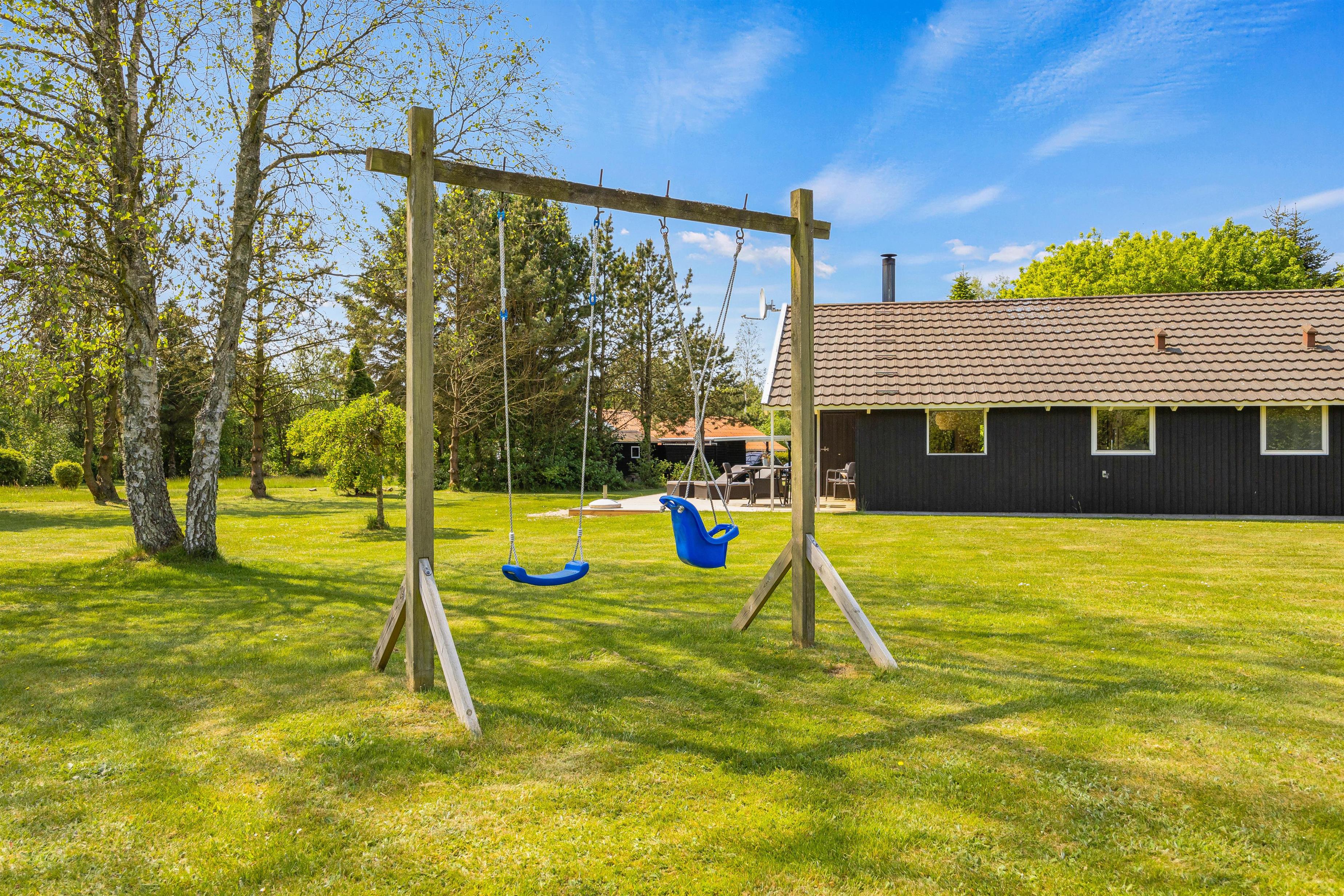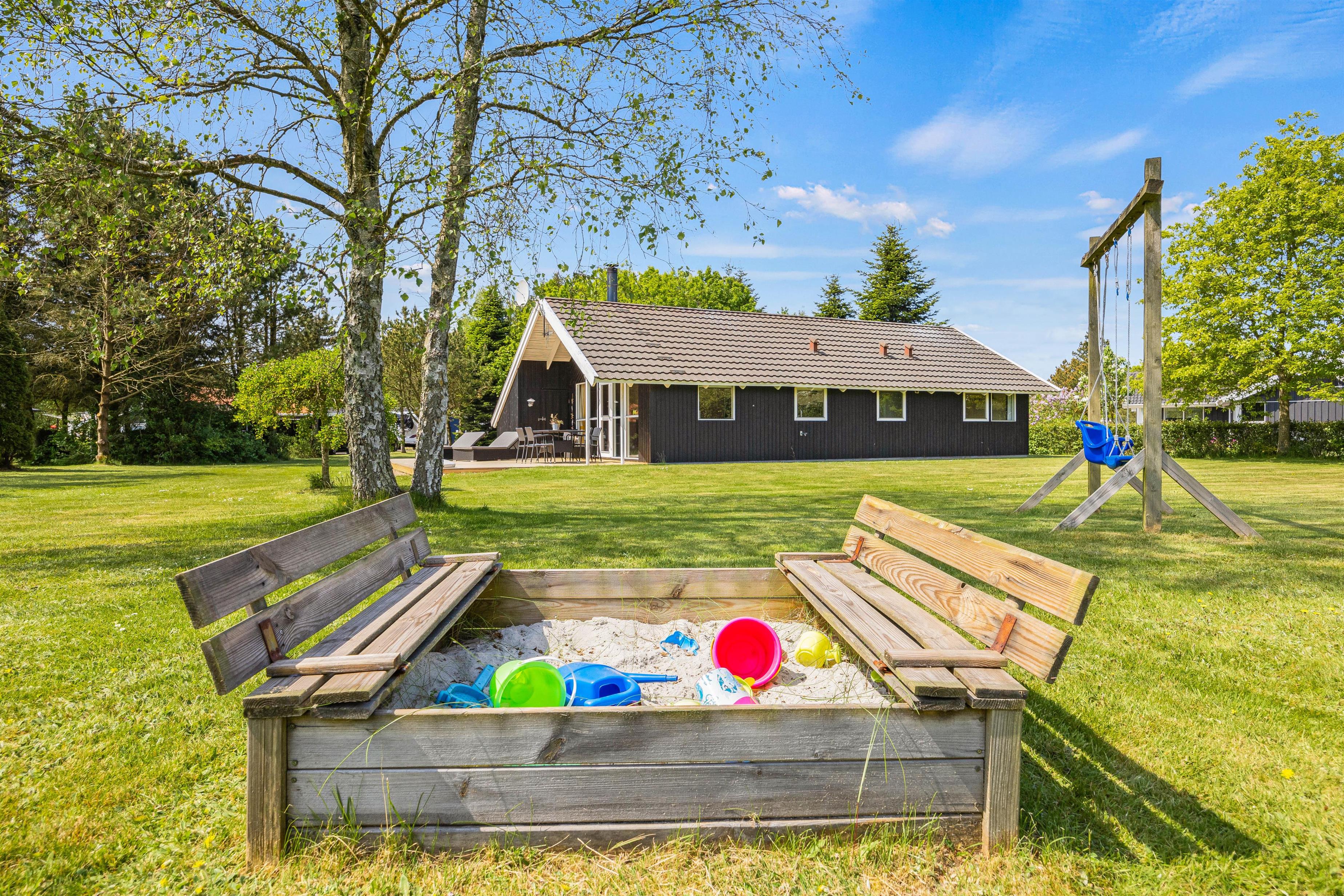 The extensive lawn is perfect for various leisure activities, offering plenty of space for play and relaxation. Children can enjoy themselves on the swing or in the sandpit while you appreciate the peaceful natural surroundings.