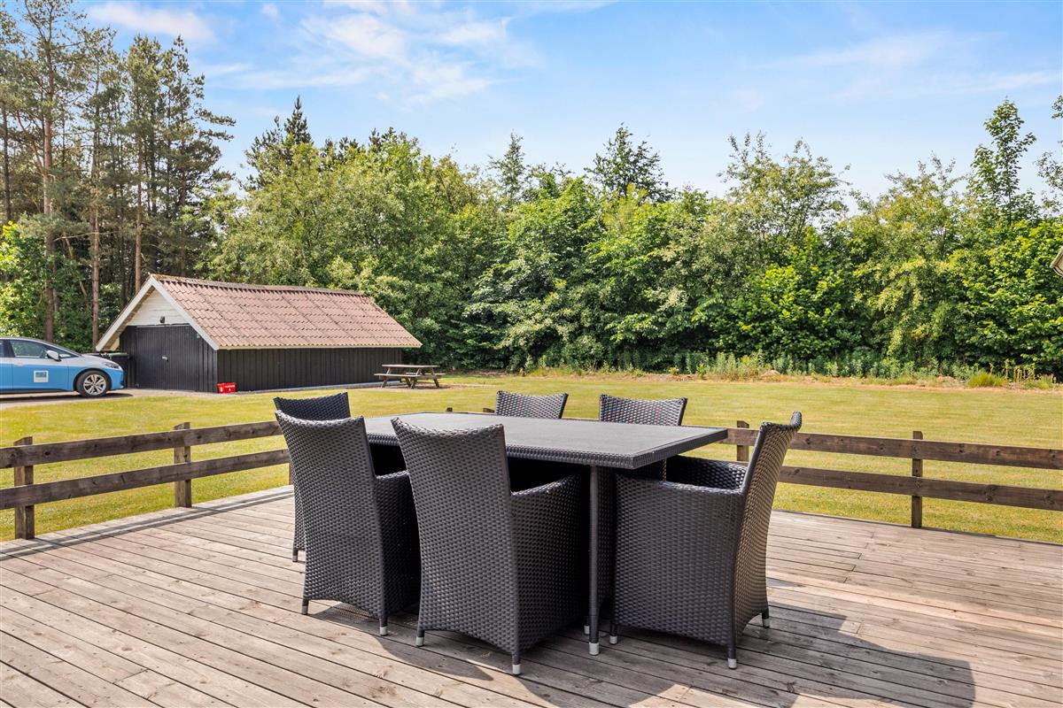 When the sun is shining, the holiday home invites you to embrace outdoor living in beautiful surroundings. With both a covered and a sheltered terrace, you can enjoy the Danish summer weather regardless of wind or rain. The terraces are furnished with comfortable garden furniture, perfect for relaxing with a good book or gathering for a delightful barbecue dinner prepared on the house grill.
