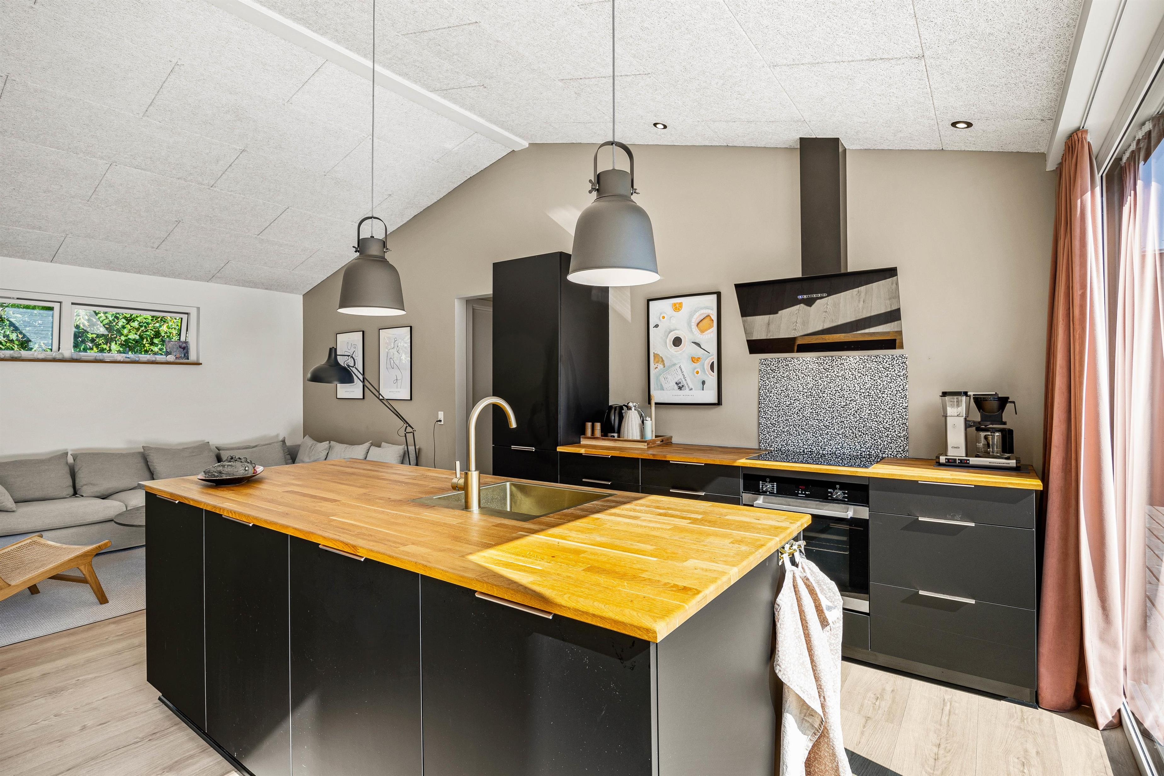 If you're planning a North Sea holiday with your family, this beautiful holiday home in Jegum is worth considering. Built in 2022, this holiday home accommodates up to 6 people and one dog for a delightful North Sea break. The Nøddehaven 2 holiday home features a wood-burning stove and outdoor shower.