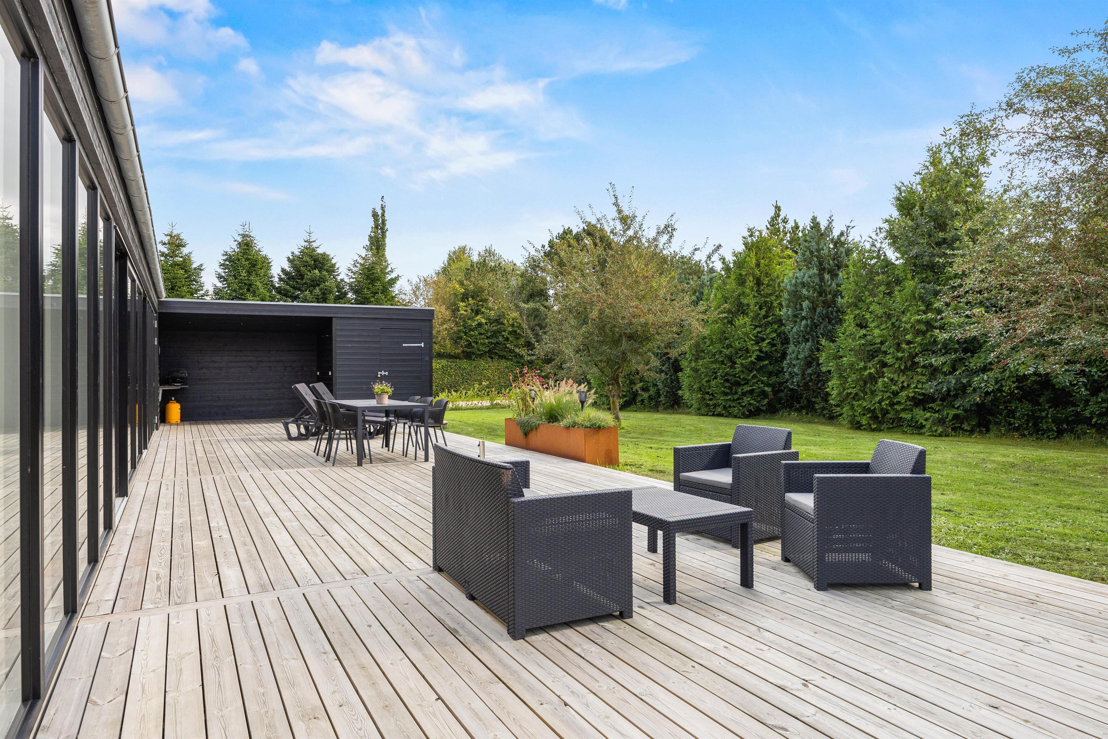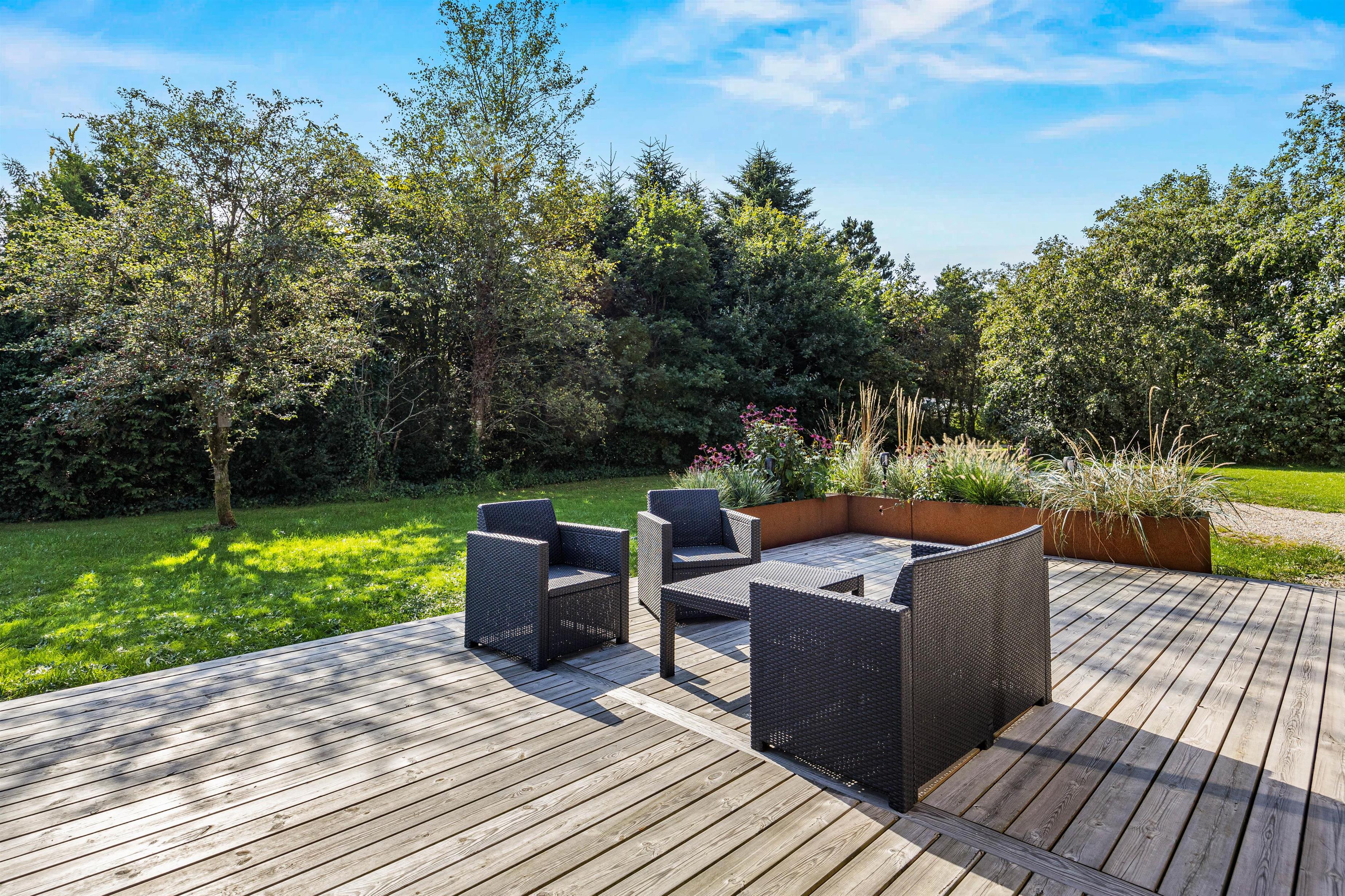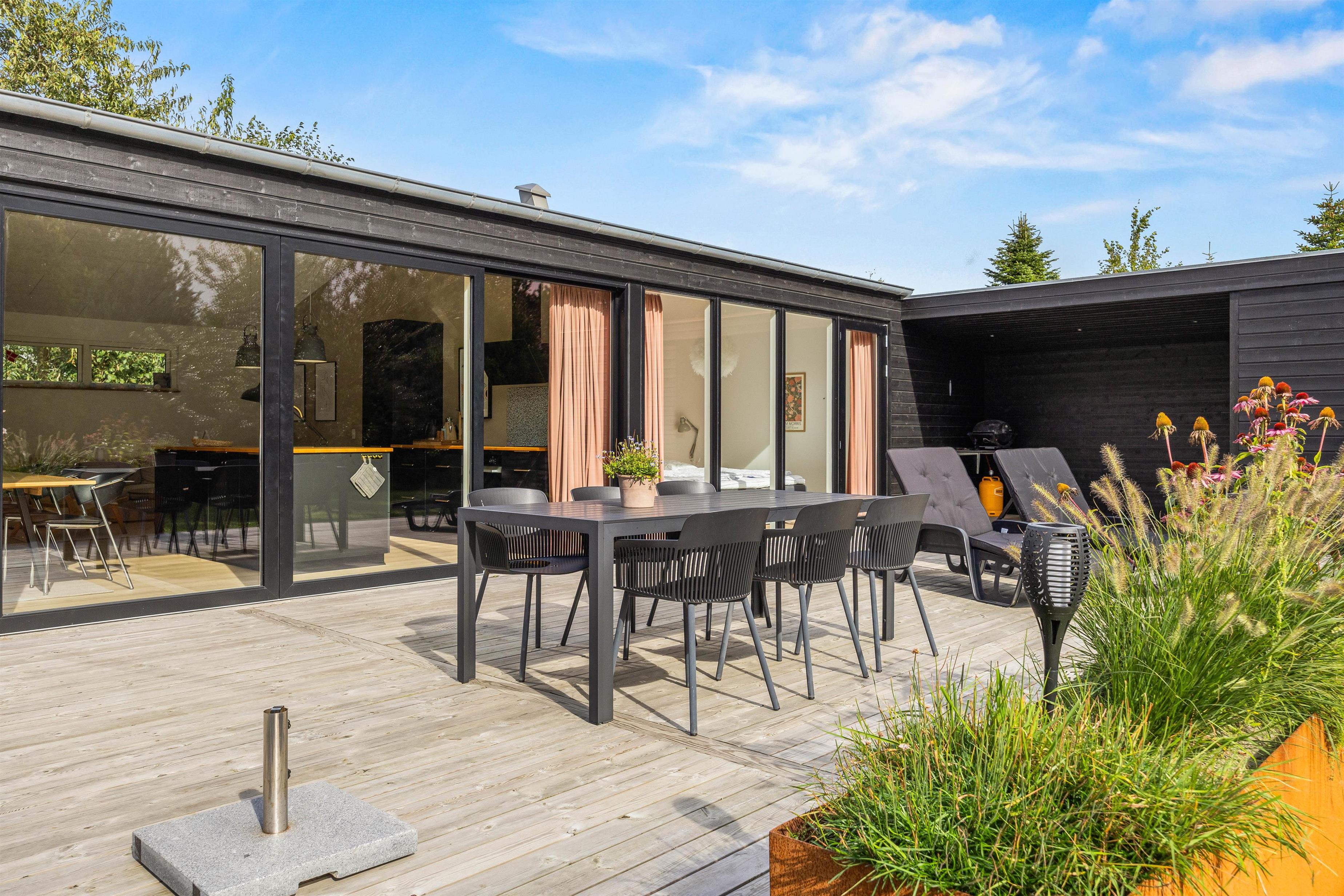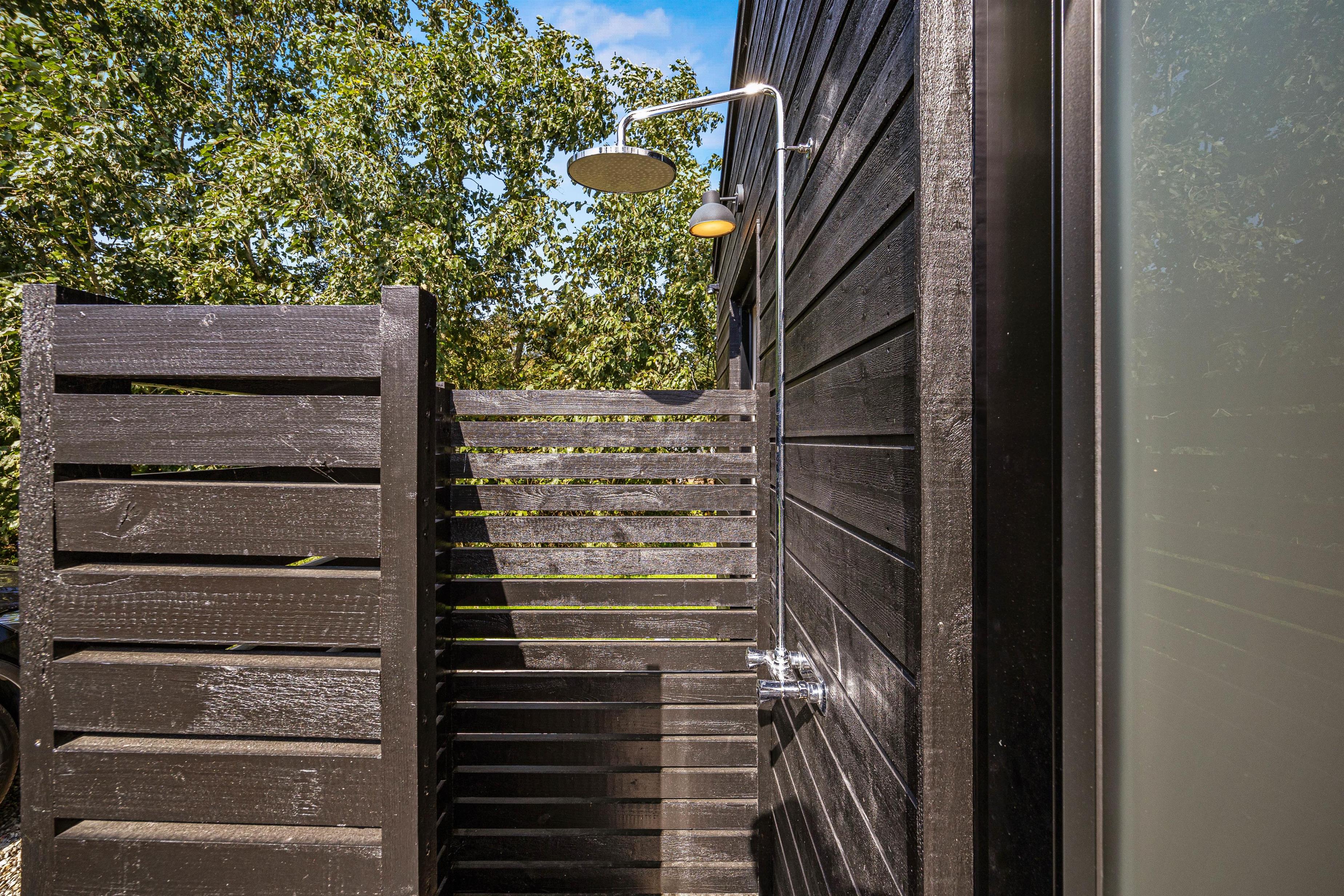The partially covered terrace has everything needed for a relaxing day outdoors: garden furniture, sun loungers, a gas BBQ, and an outdoor shower. It's wonderful to refresh yourself during or after sunbathing right under the open sky - the benefits of an outdoor shower are clear. You might even start your day with an outdoor shower while your dog eagerly awaits their morning walk. Please note that the outdoor shower is available from April to November.
