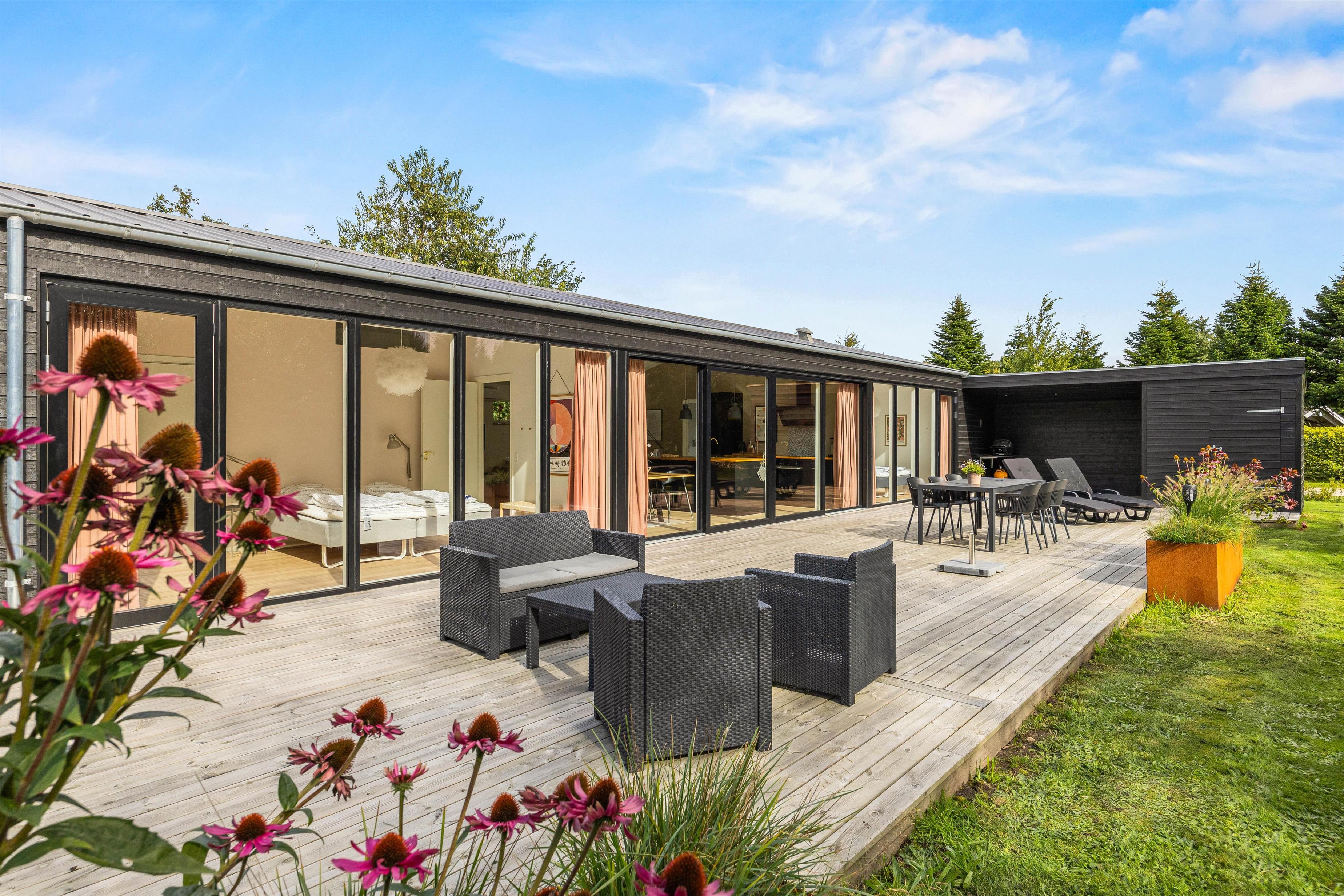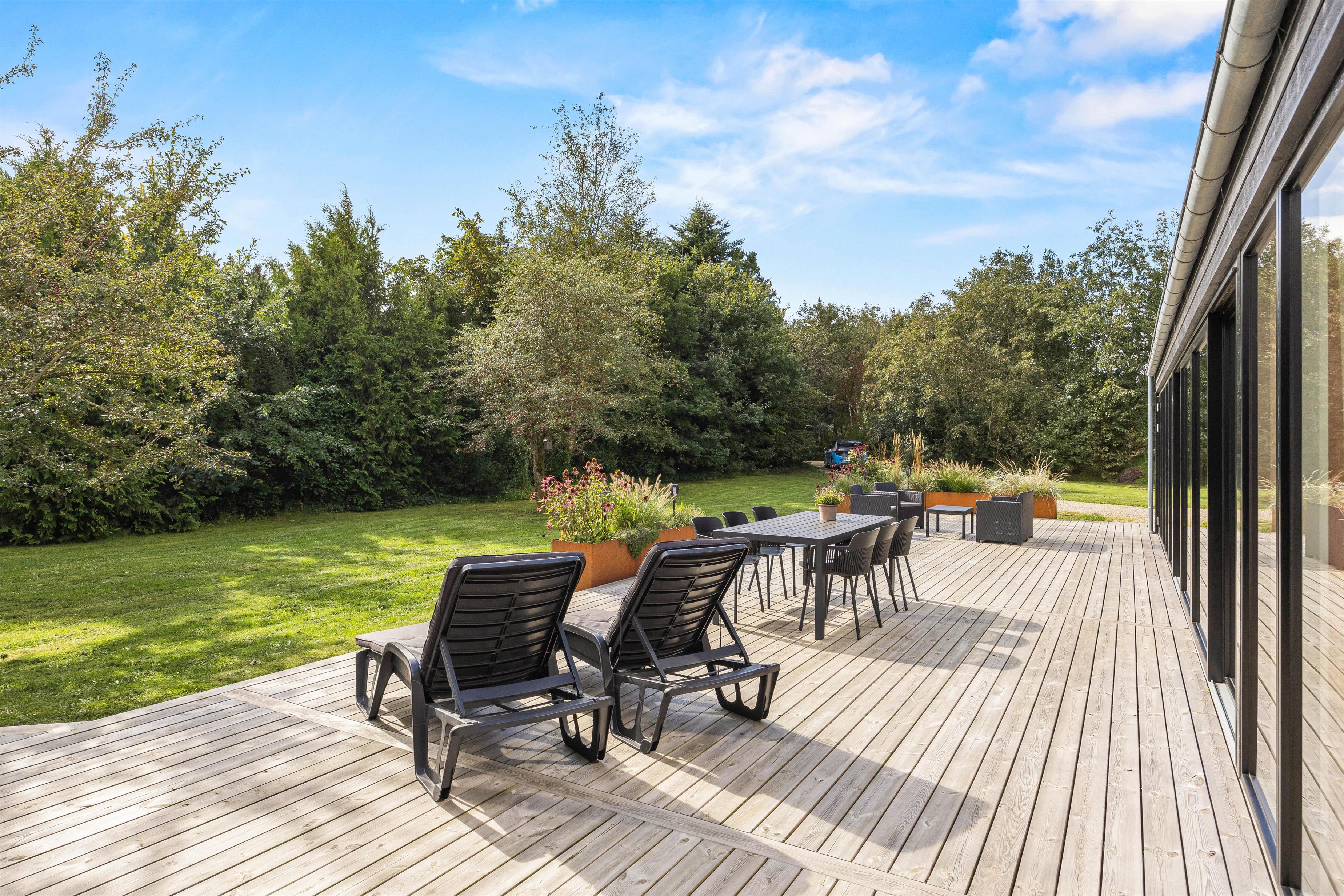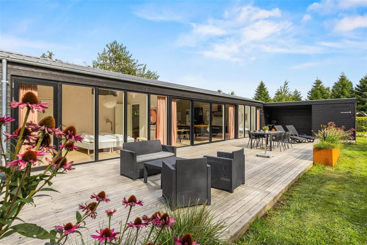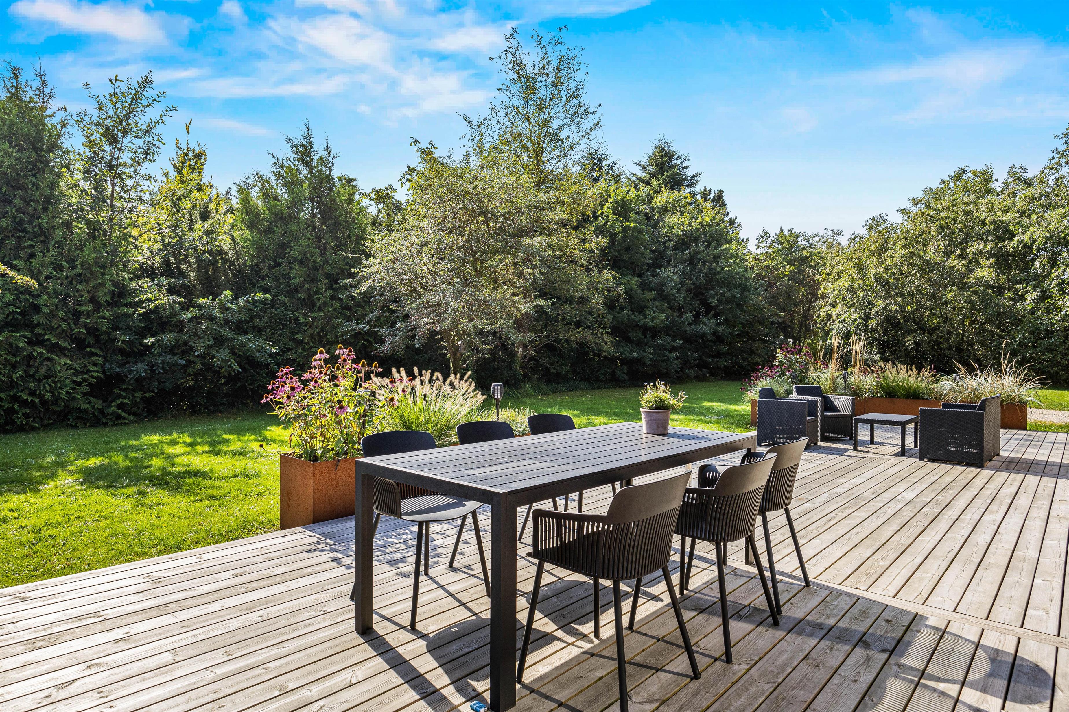 The partially covered terrace has everything needed for a relaxing day outdoors: garden furniture, sun loungers, a gas BBQ, and an outdoor shower. It's wonderful to refresh yourself during or after sunbathing right under the open sky - the benefits of an outdoor shower are clear. You might even start your day with an outdoor shower while your dog eagerly awaits their morning walk. Please note that the outdoor shower is available from April to November.