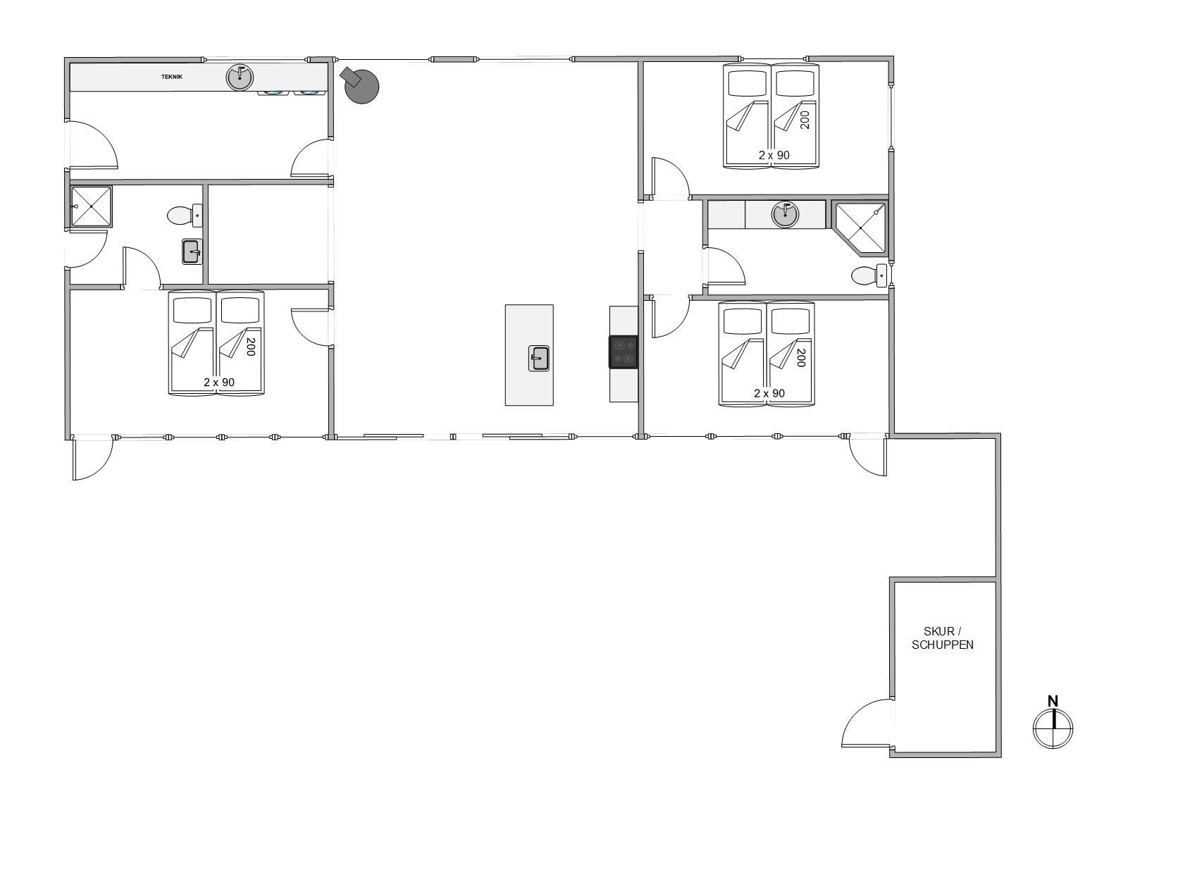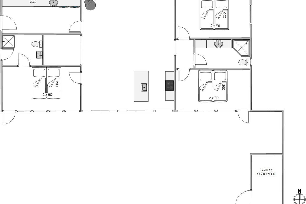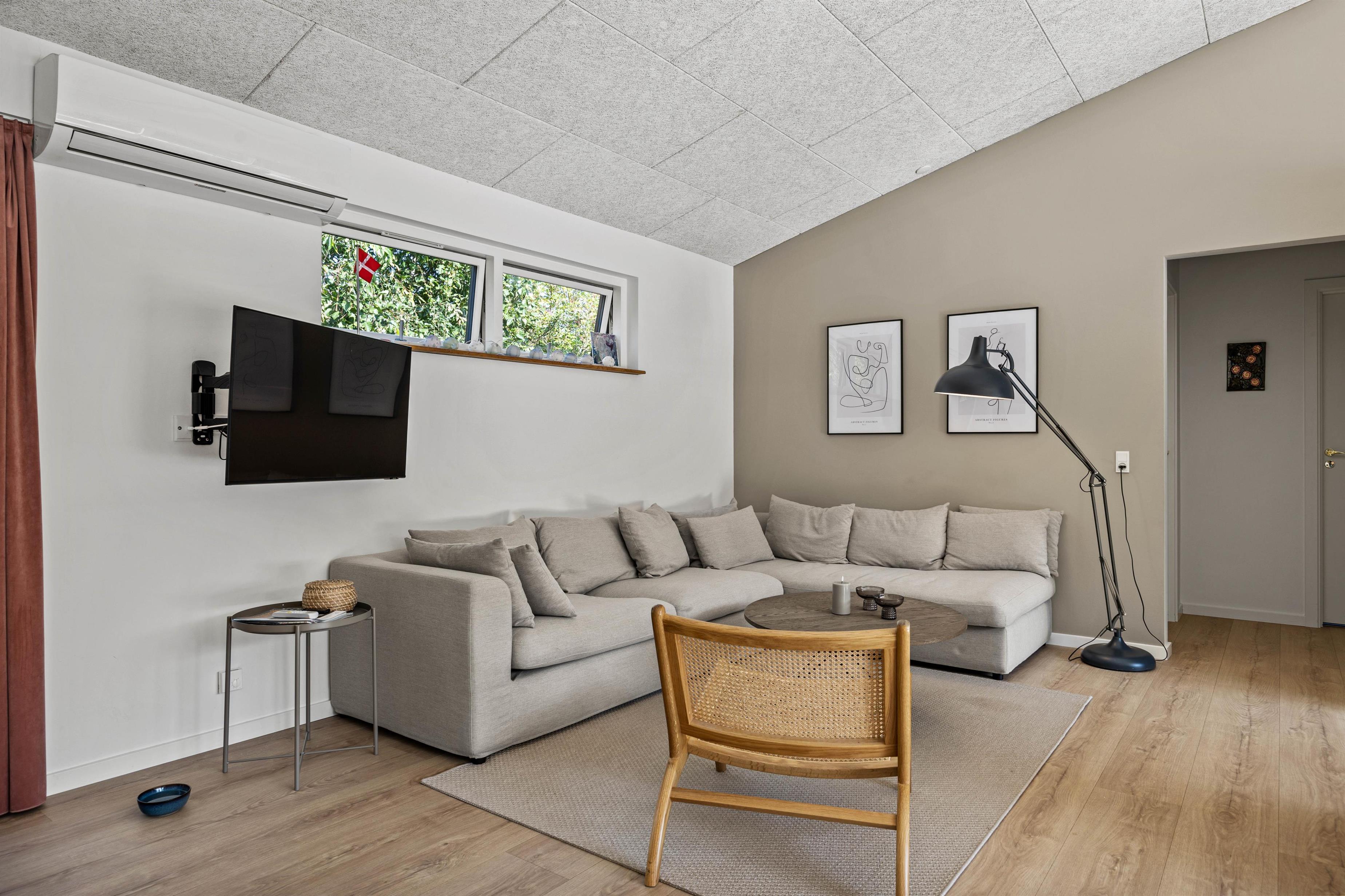This Jegum holiday home offers 117 square metres of living space. With two bathrooms featuring underfloor heating, it's ideal for holidays with friends. All three bedrooms have double beds (180x200cm), and two rooms offer direct access to the terrace.