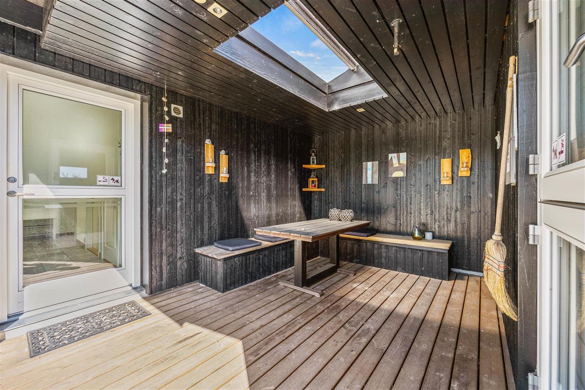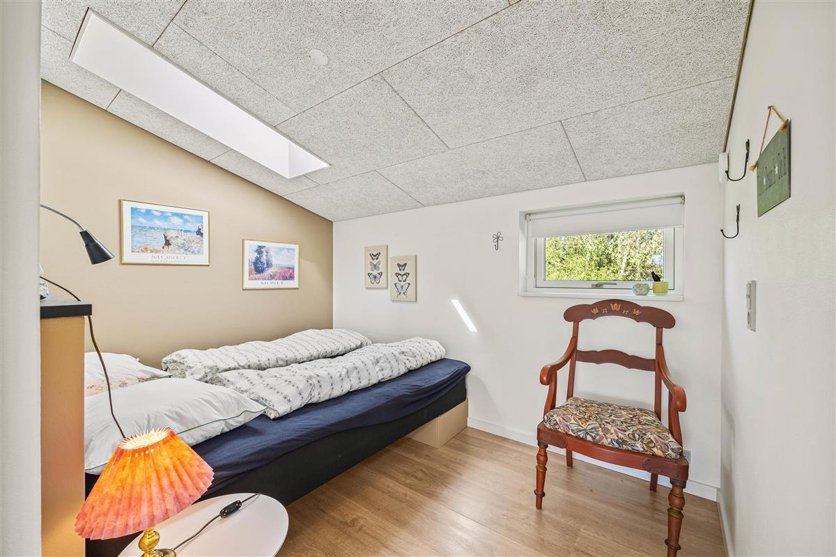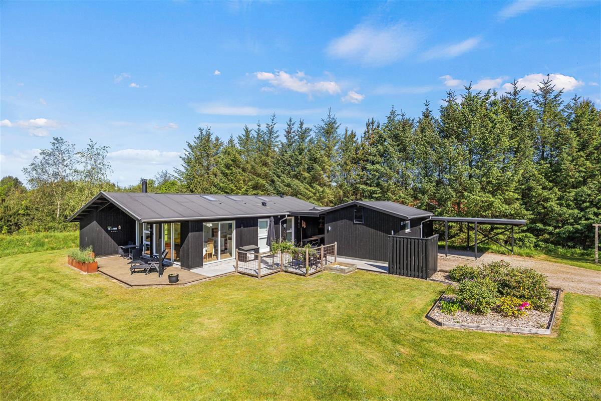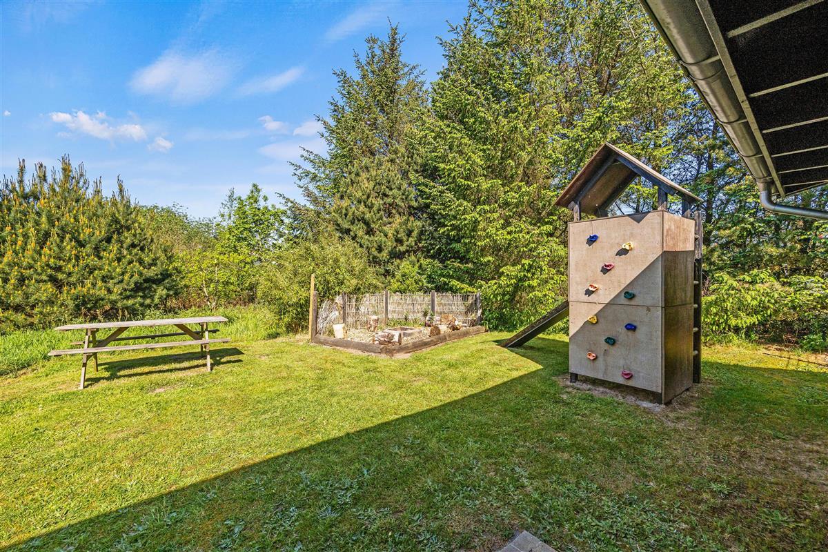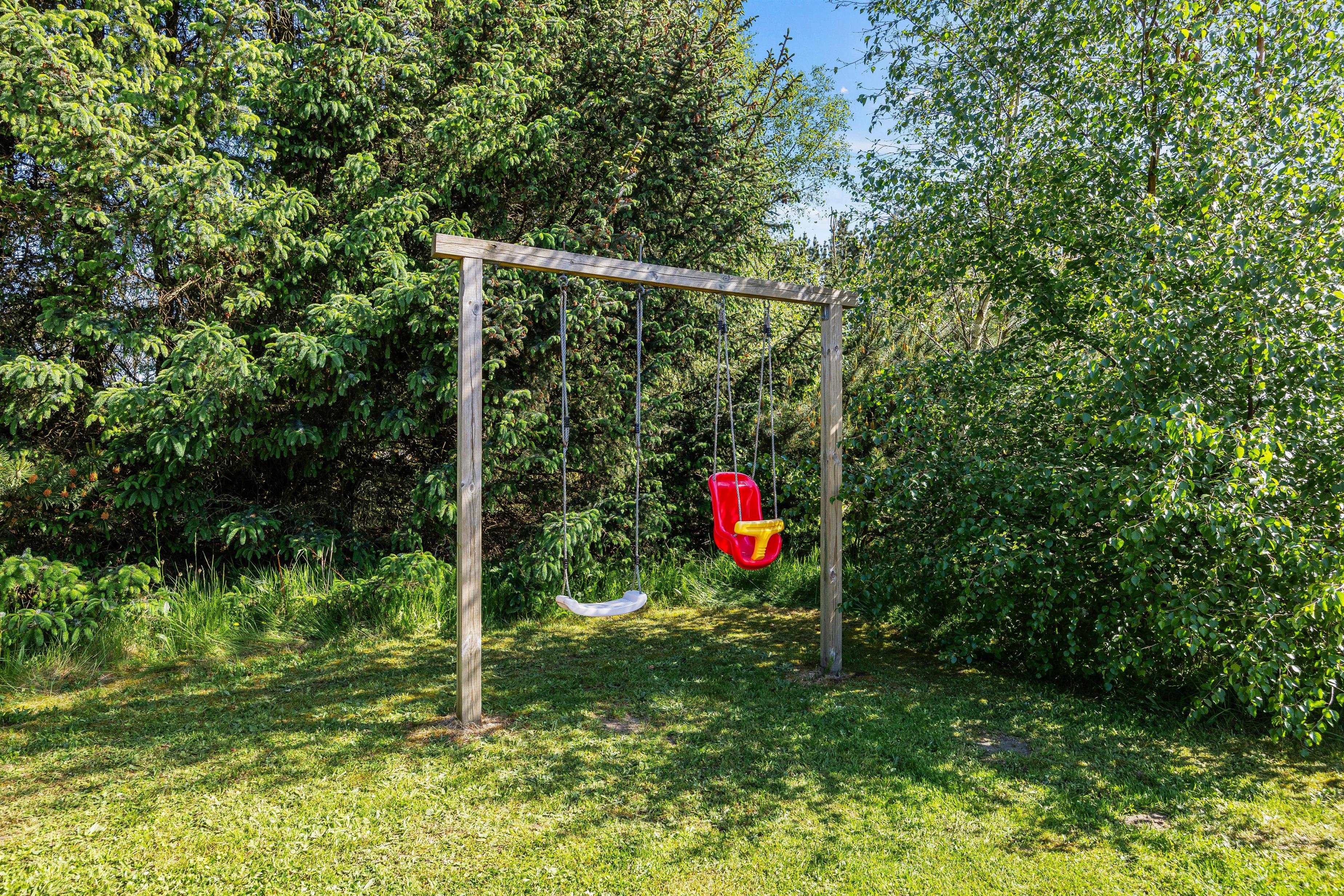 The outdoor area of the holiday home at Blomstervangen 87 provides an ideal setting for relaxed days and sociable evenings outdoors. The extensive natural grounds and lawn invite you to enjoy the fresh air and offer plenty of space for various activities. Whether it's a picnic on the grass or relaxing in the sun, the possibilities are endless. For younger guests, there's a swing for fun and entertainment.